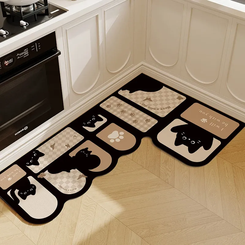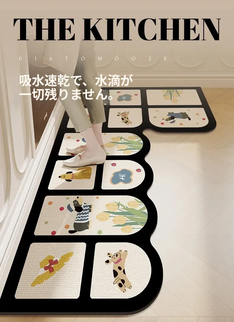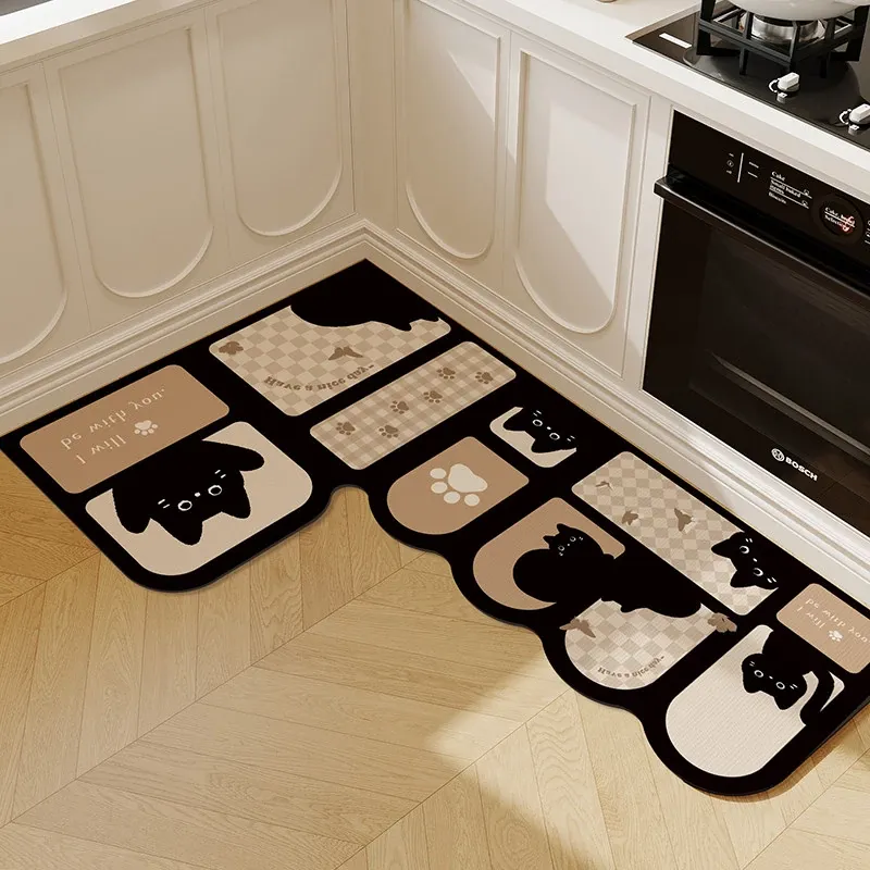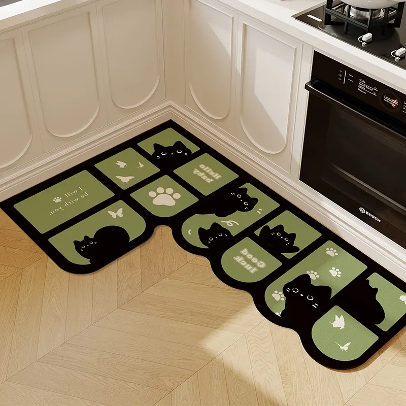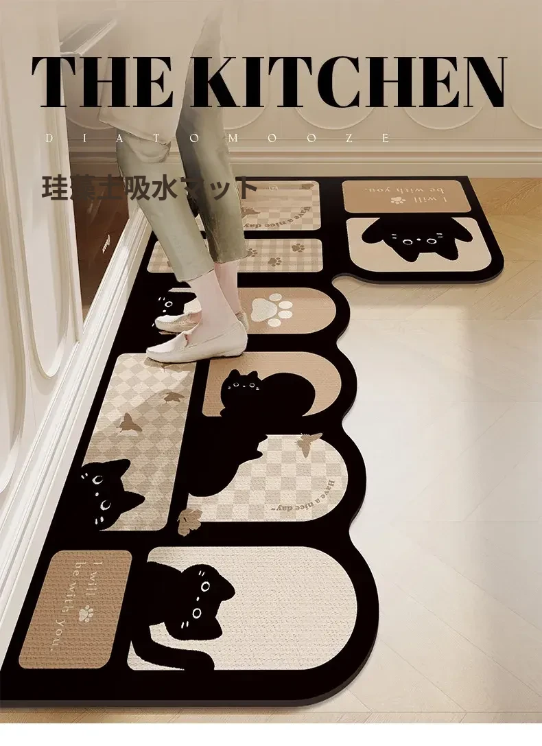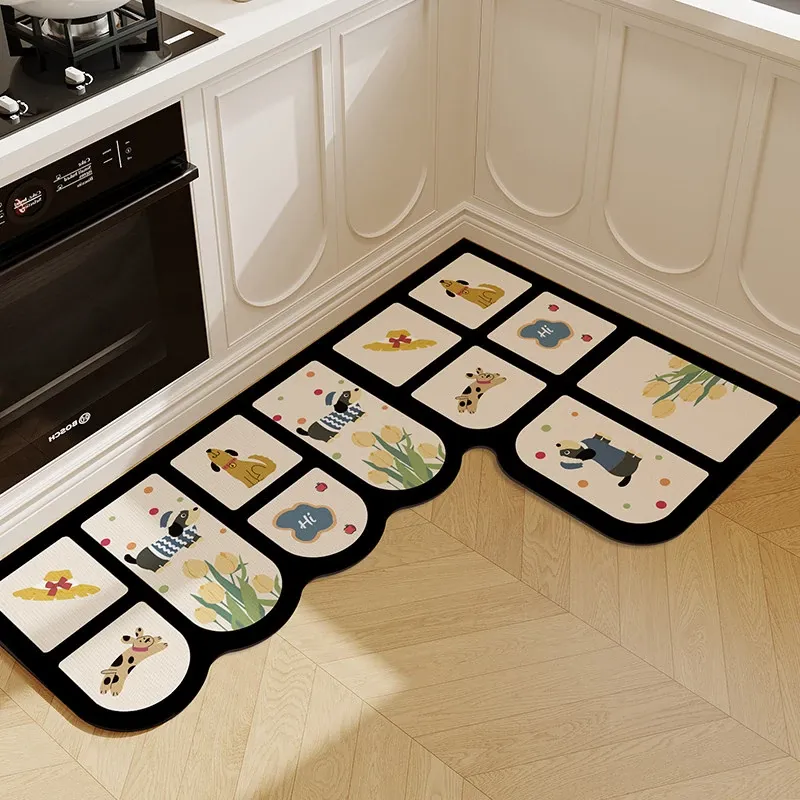 キッチン専用L型防滑防油マット!カラフルなカーペットでおしゃれな七字型、洗える角型吸水フットマット。滑り止め効果で安全に、清潔感もアップ!お料理をもっと楽しくするアイテムです。