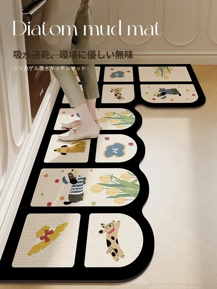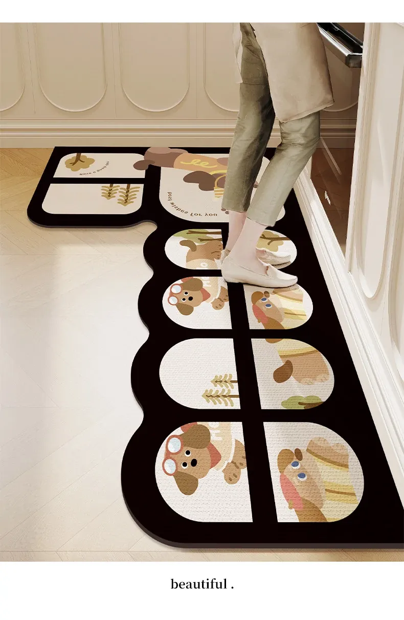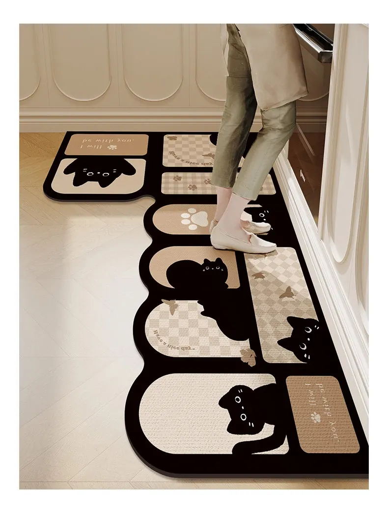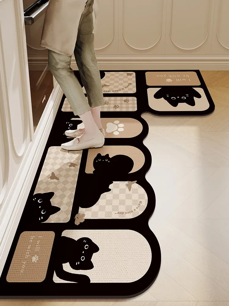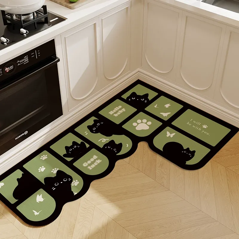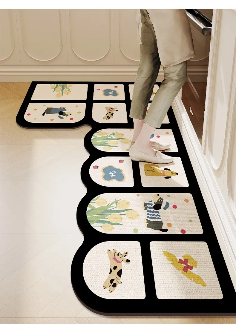 キッチン専用L型防滑防油マット!カラフルなカーペットでおしゃれな七字型、洗える角型吸水フットマット。滑り止め効果で安全に、清潔感もアップ!お料理をもっと楽しくするアイテムです。
