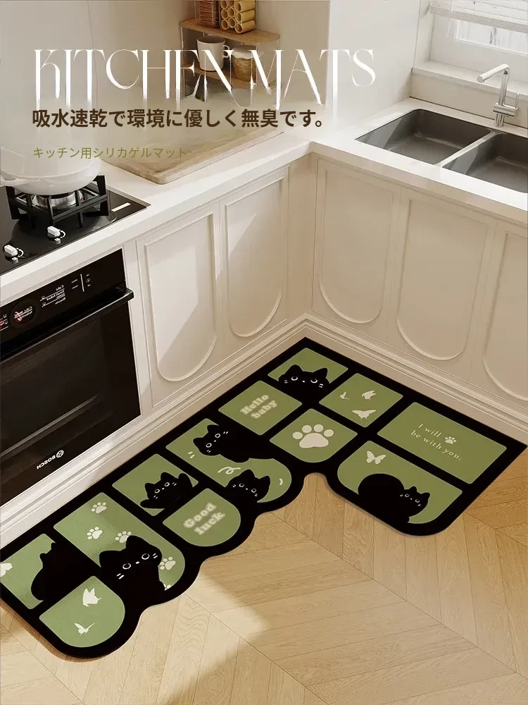 緑の草原黒猫シリカゲルソフトマット-波型右L型