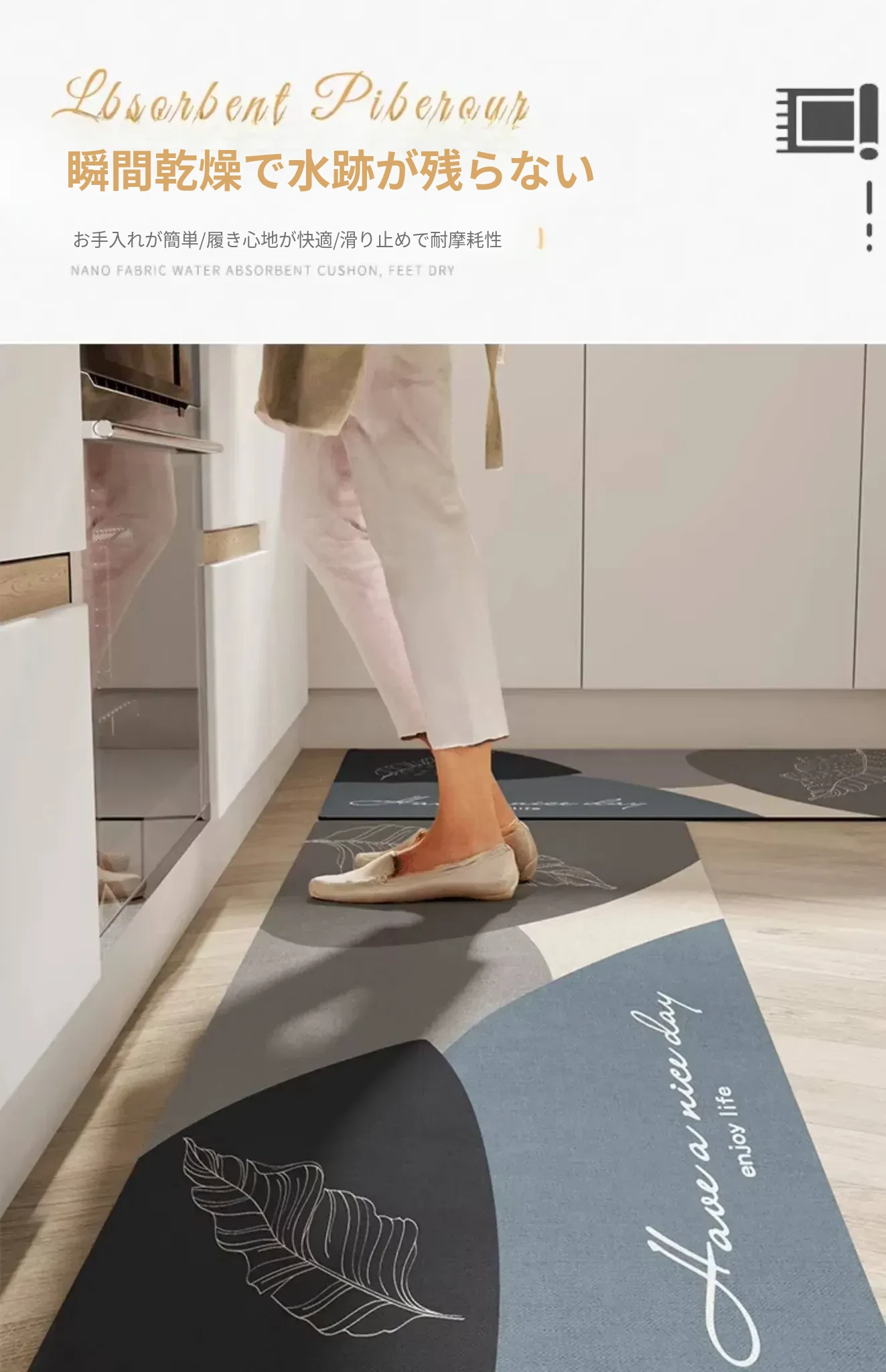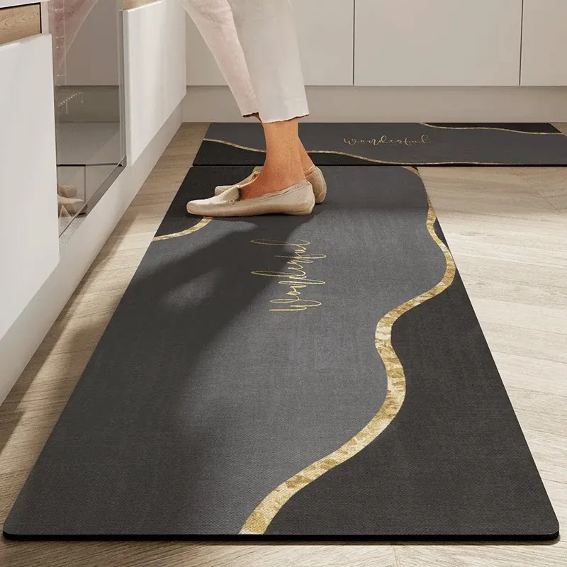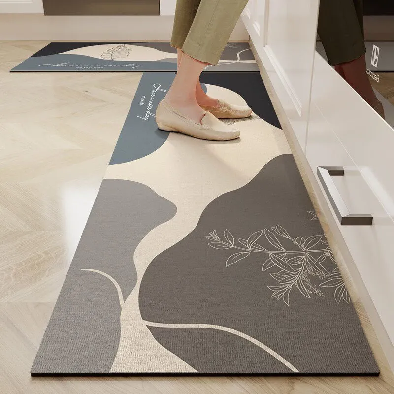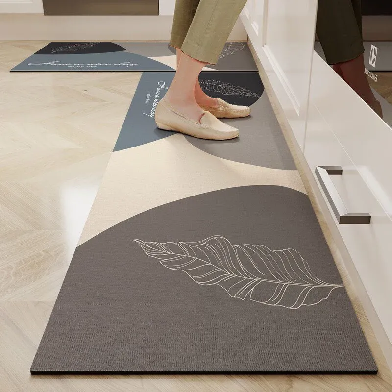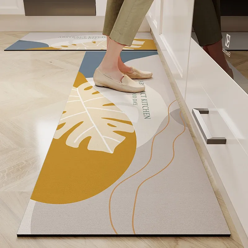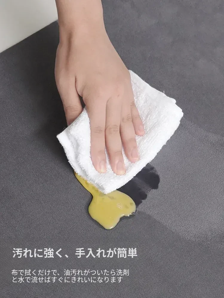 キッチン専用のロング滑り止めマット!油汚れも防ぎ、簡単に拭き取れるお手入れ簡単なカーペット。シリカゲル素材で吸水性抜群、防水機能付きの足元マットで、清潔なキッチンを実現します!