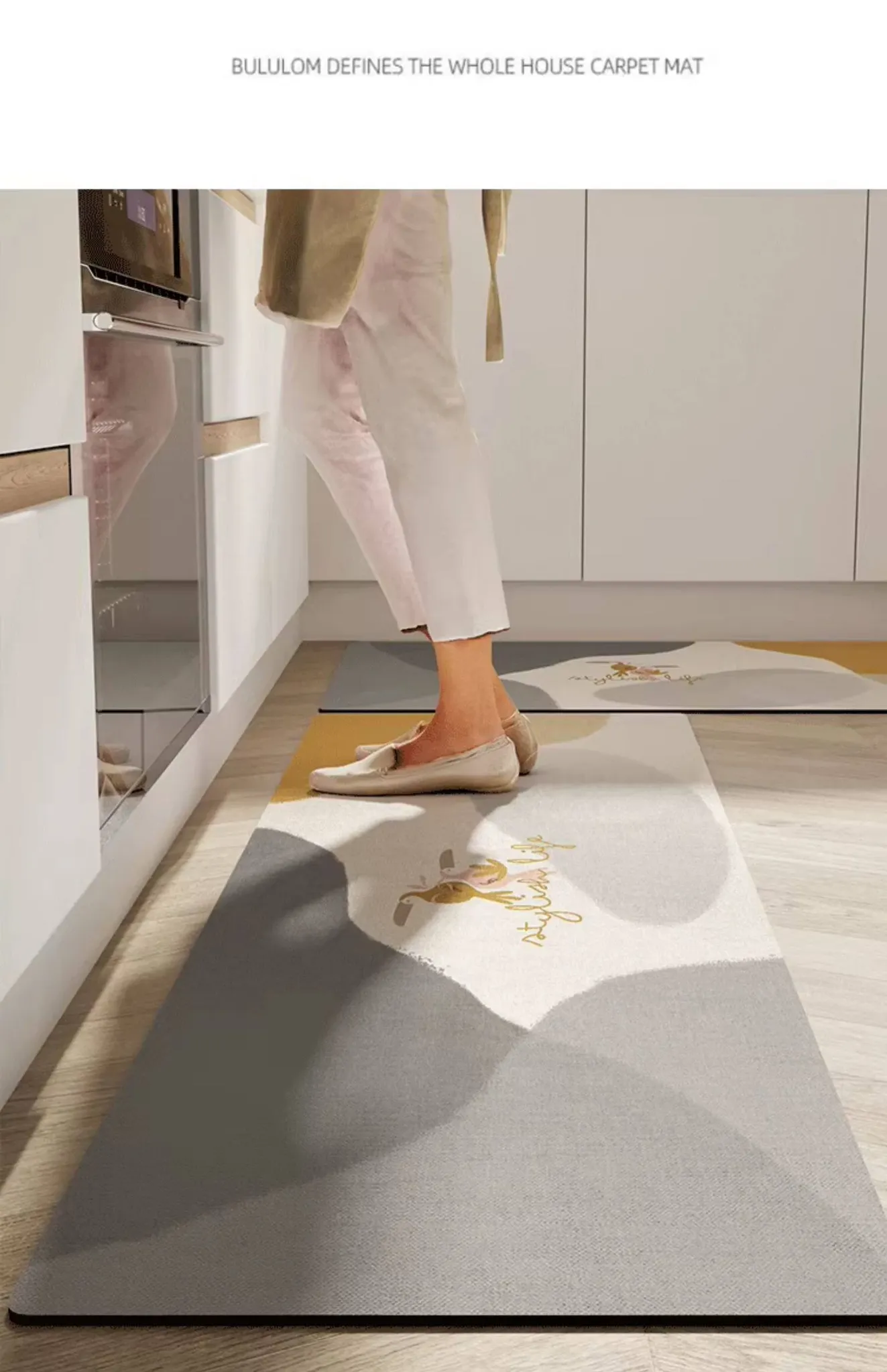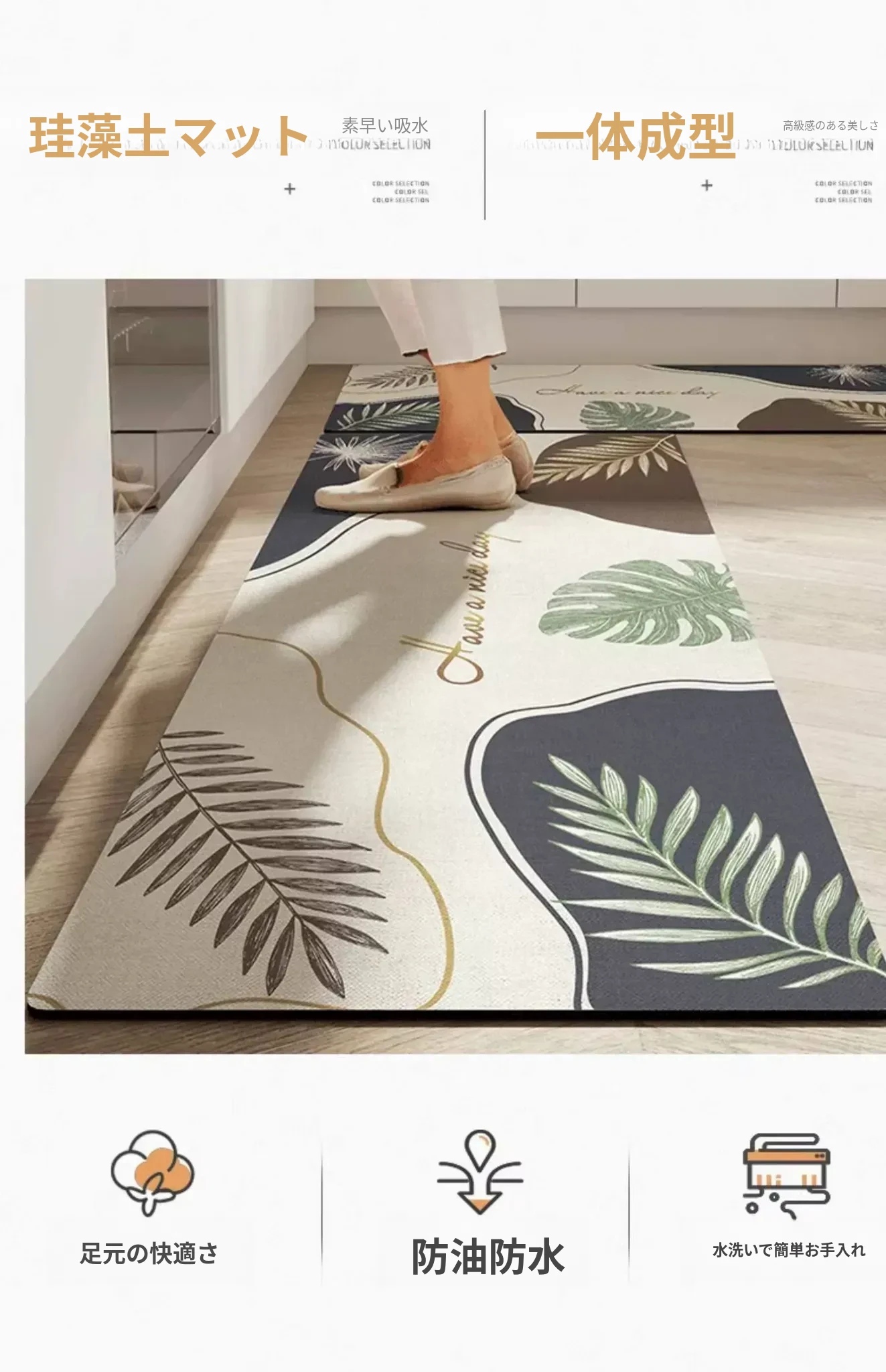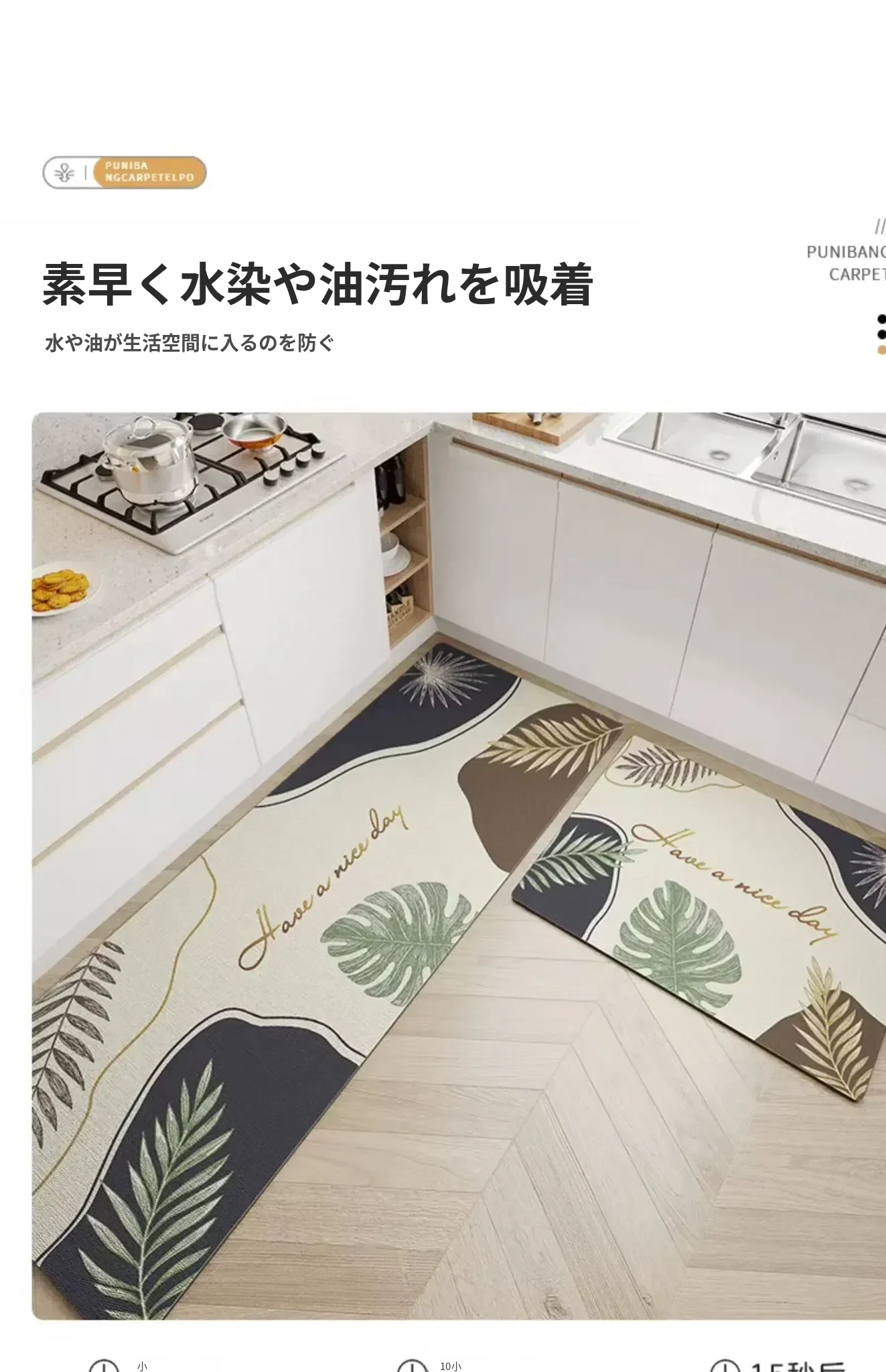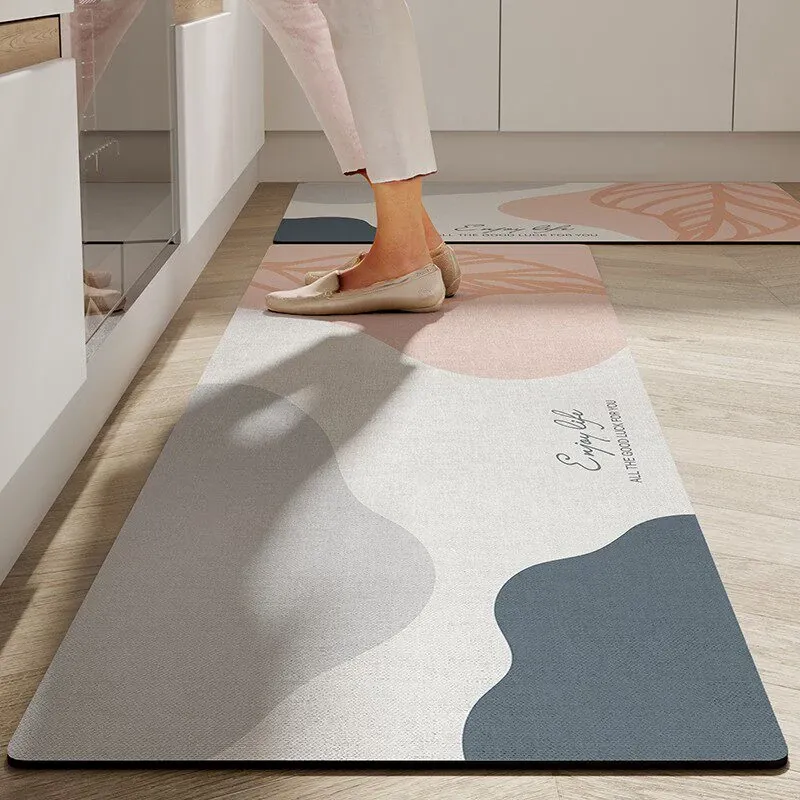 キッチン専用のロング滑り止めマット!油汚れも防ぎ、簡単に拭き取れるお手入れ簡単なカーペット。シリカゲル素材で吸水性抜群、防水機能付きの足元マットで、清潔なキッチンを実現します!