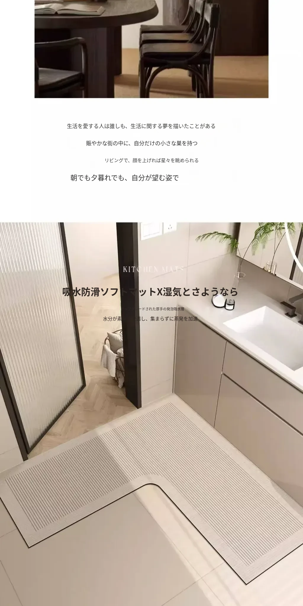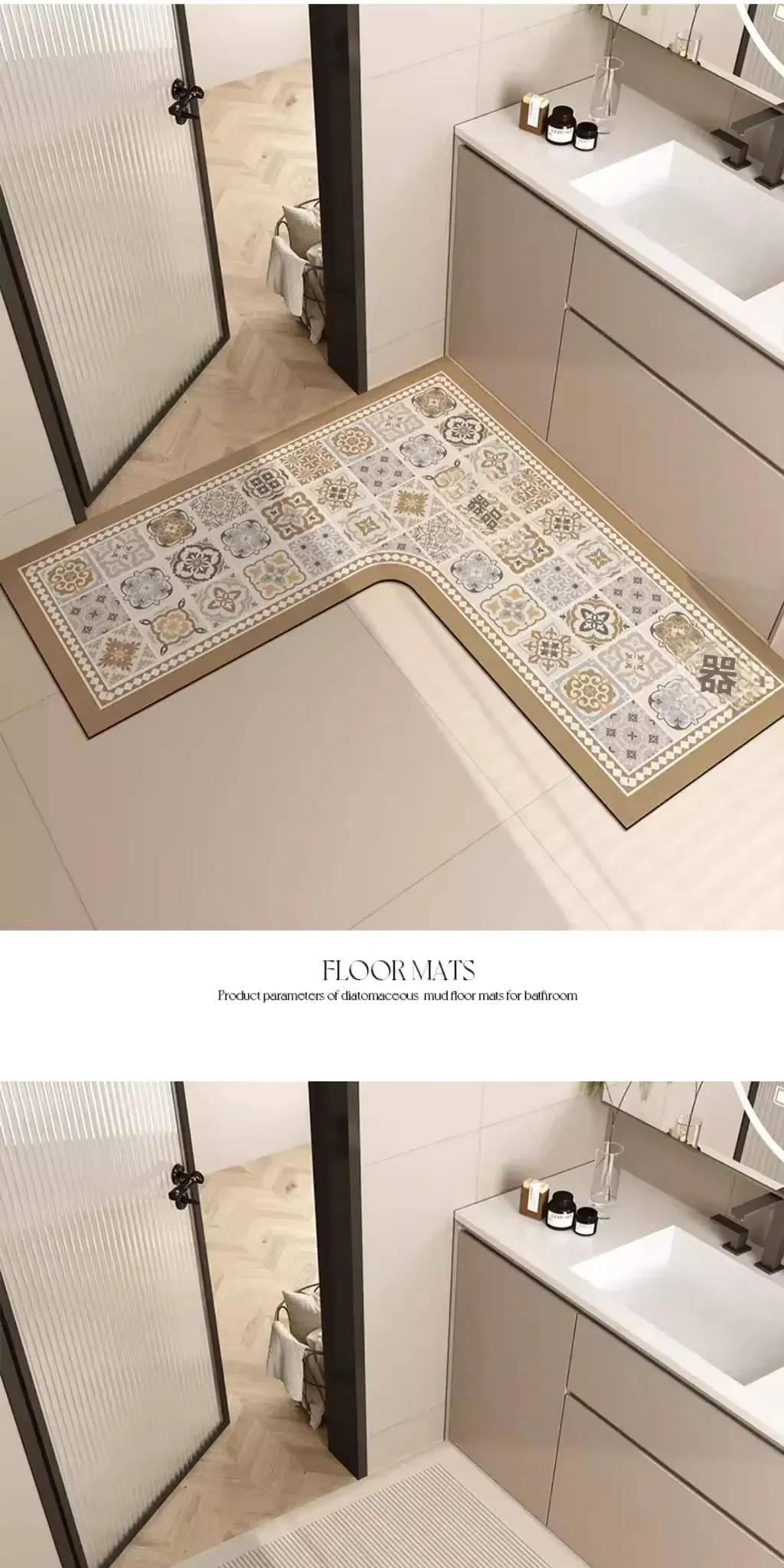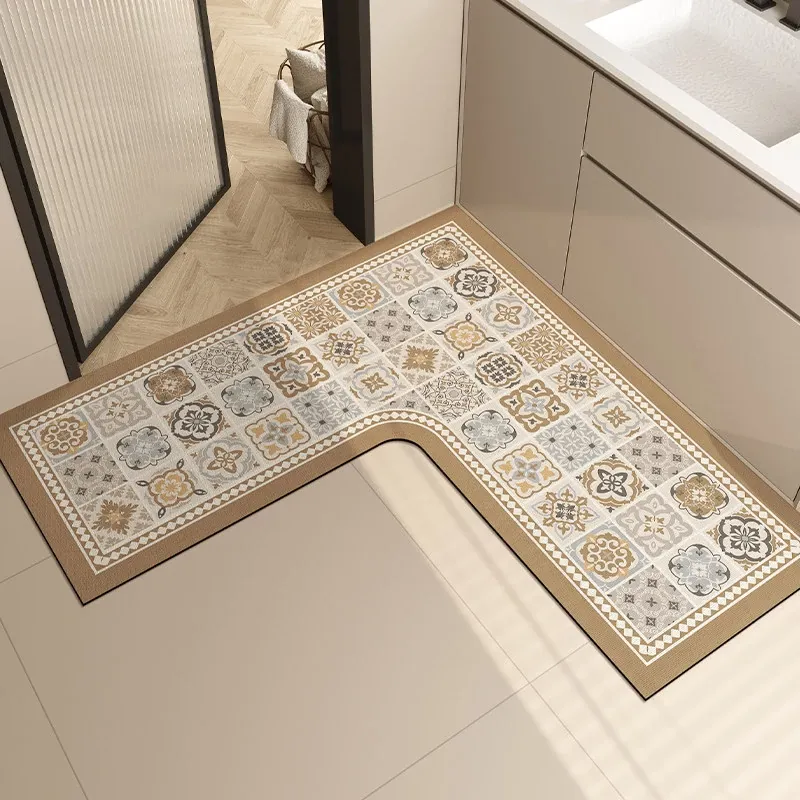 L型バスルームマット - 吸水性抜群で滑り止め効果も!トイレや洗面所の入り口に最適な柔らかいコーナーマット。清潔感あふれるデザインで、快適なバスタイムを演出します!