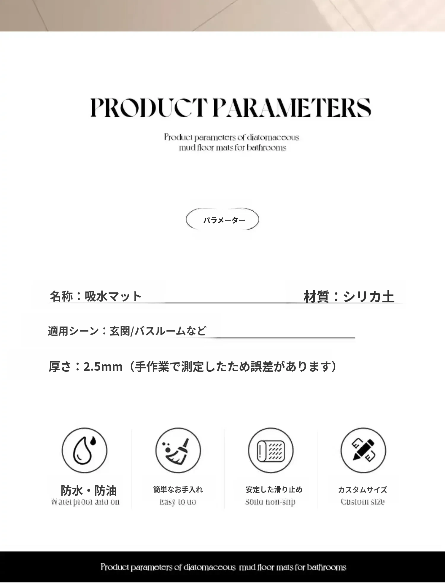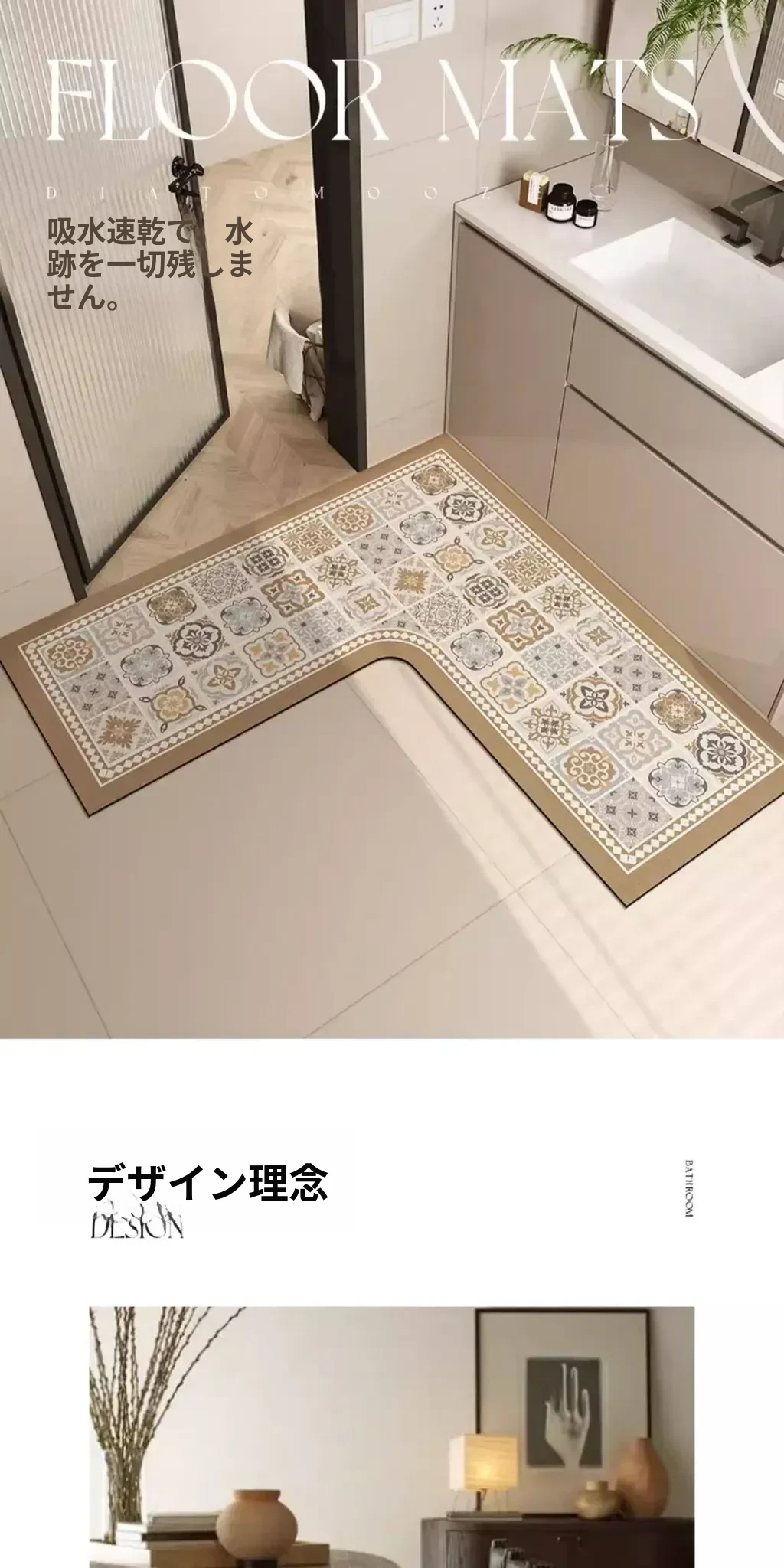 ラッキー4月のバスルーム珪藻土マット-L型