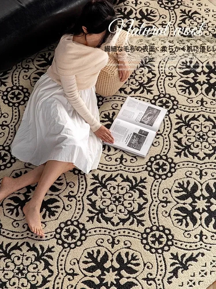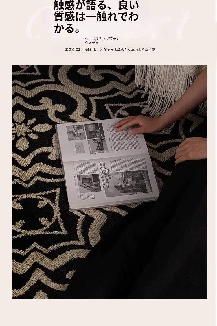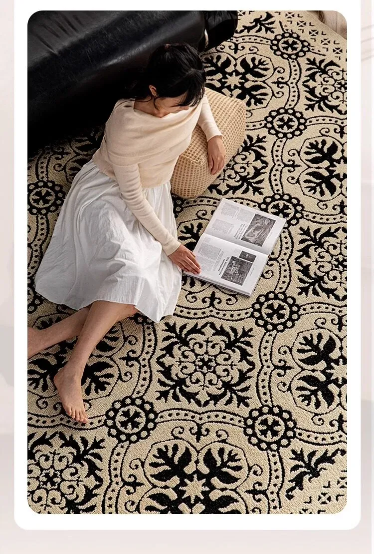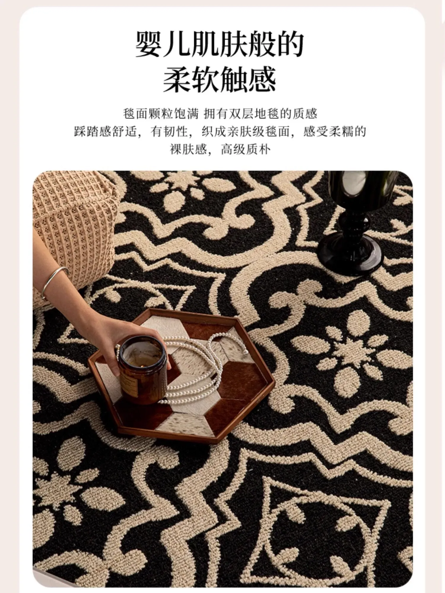 高級フランス製ウールカーペット - ラグジュアリーなリビングルームにぴったりのアメリカンヴィンテージスタイル、和の美を感じる侘び寂びデザインのティーサイドマットとベッドサイドカーペット。
