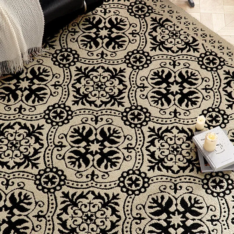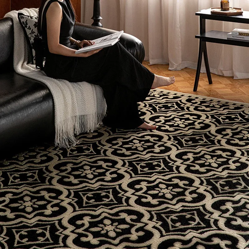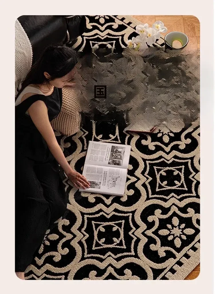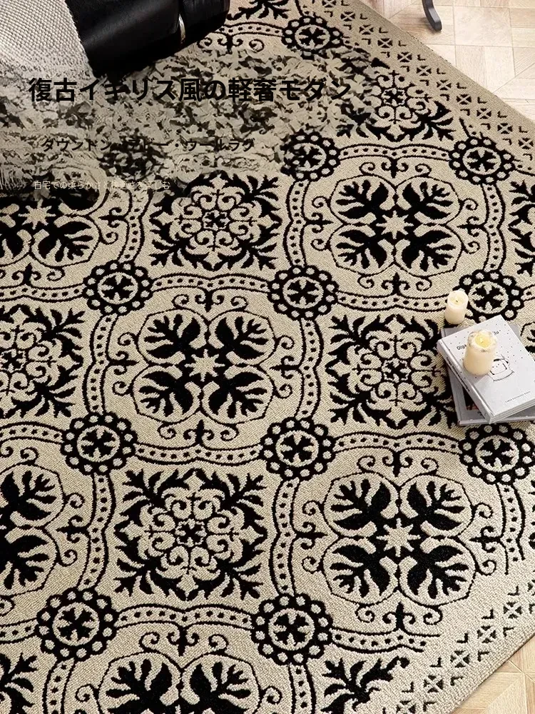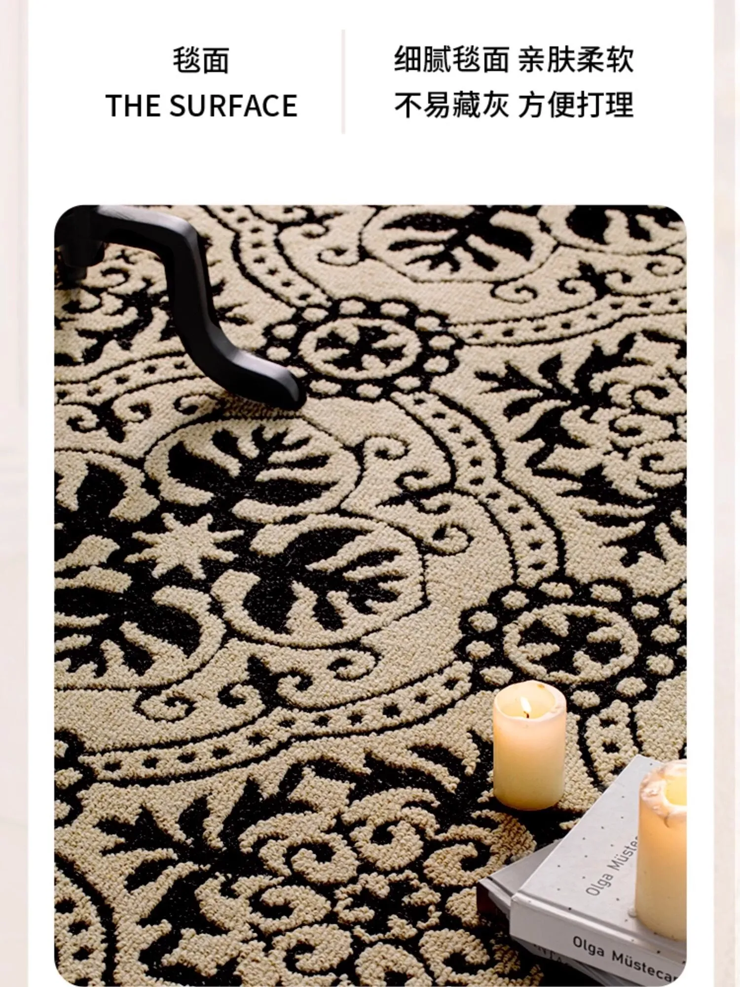 高級フランス製ウールカーペット - ラグジュアリーなリビングルームにぴったりのアメリカンヴィンテージスタイル、和の美を感じる侘び寂びデザインのティーサイドマットとベッドサイドカーペット。
