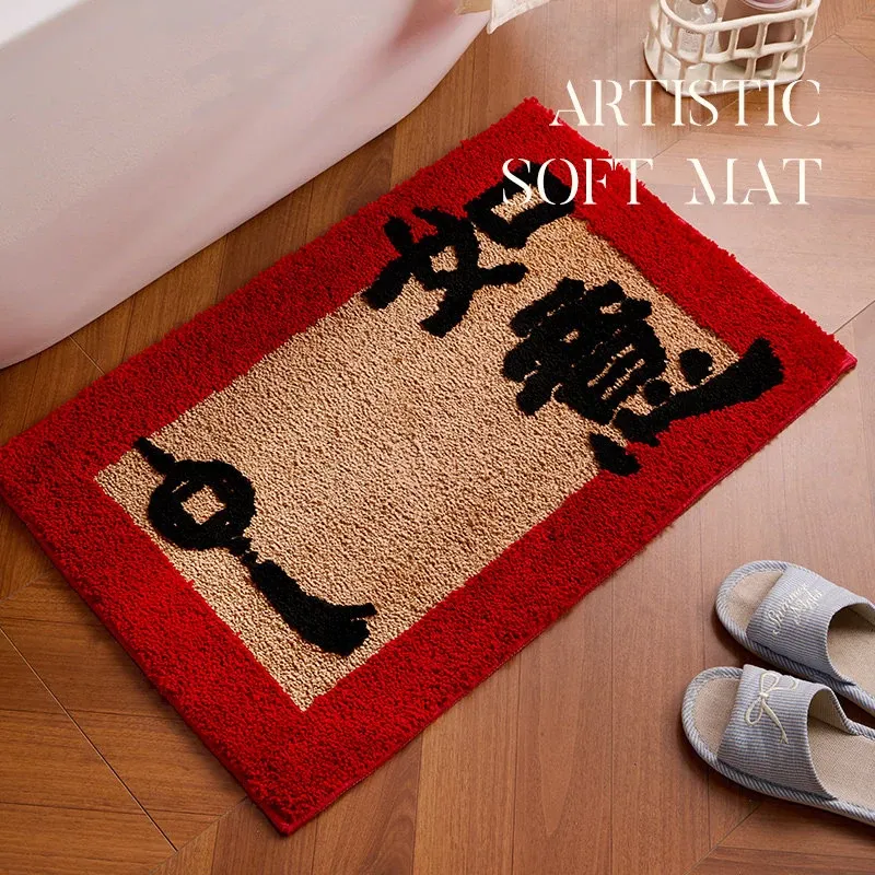 新中式デザインの厚手バスルームマット!吸水性抜群で速乾性もあり、トイレの入り口にぴったり。家庭用の滑り止め付きフロアカーペットで、安全性とスタイルを両立!