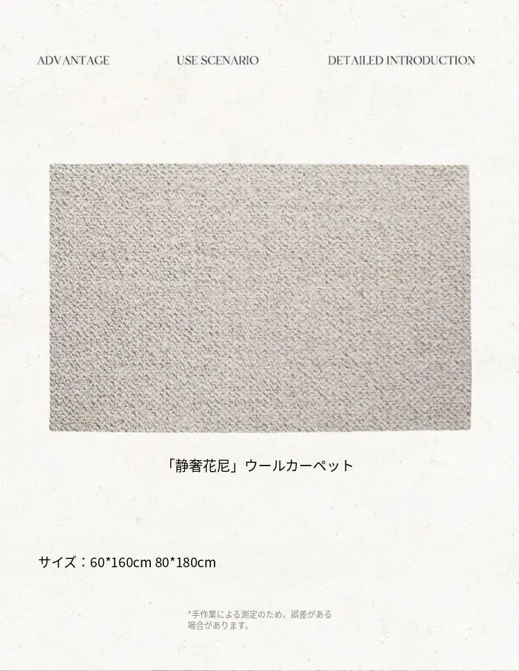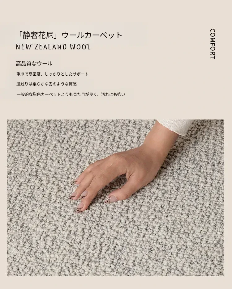 ニュージーランド産ウールのベッドサイドマット、シンプルでスタイリッシュなデザイン。寝室や書斎にぴったりの長方形カーペット。高級感漂うリビングルーム用ラグで、快適さとエレガンスを手に入れましょう!