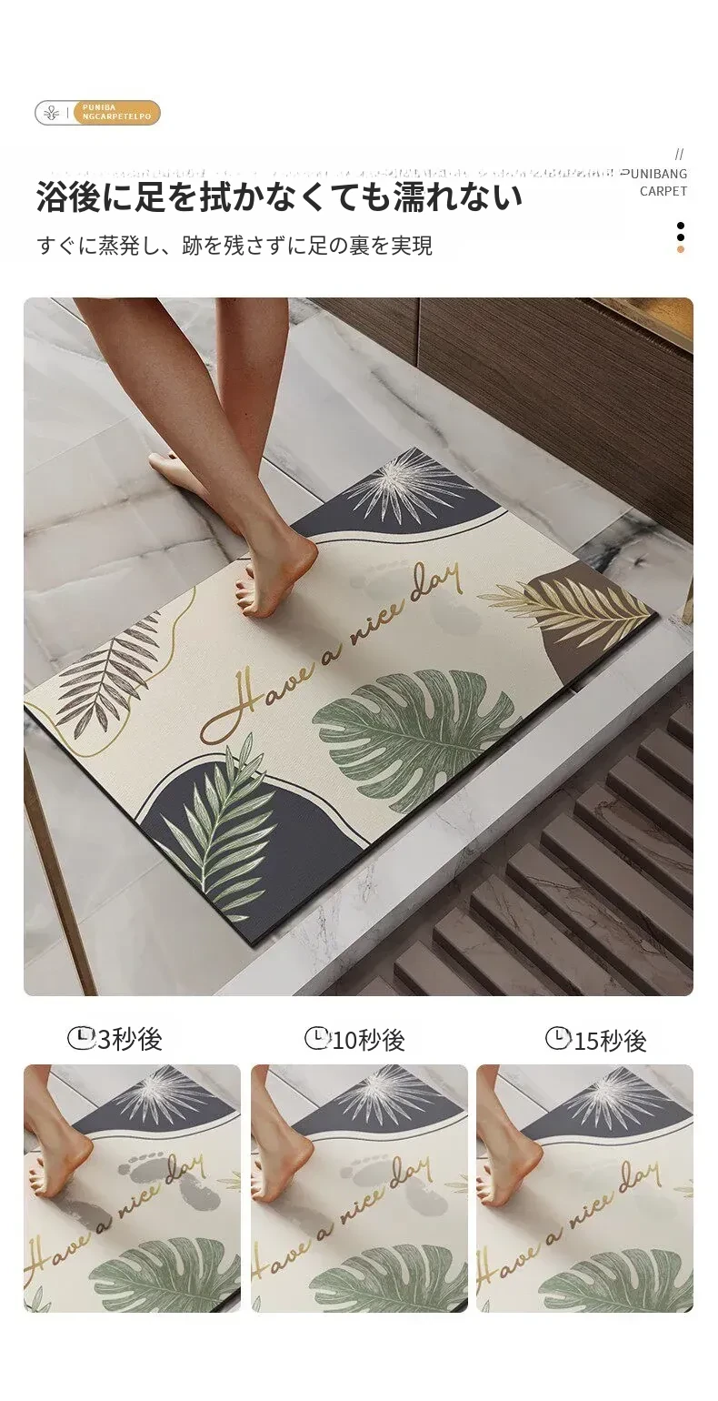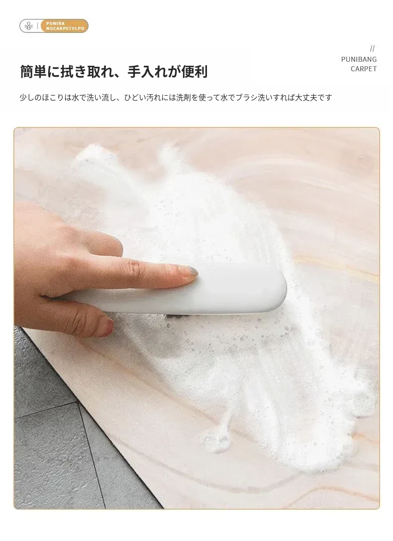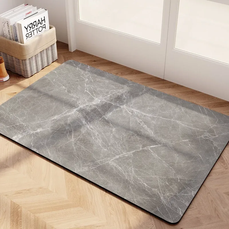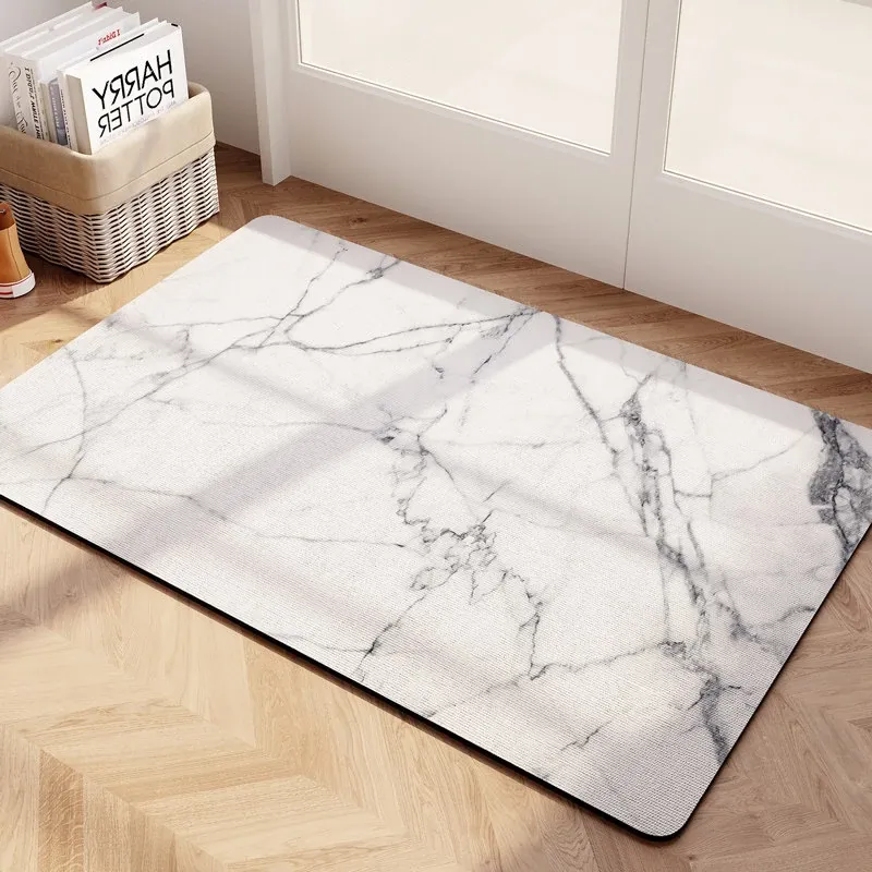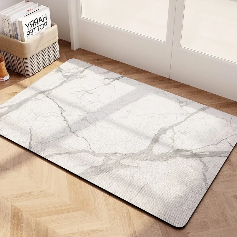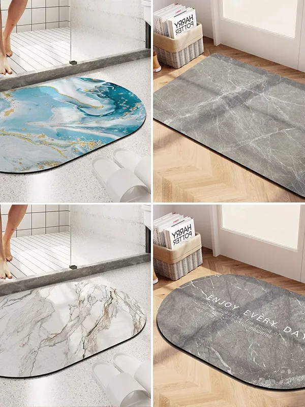 大理石模様のバスルーム用マット - 吸水性抜群、滑り止め付きのソフトなシリカゲル素材。エレガントな楕円形デザインで、トイレの入口を華やかに演出!快適な足元を実現します。