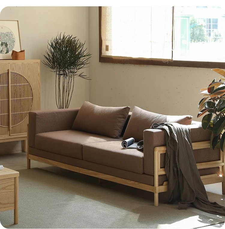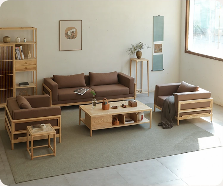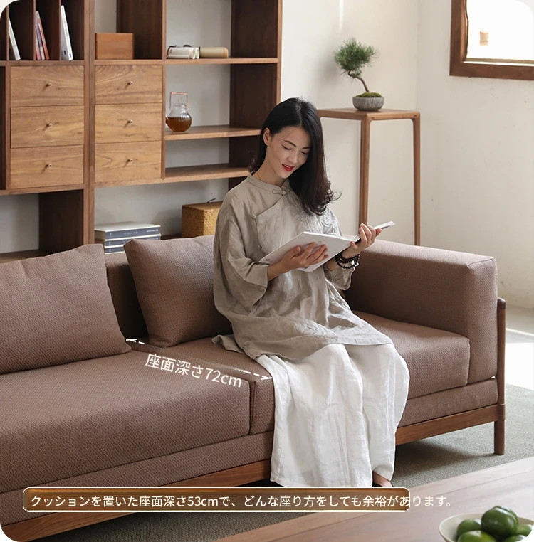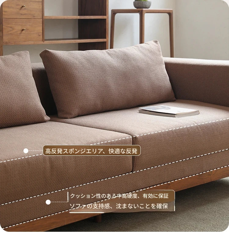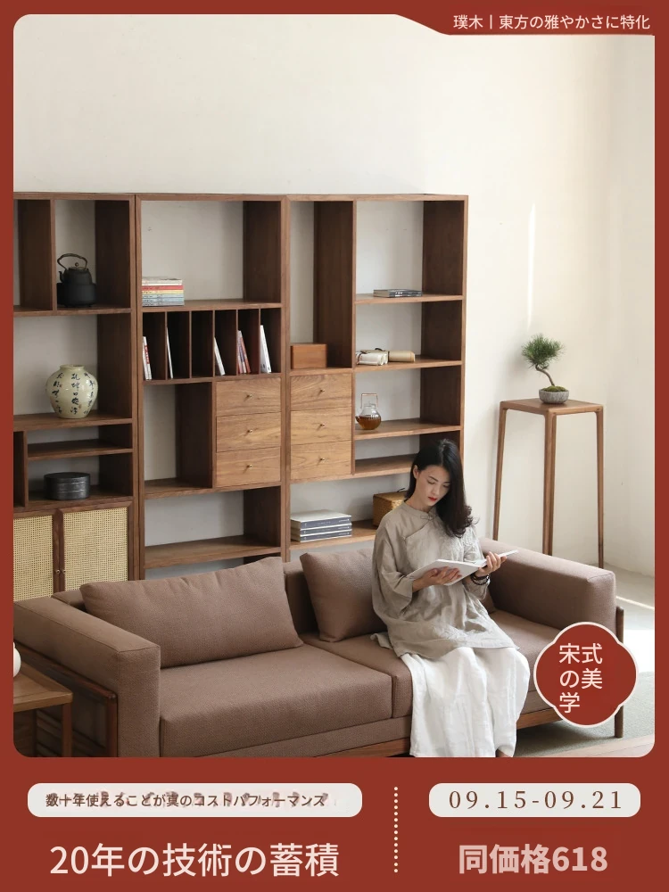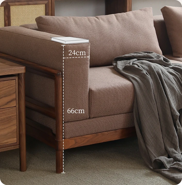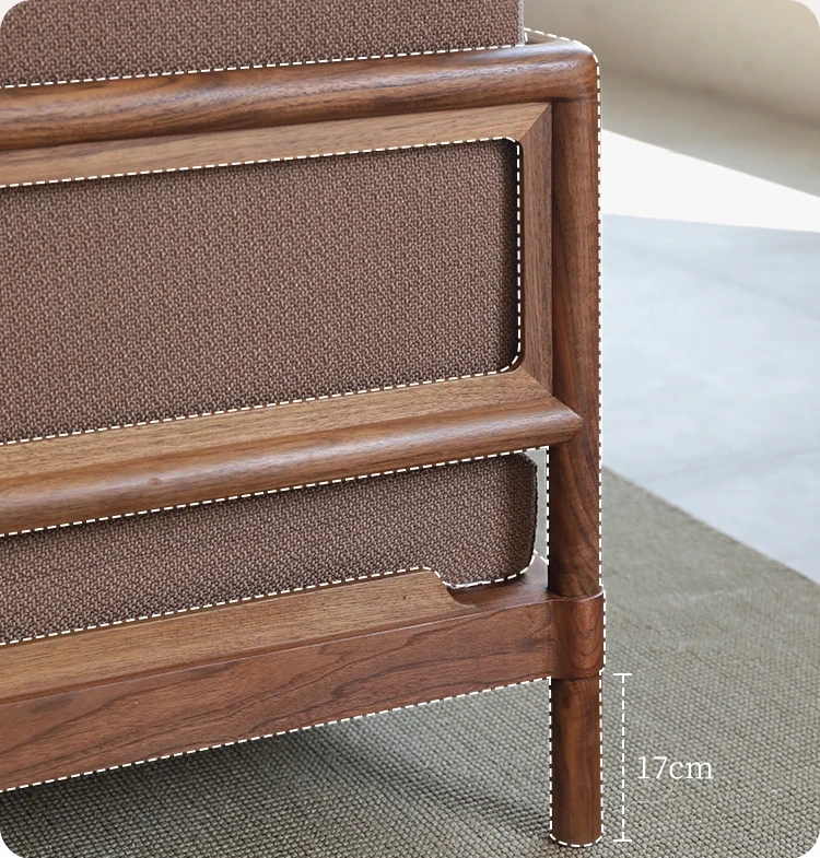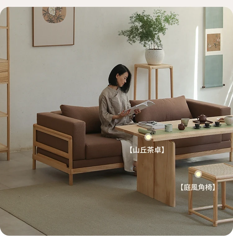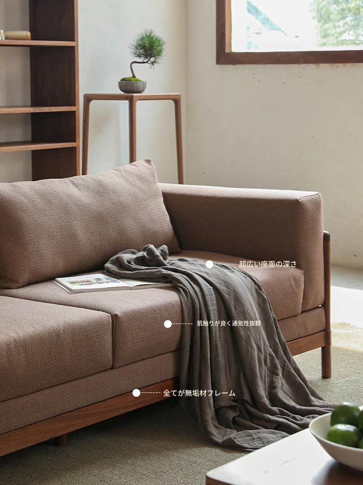新中式スタイルの多人数用ソファ、ブラックウォールナット無垢材使用。モダンでシンプルなデザインの布張りコーナー・フェイスタイプの組み合わせ家具で、リビングにぴったりの洗練された選択!