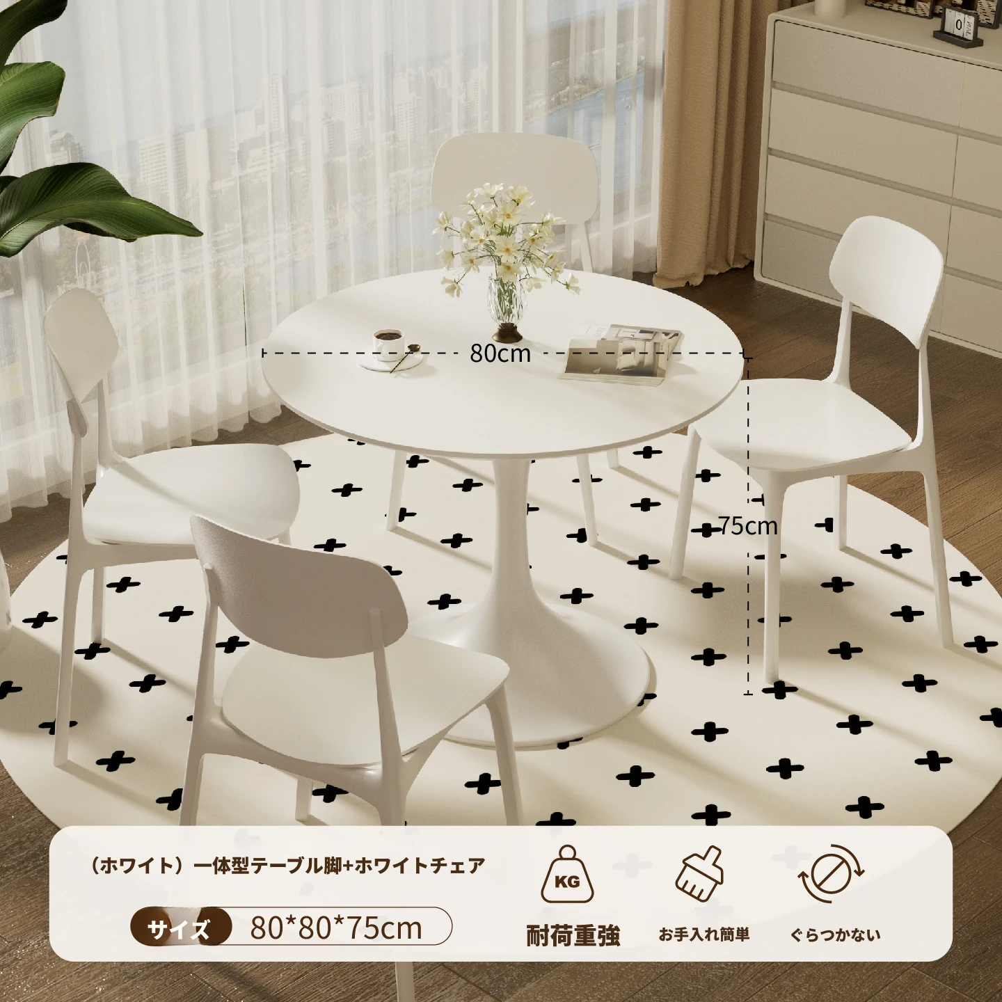 【ホワイト-一体テーブル脚】80直径円卓+【椅子*4】