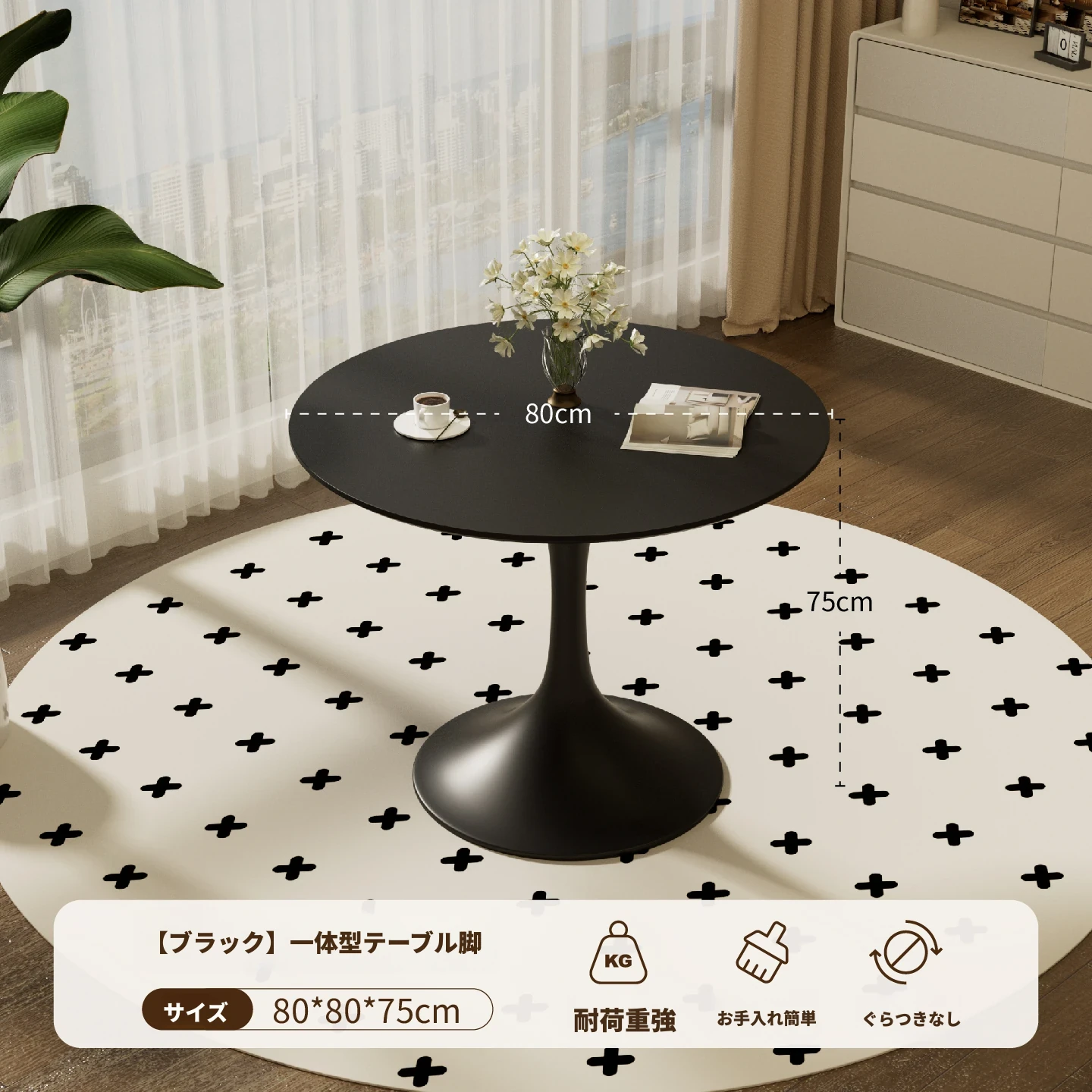 【ブラック-一体テーブル脚】80直径円卓+【椅子*4】