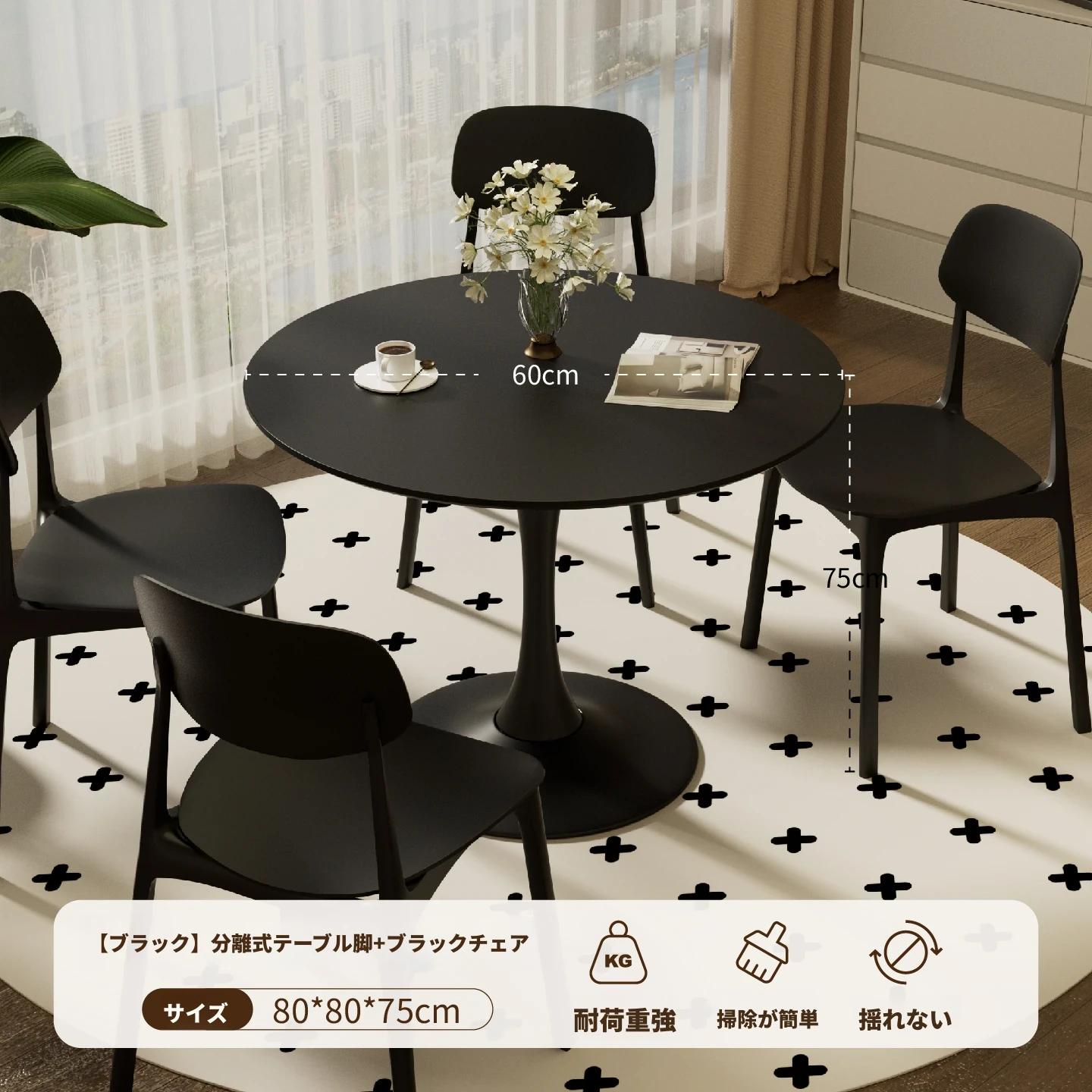 【ブラック-分体テーブル脚】80直径円卓+【椅子*4】