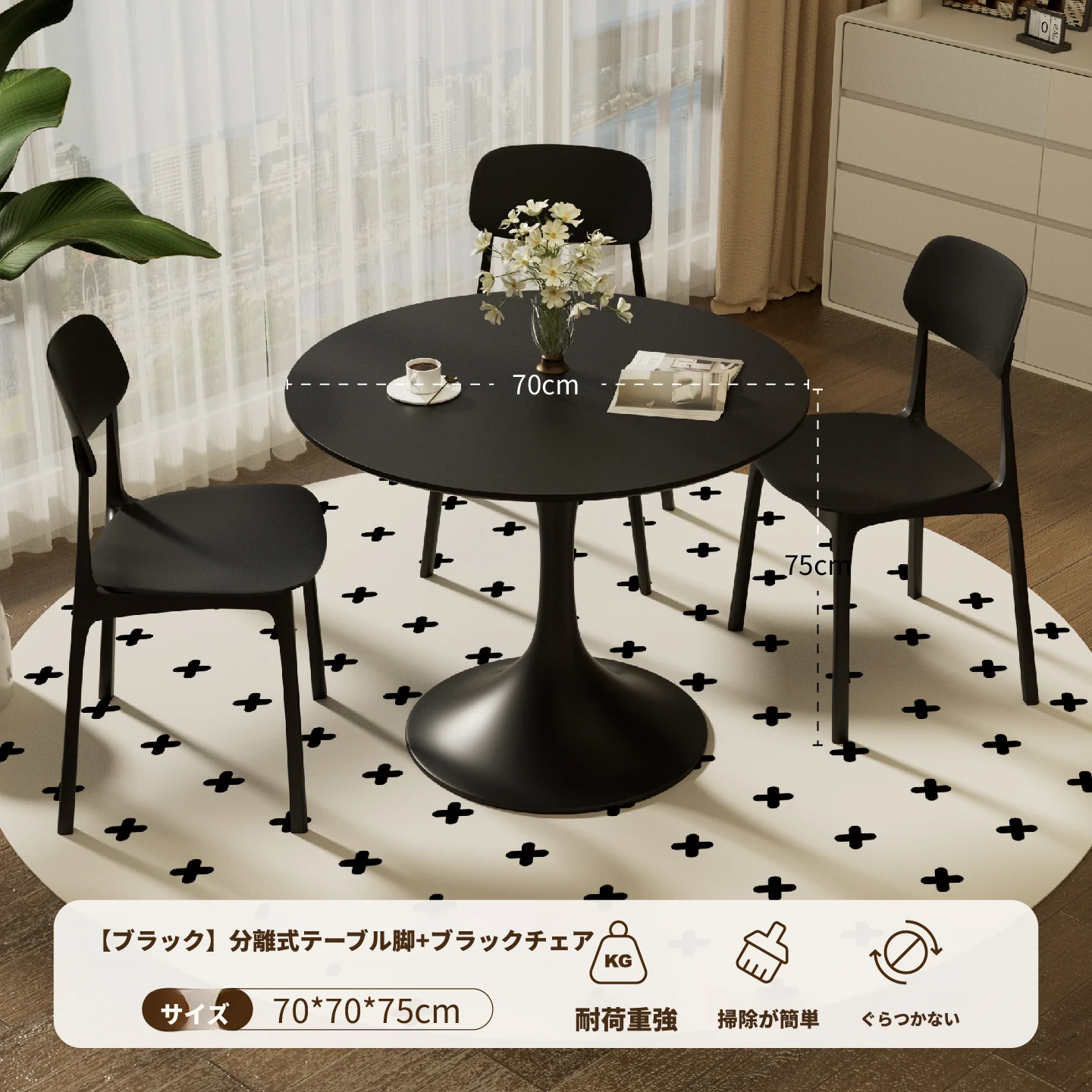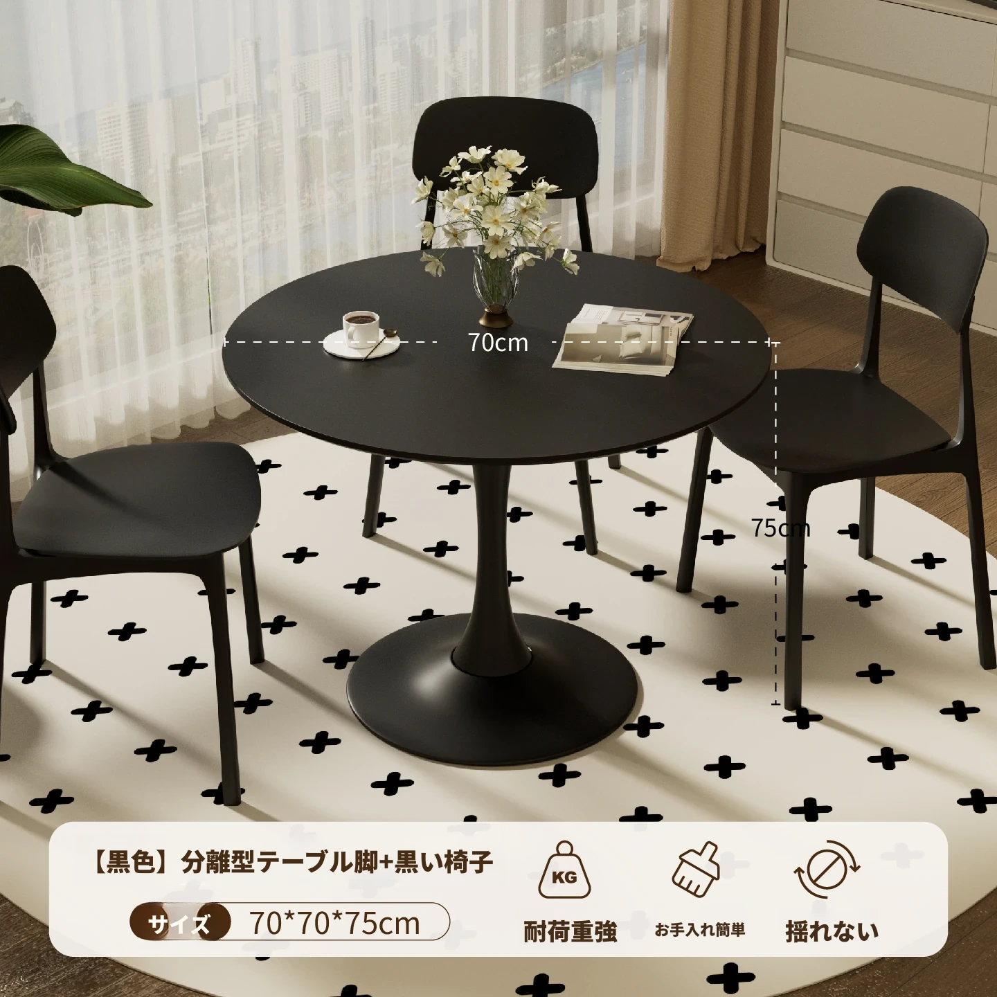 【ブラック-分体テーブル脚】70直径円卓+【椅子*3】