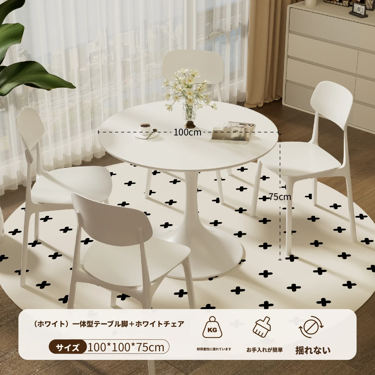 【ホワイト-一体テーブル脚】100直径円卓+【椅子*4】