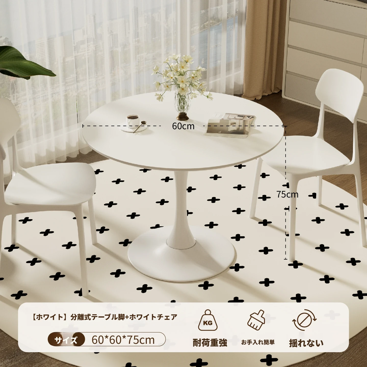【ホワイト-分体テーブル脚】60直径円卓+【椅子*2】