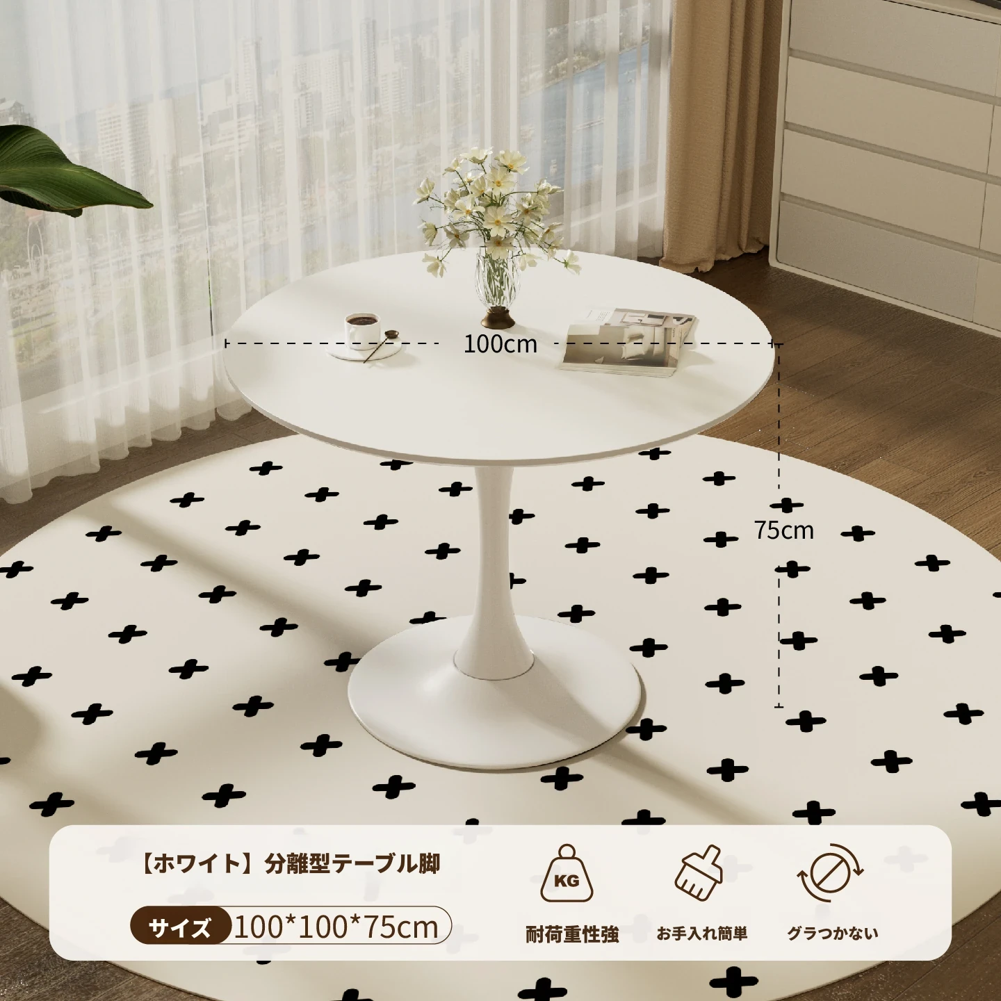 【ホワイト-分体テーブル脚】100直径円卓+【椅子*4】