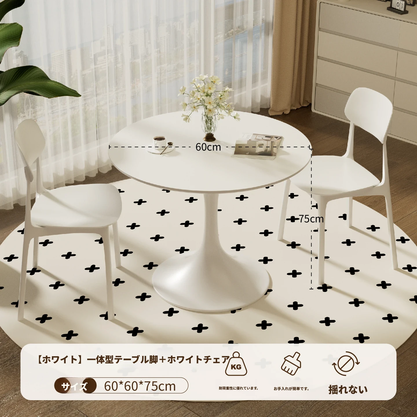 【ホワイト-一体テーブル脚】60直径円卓+【椅子*2】