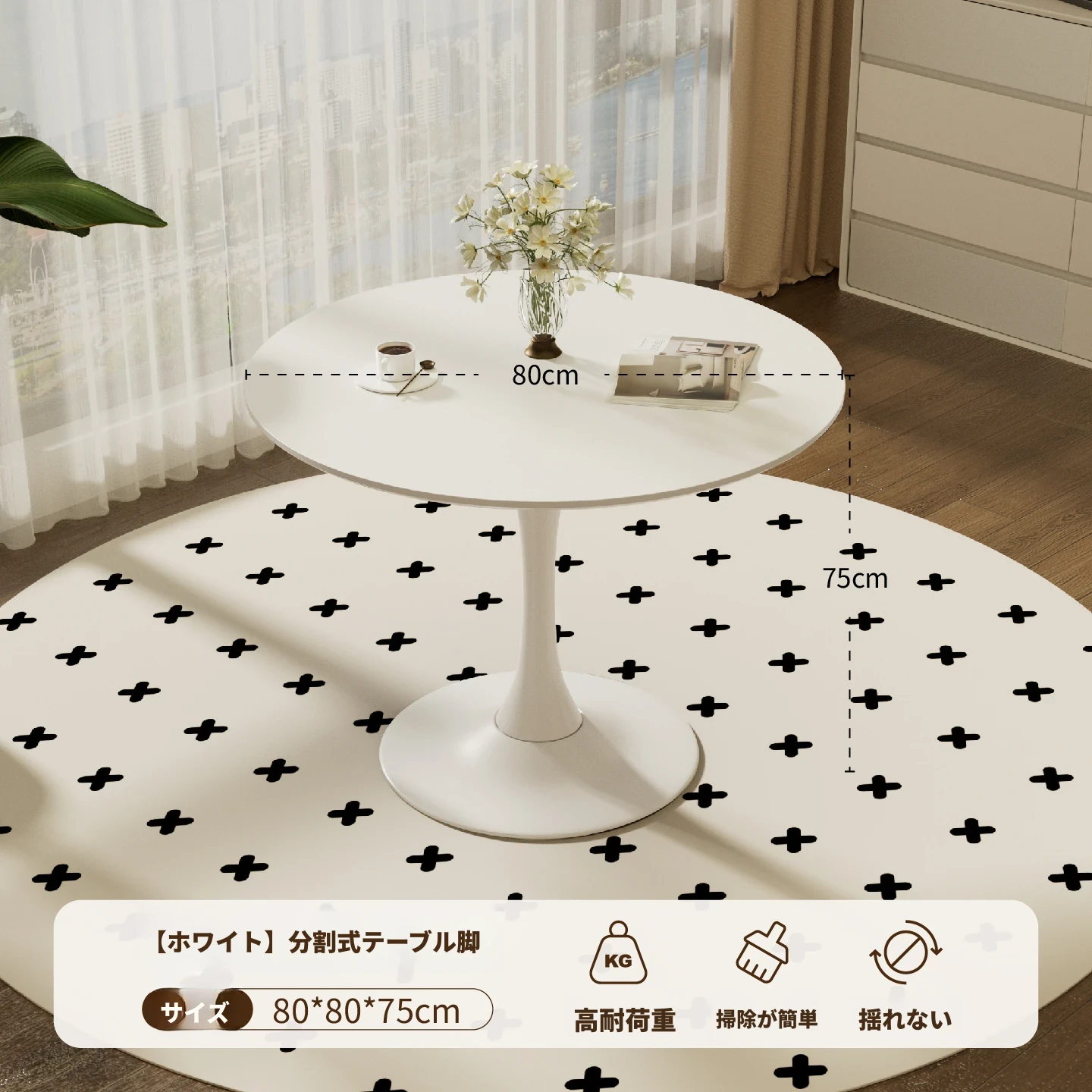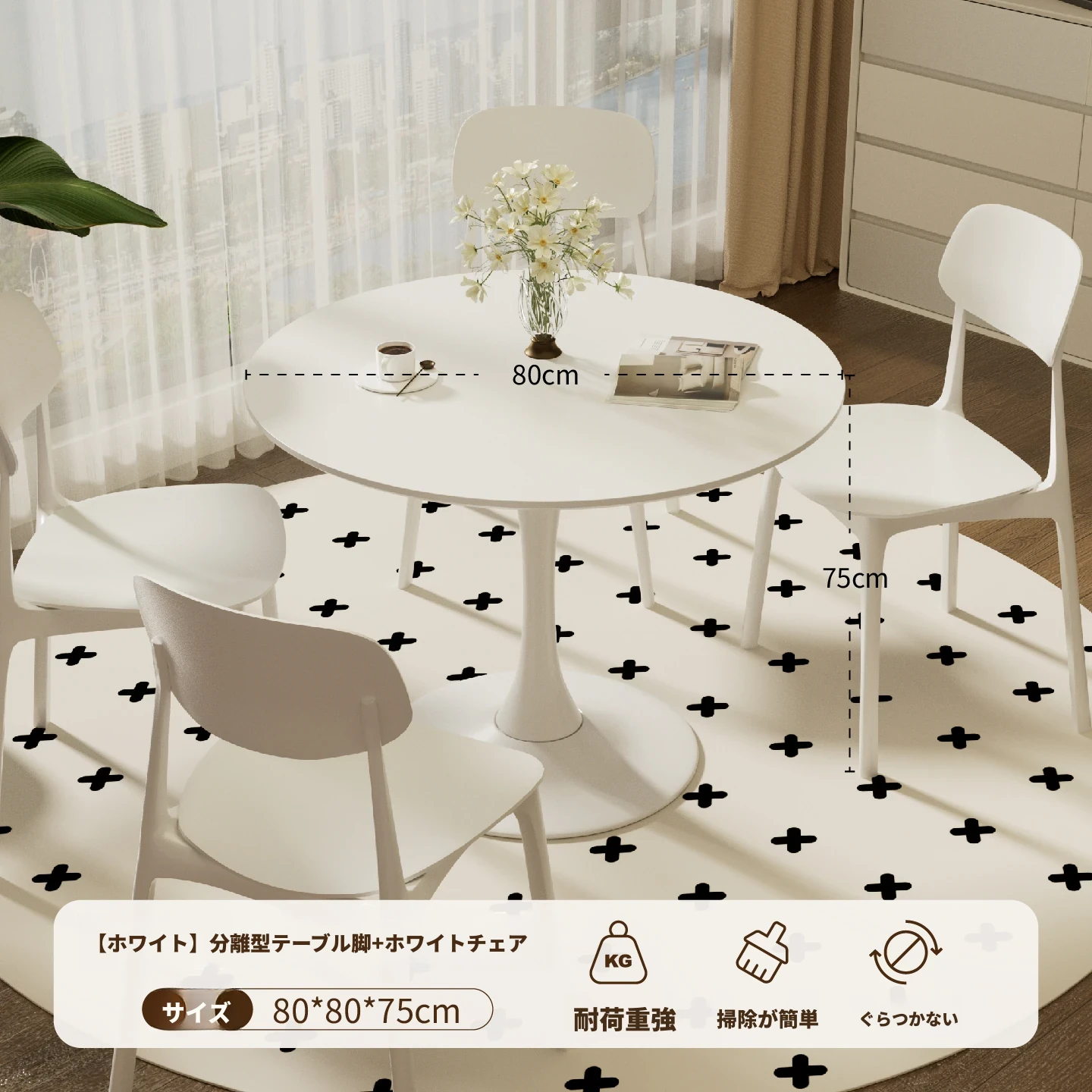 【ホワイト-分体テーブル脚】80直径円卓+【椅子*4】