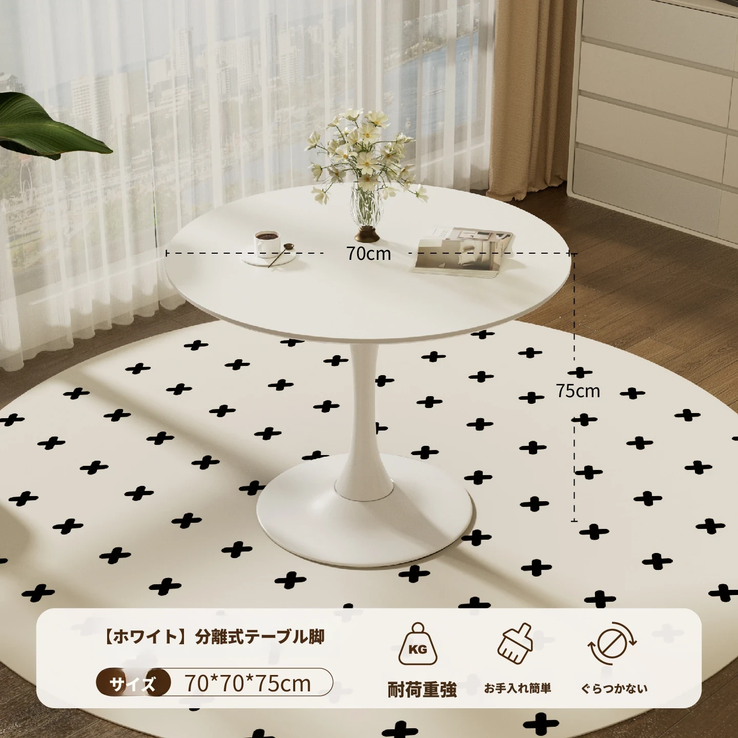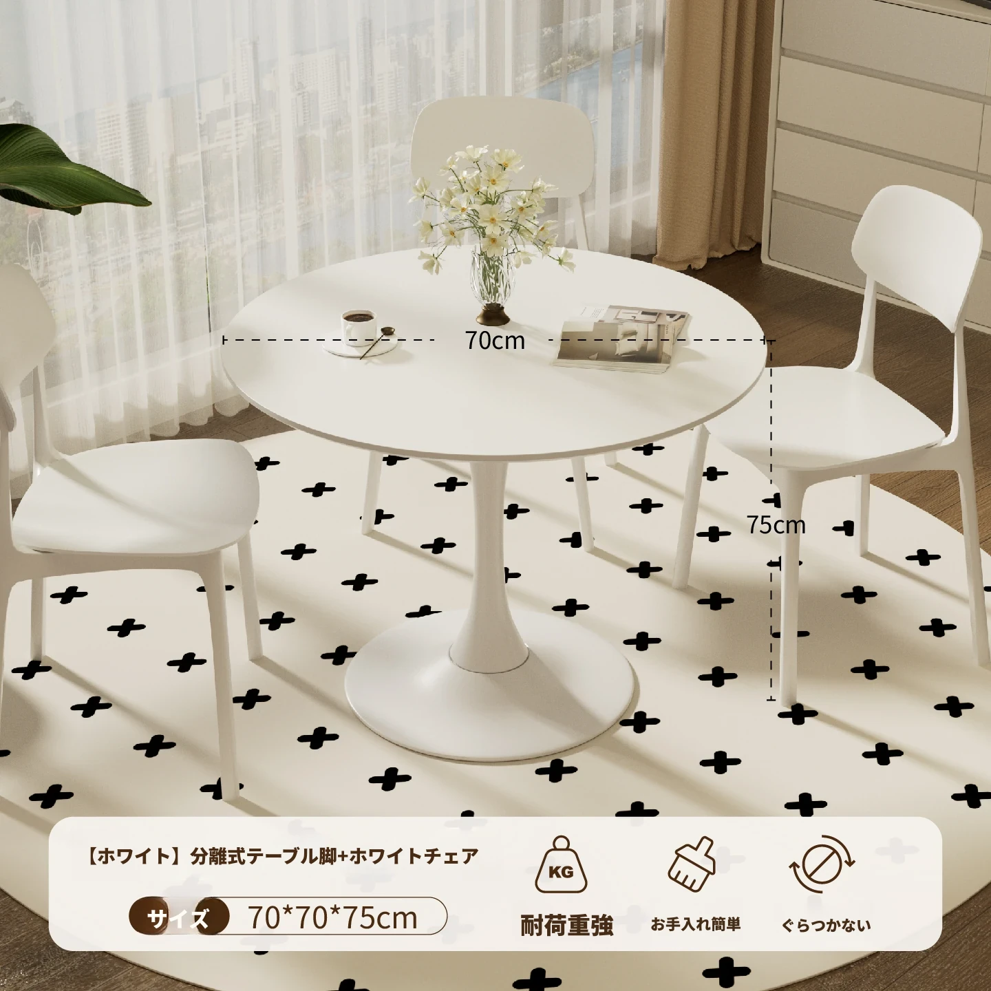 【ホワイト-分体テーブル脚】70直径円卓+【椅子*3】