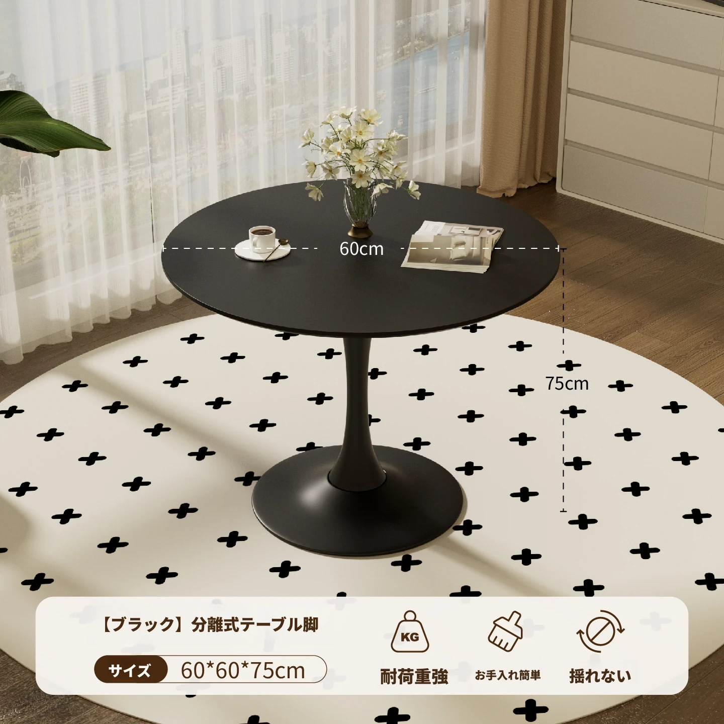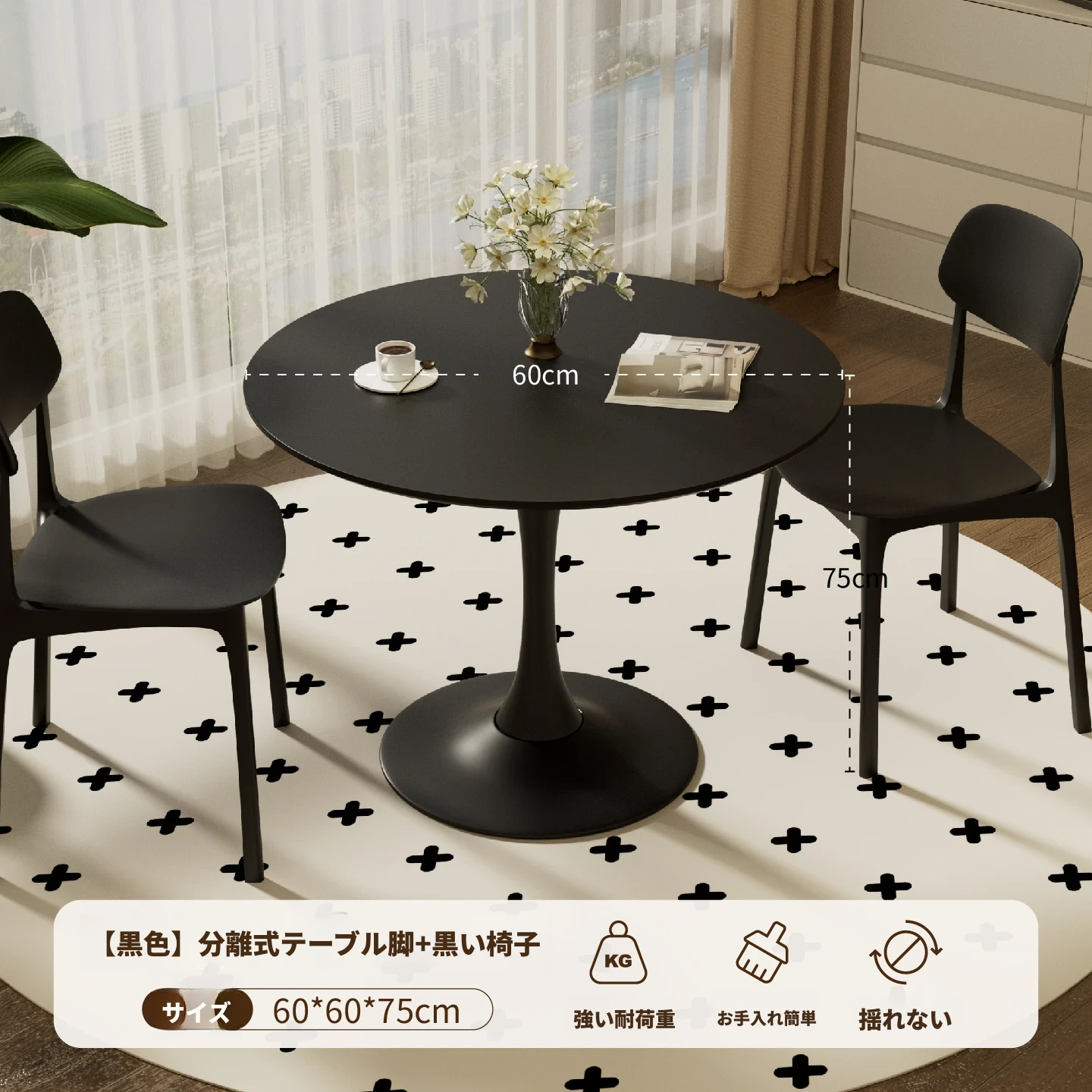 【ブラック-分体テーブル脚】60直径円卓+【椅子*2】