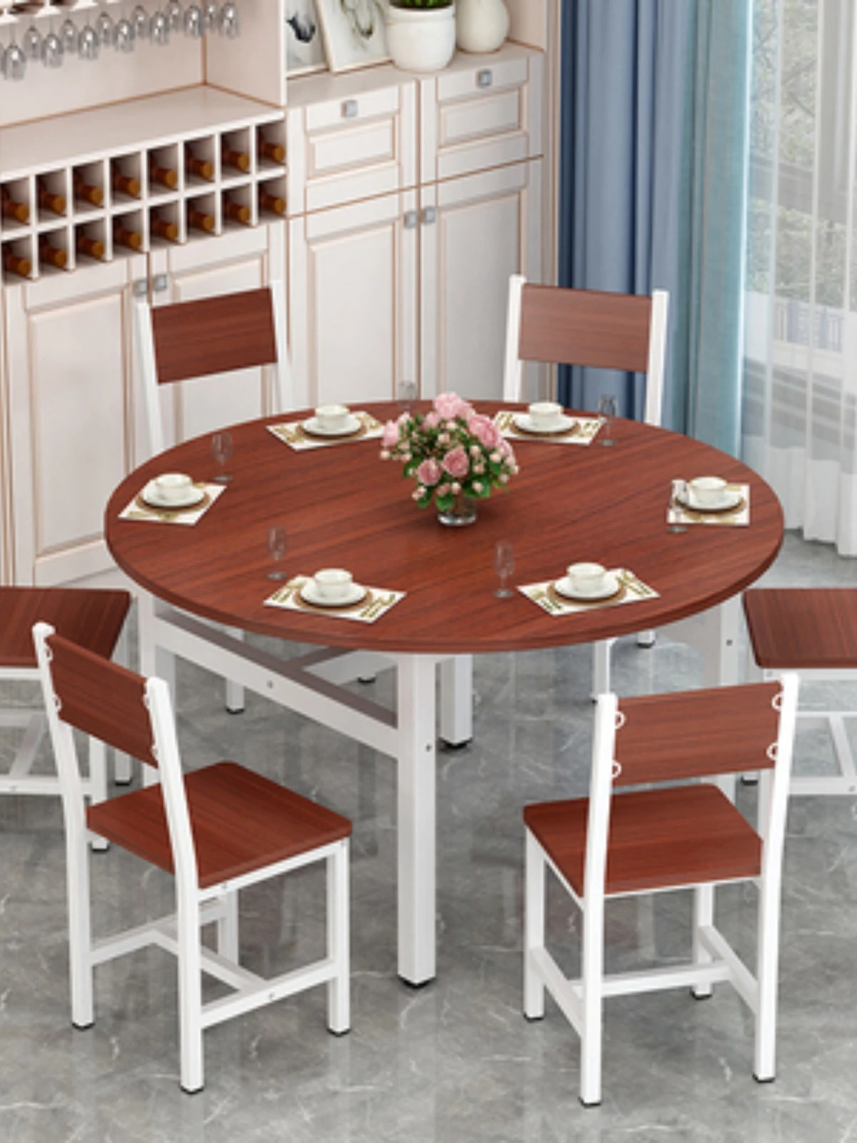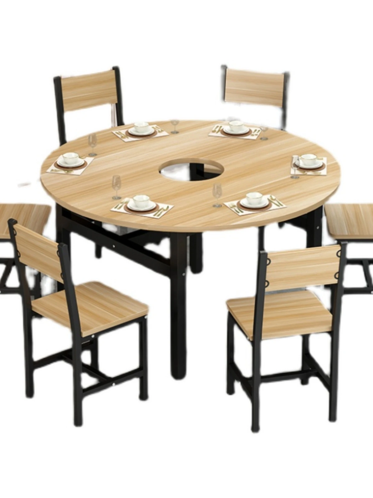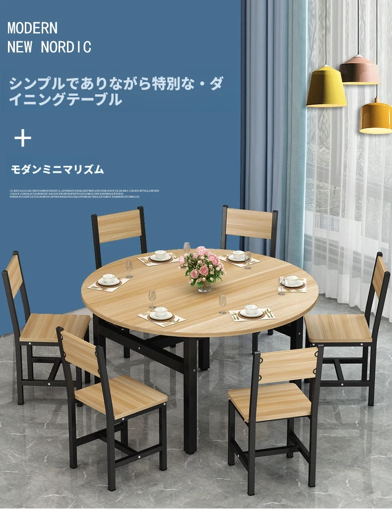 現代的シンプルな丸テーブルと椅子のセット - 小さな飲食店や焼肉、朝食、ファーストフード店に最適!多人数対応の家庭用にもぴったりなコンパクトデザイン。おしゃれで機能的なダイニング空間を演出します!