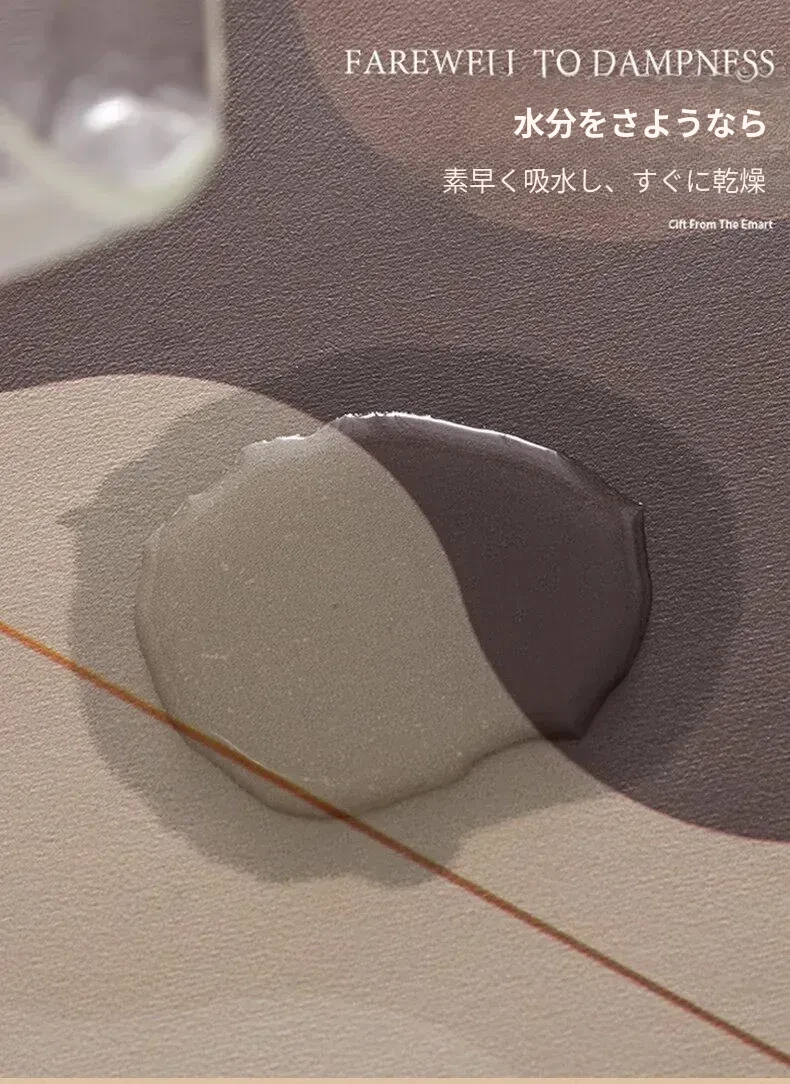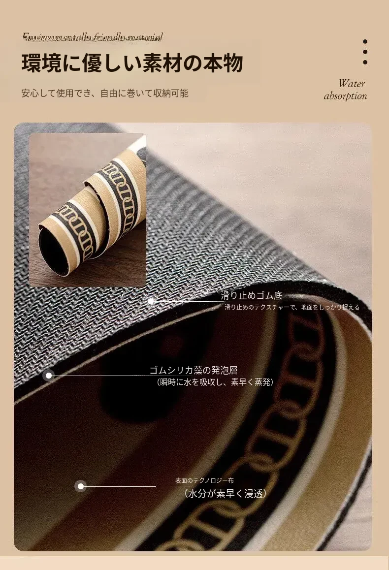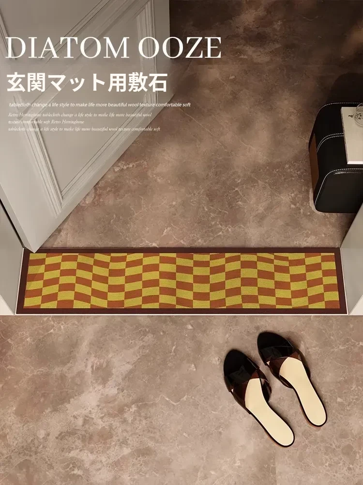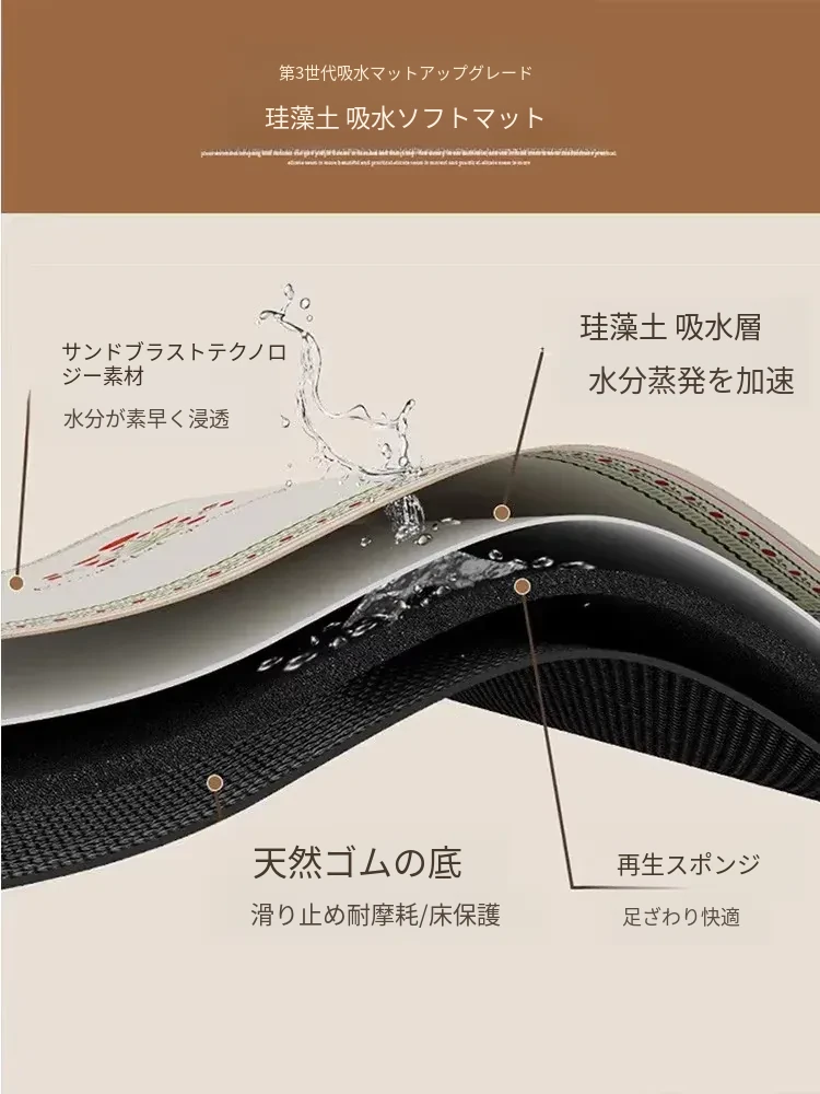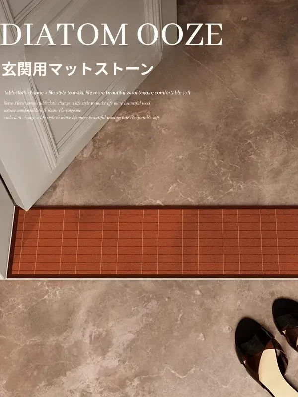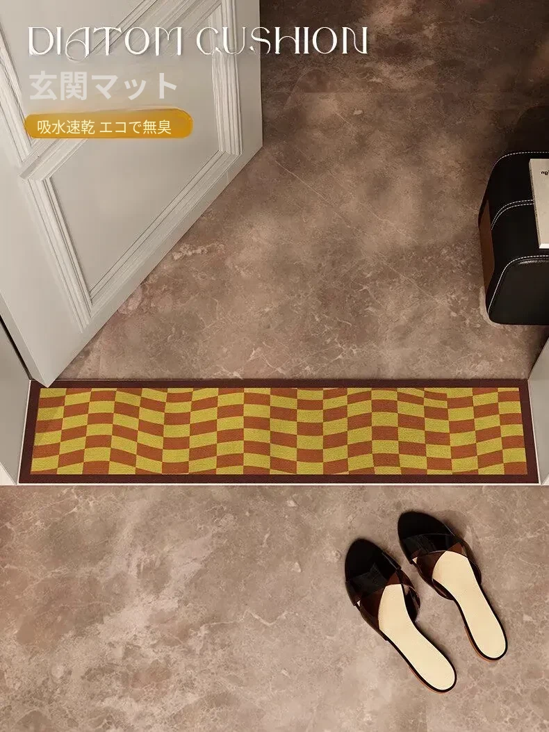 バスルームに最適!超薄型の玄関マット - 吸水性抜群の珪藻土マットで、湿気をしっかりキャッチ!狭いスペースにもピッタリな長方形デザイン。快適な足元を実現します!