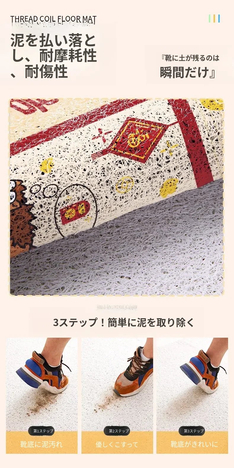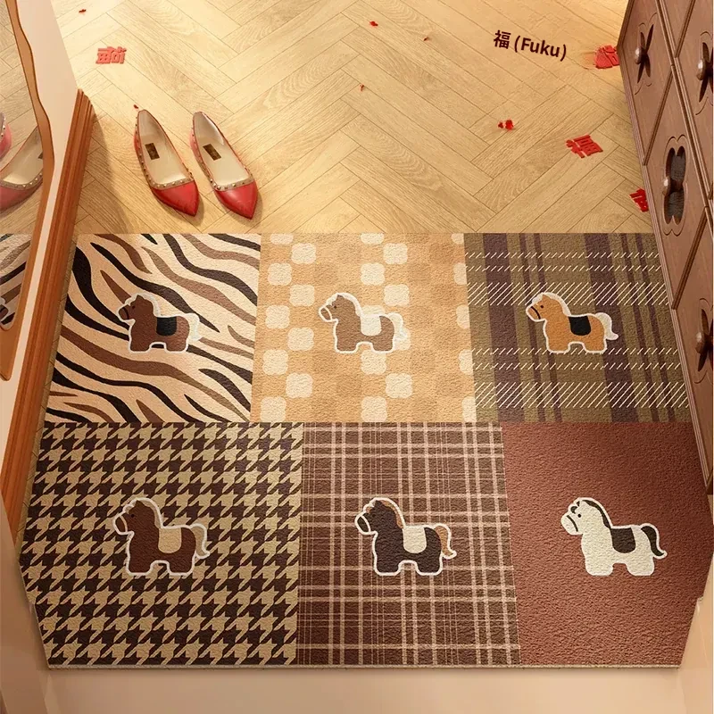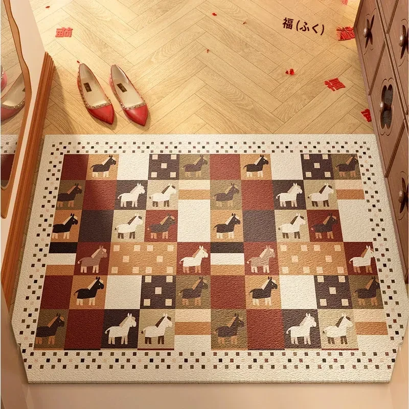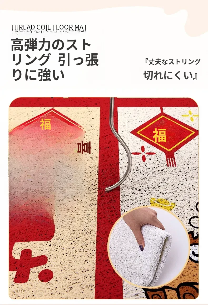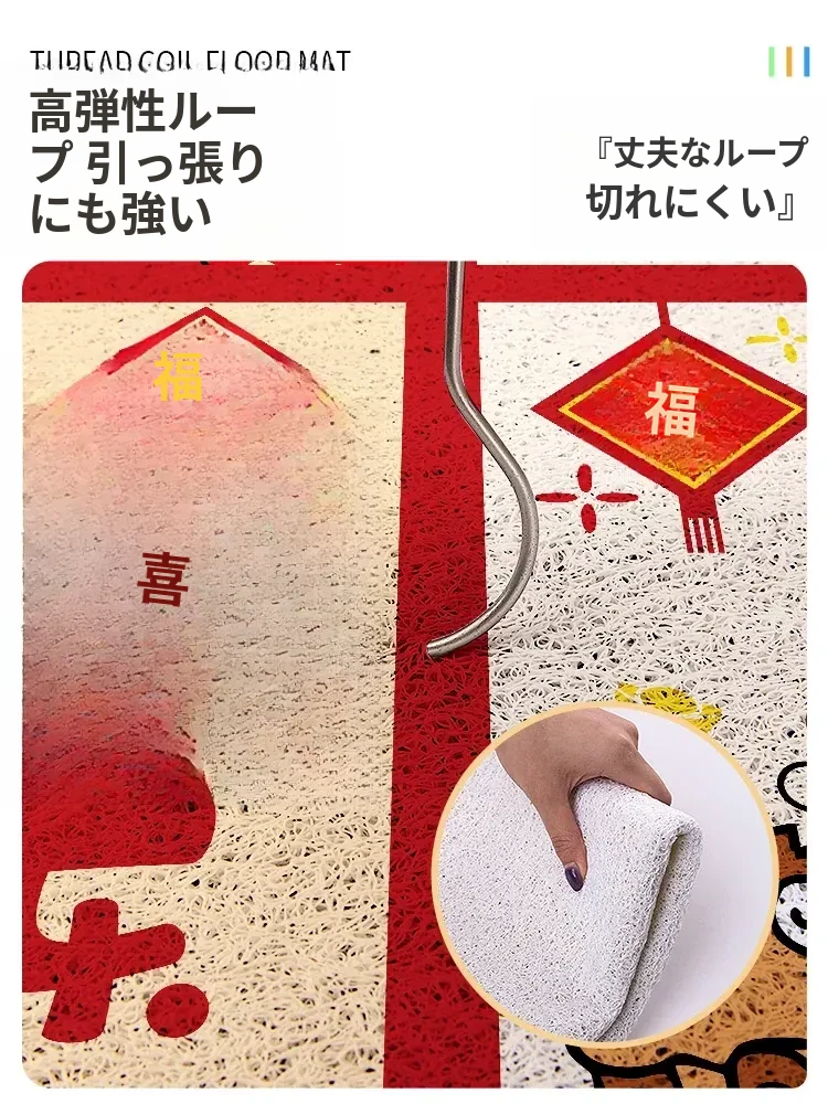 新年を迎える小さな馬の赤いカーペット!カット可能なマイクロファイバーで、入口にぴったりフィット。家庭用の滑り止め玄関マットで、安全におしゃれな空間を演出します。