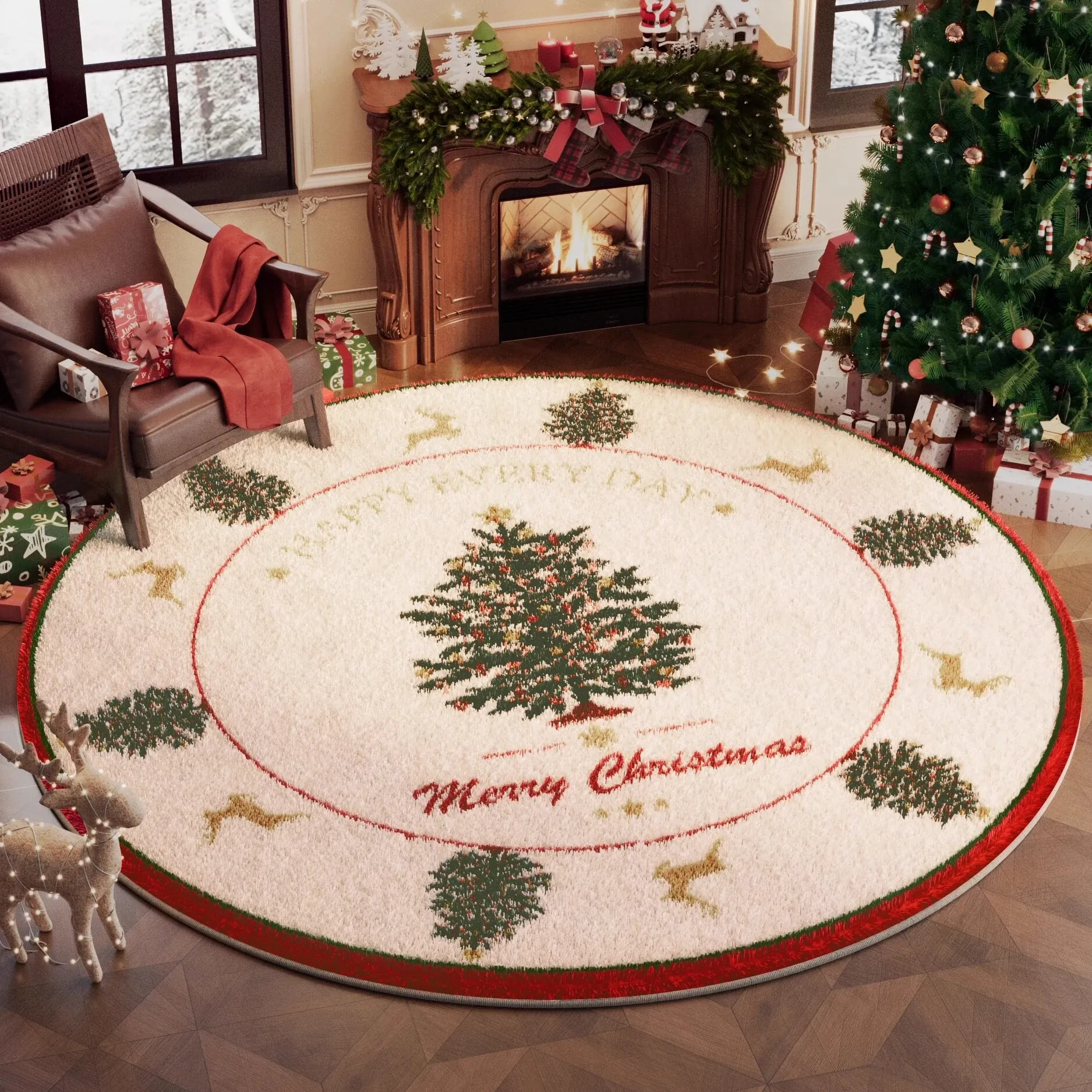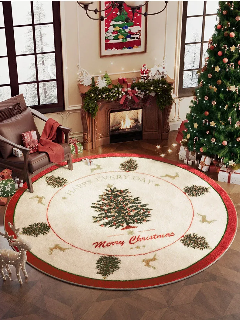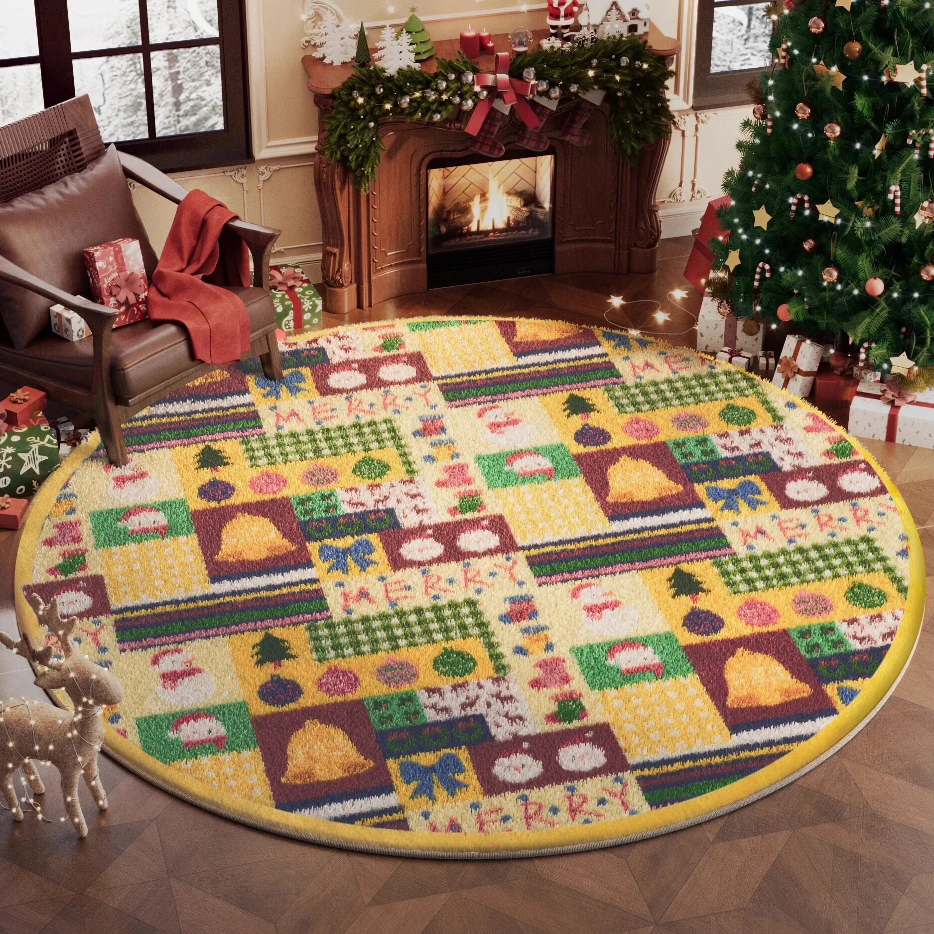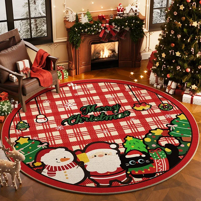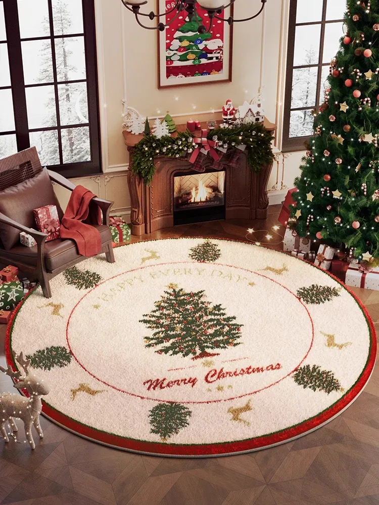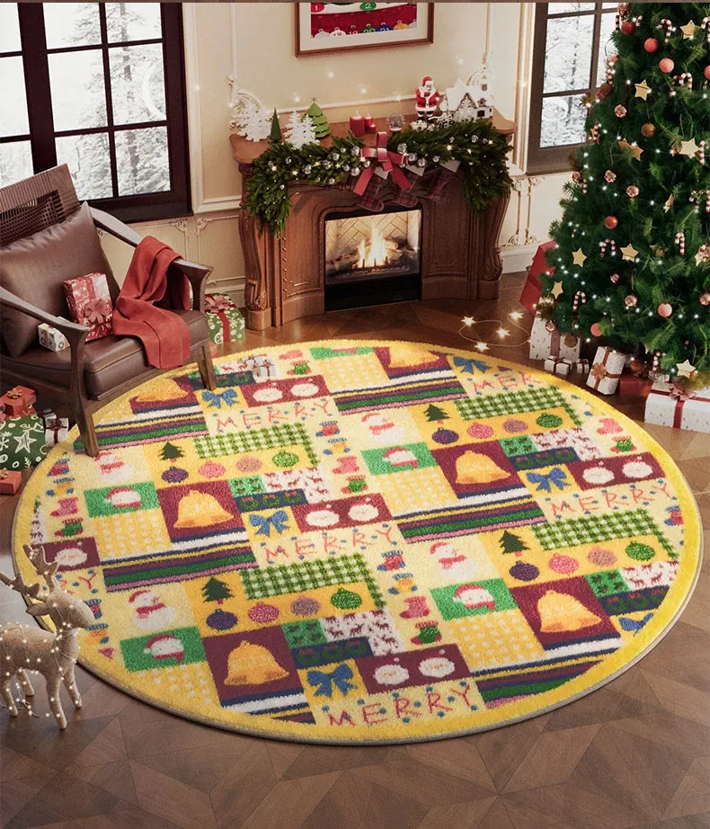 新年用のラウンドレッドカーペット!おしゃれなソファや椅子にぴったりの厚手フワフワマット。お部屋を明るく彩る装飾アイテムとして、贈り物にも最適です!