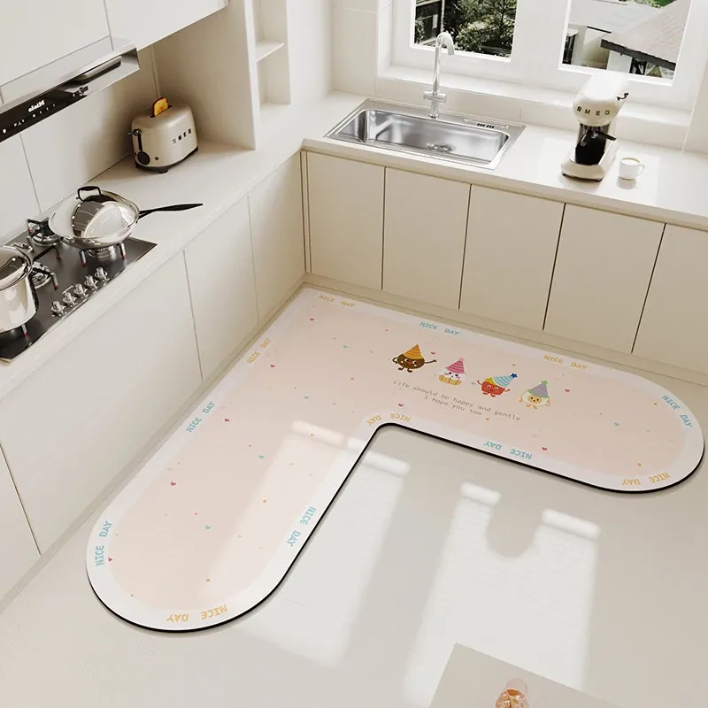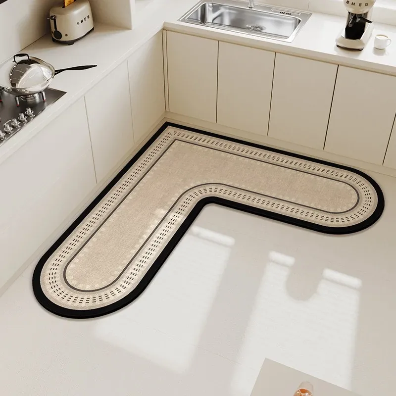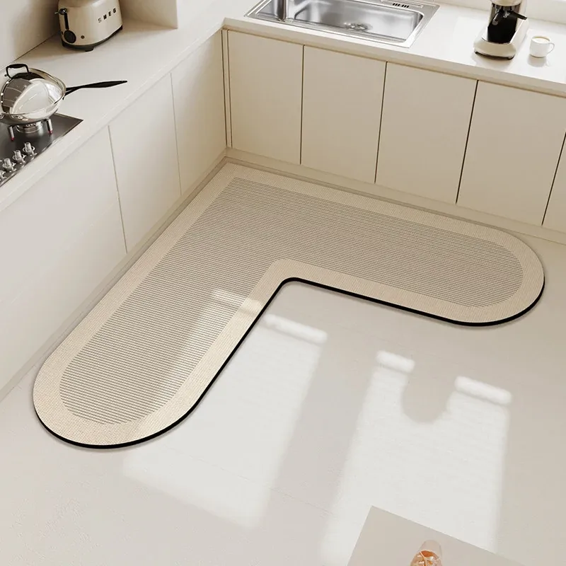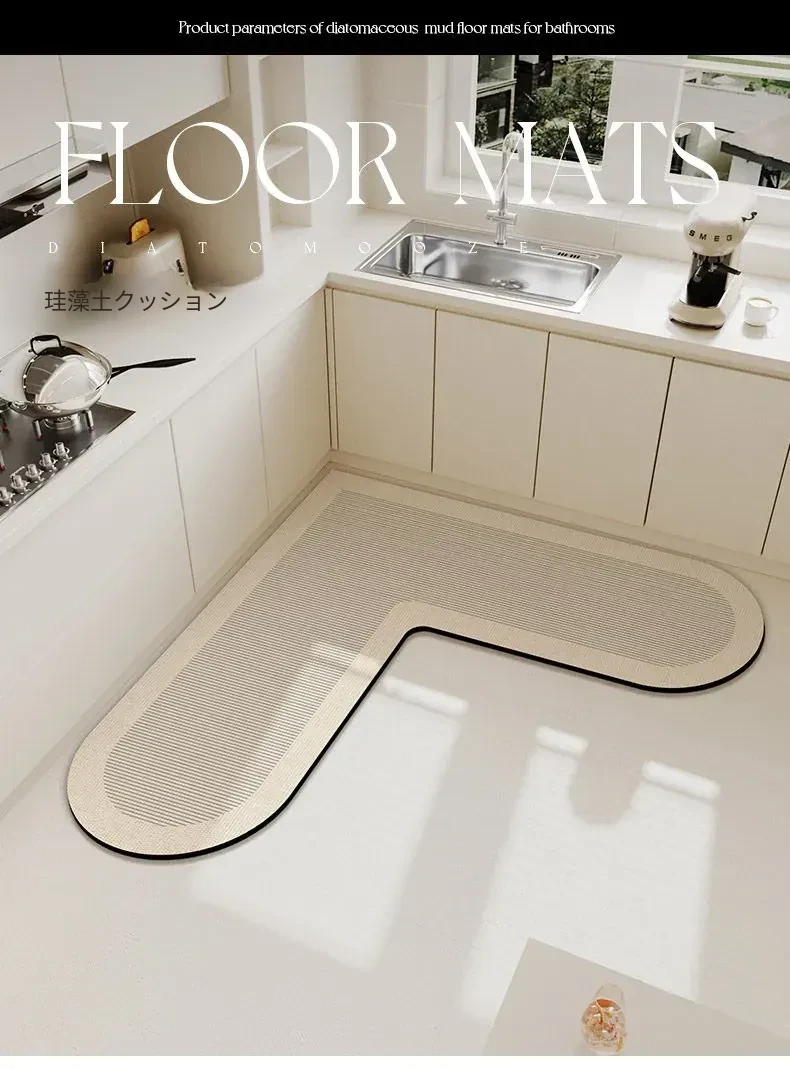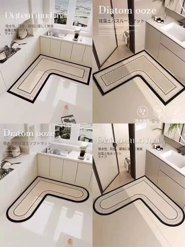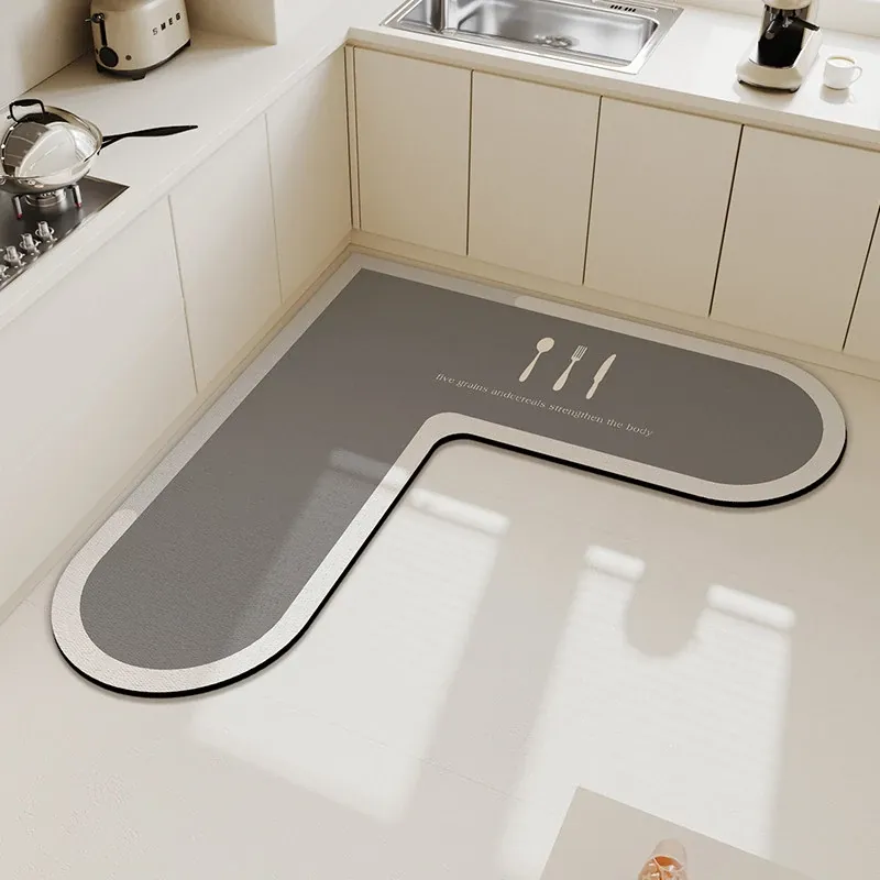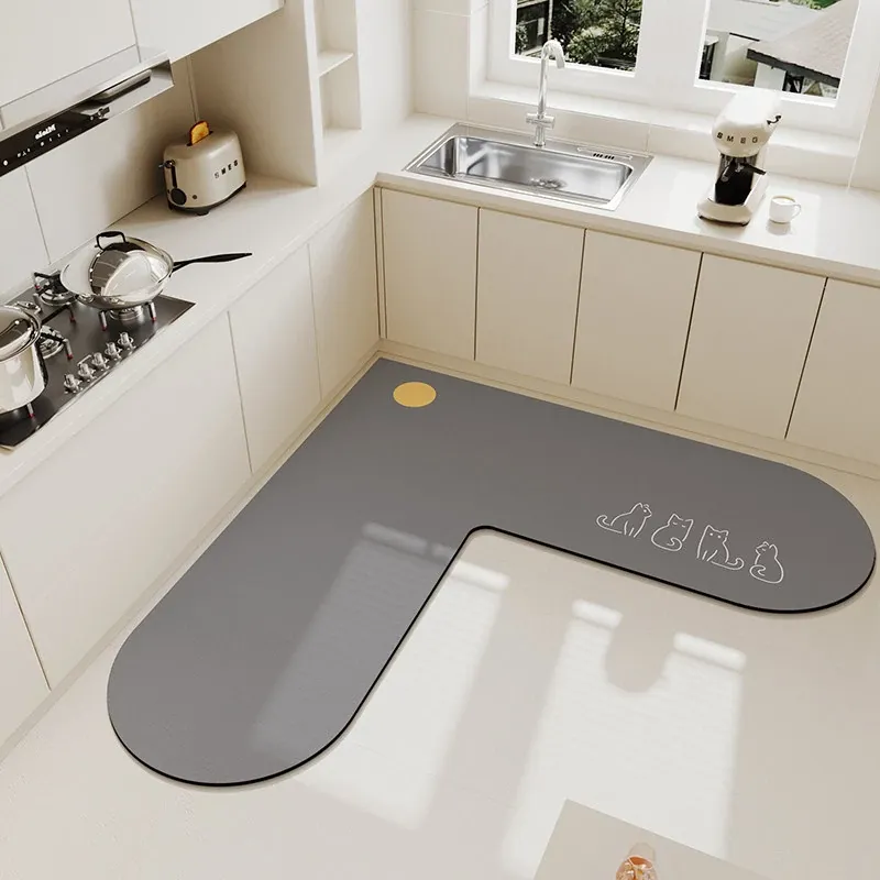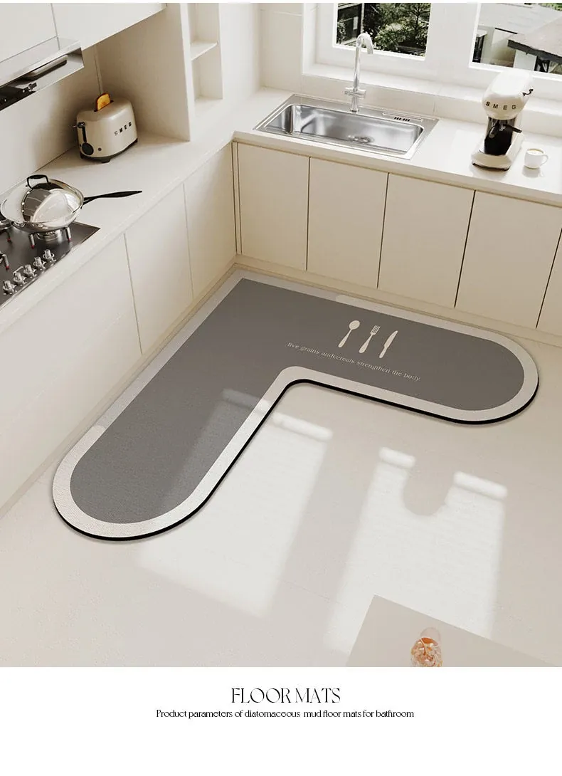 キッチンマット 家庭用L型シリカゲル 滑り止め・防油・吸水マット お手入れ簡単!バスルーム用速乾フットマット