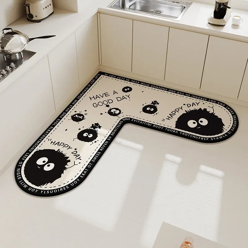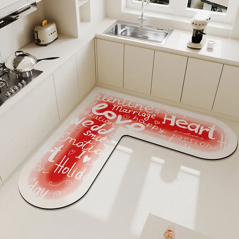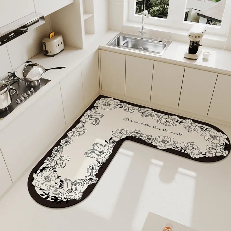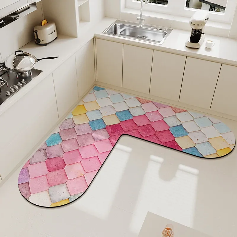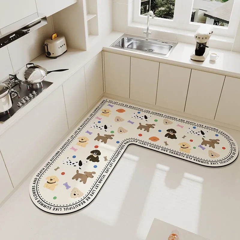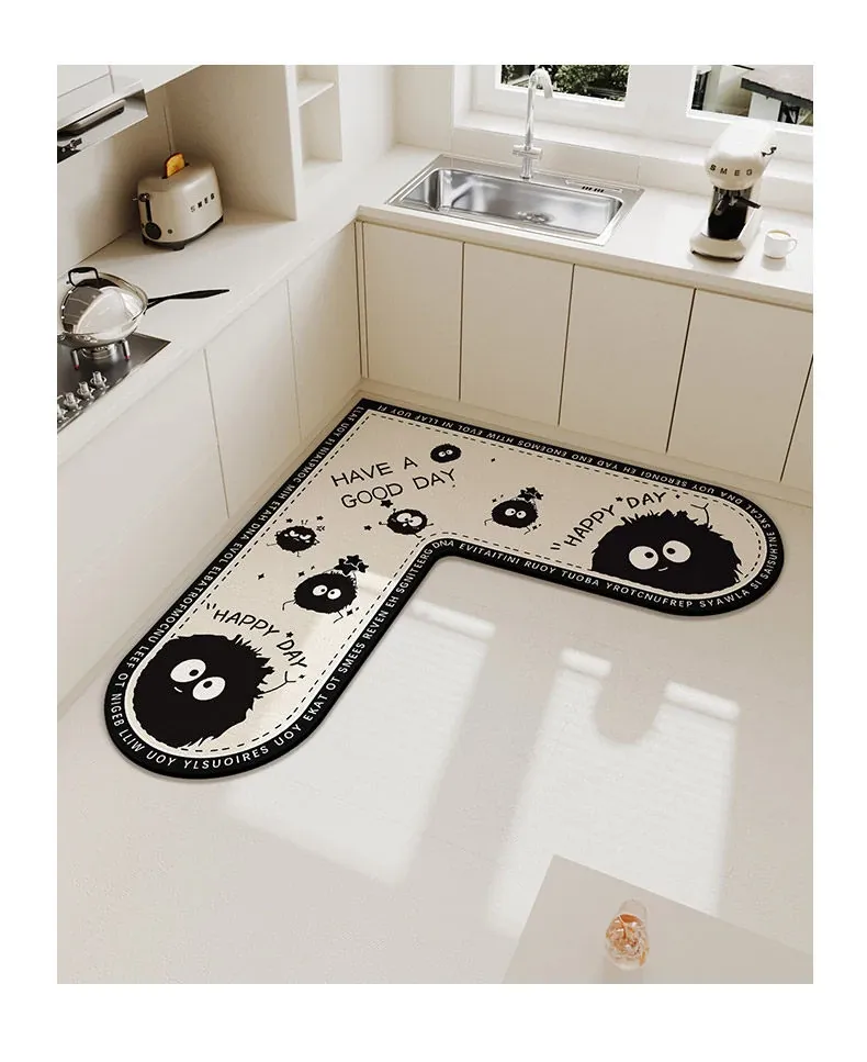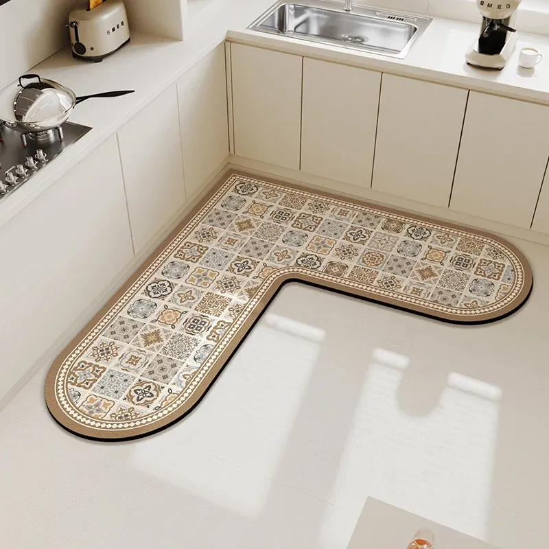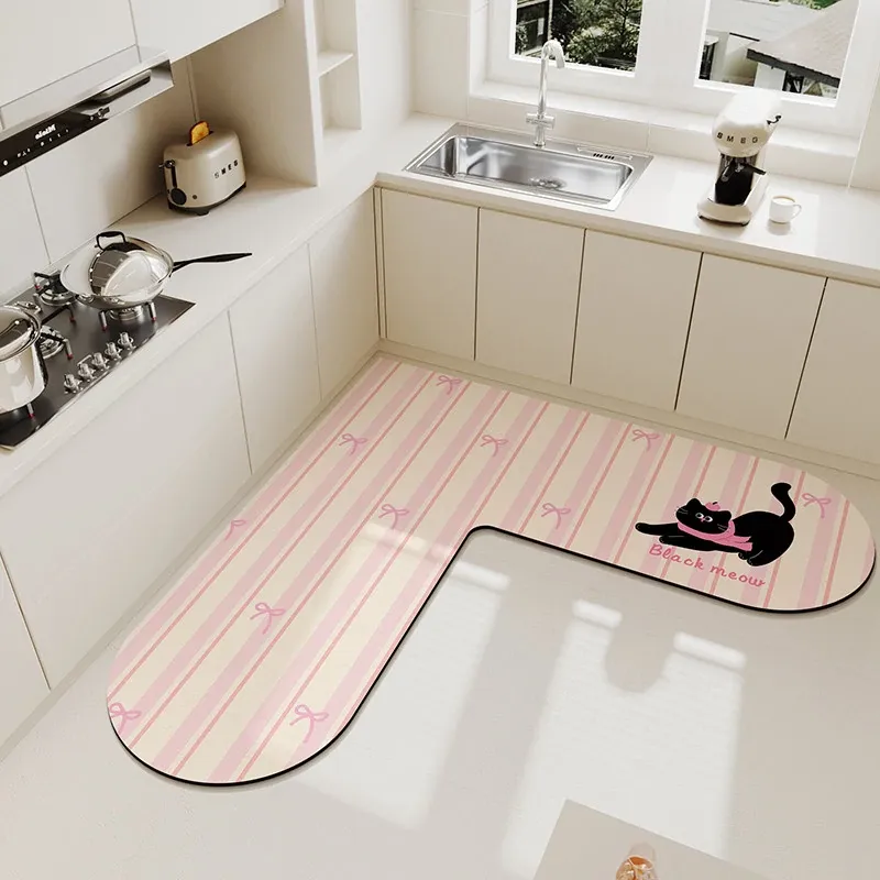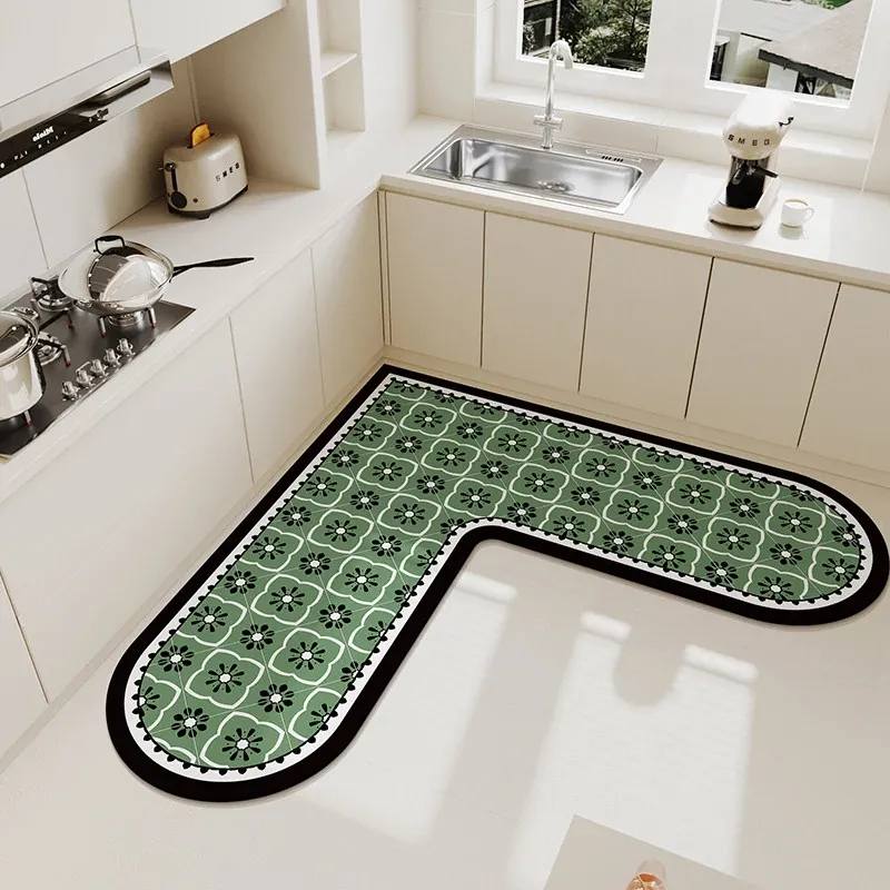 キッチンマット 家庭用L型シリカゲル 滑り止め・防油・吸水マット お手入れ簡単!バスルーム用速乾フットマット
