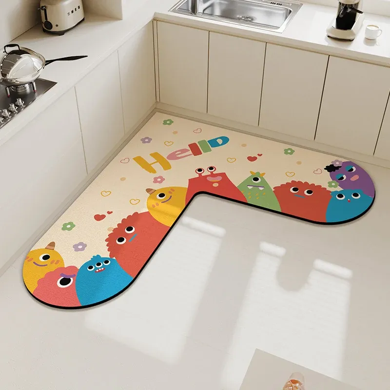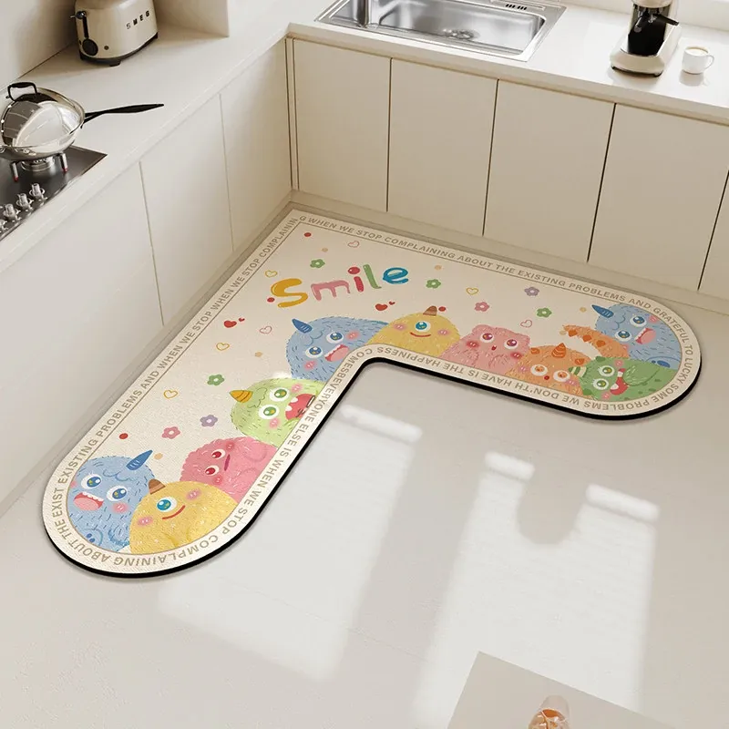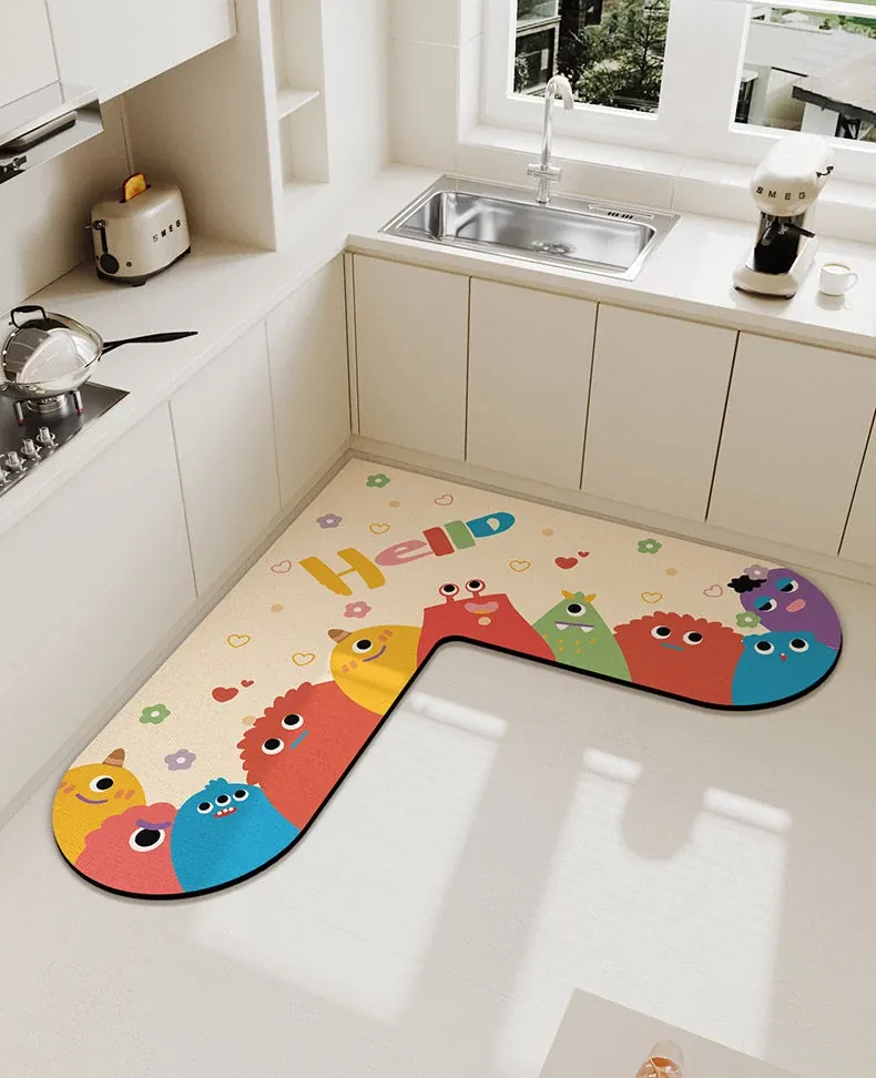 ふわふわ小モンスター珪藻土マット-角丸L型