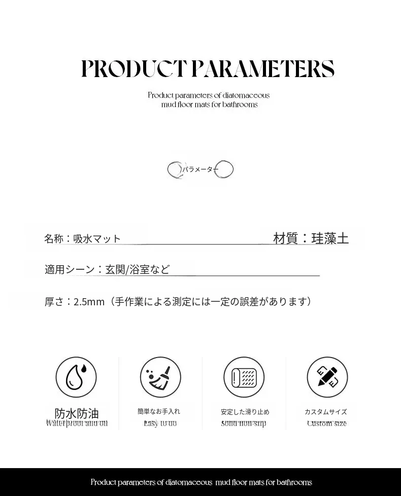 キュートな小炭球珪藻土マット-角丸L型
