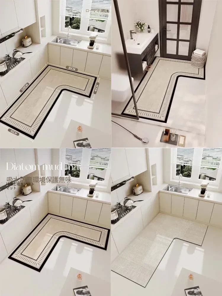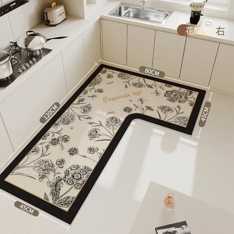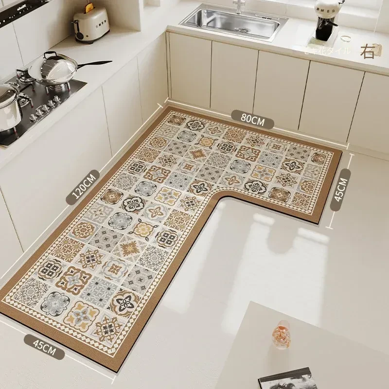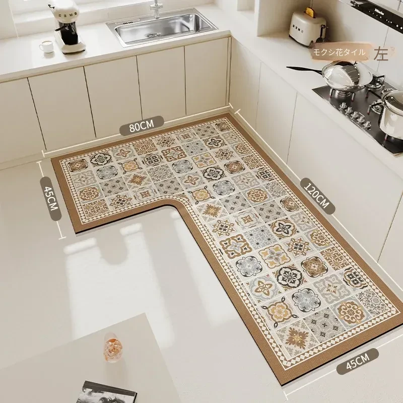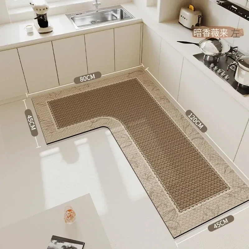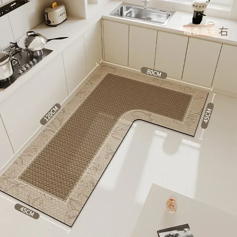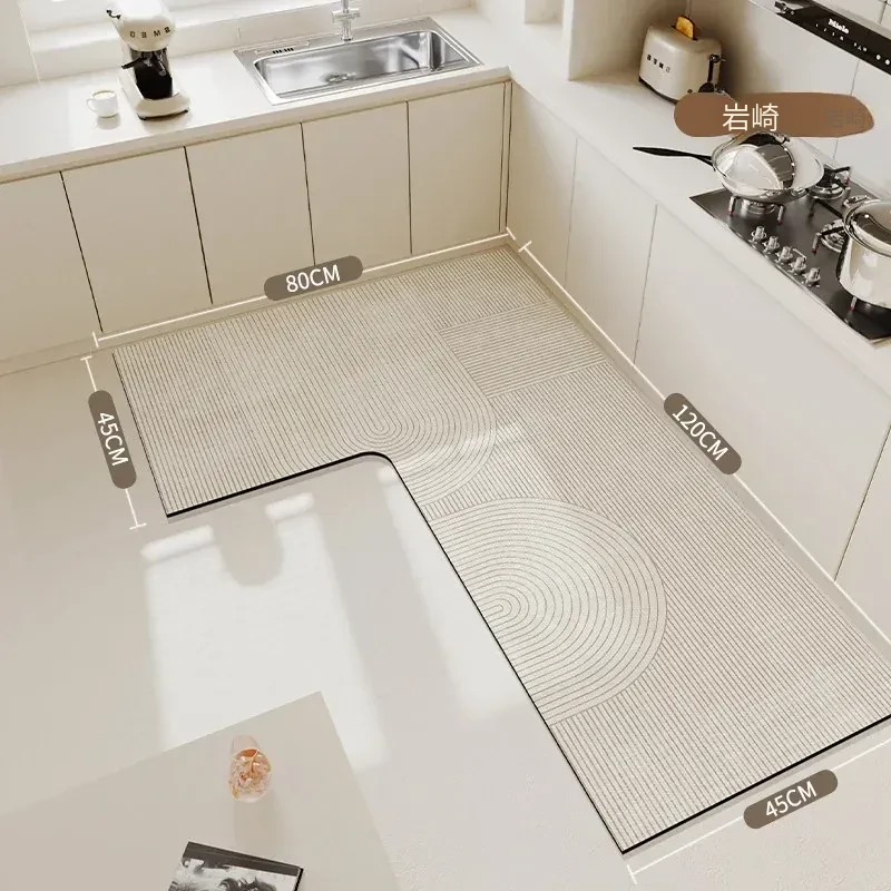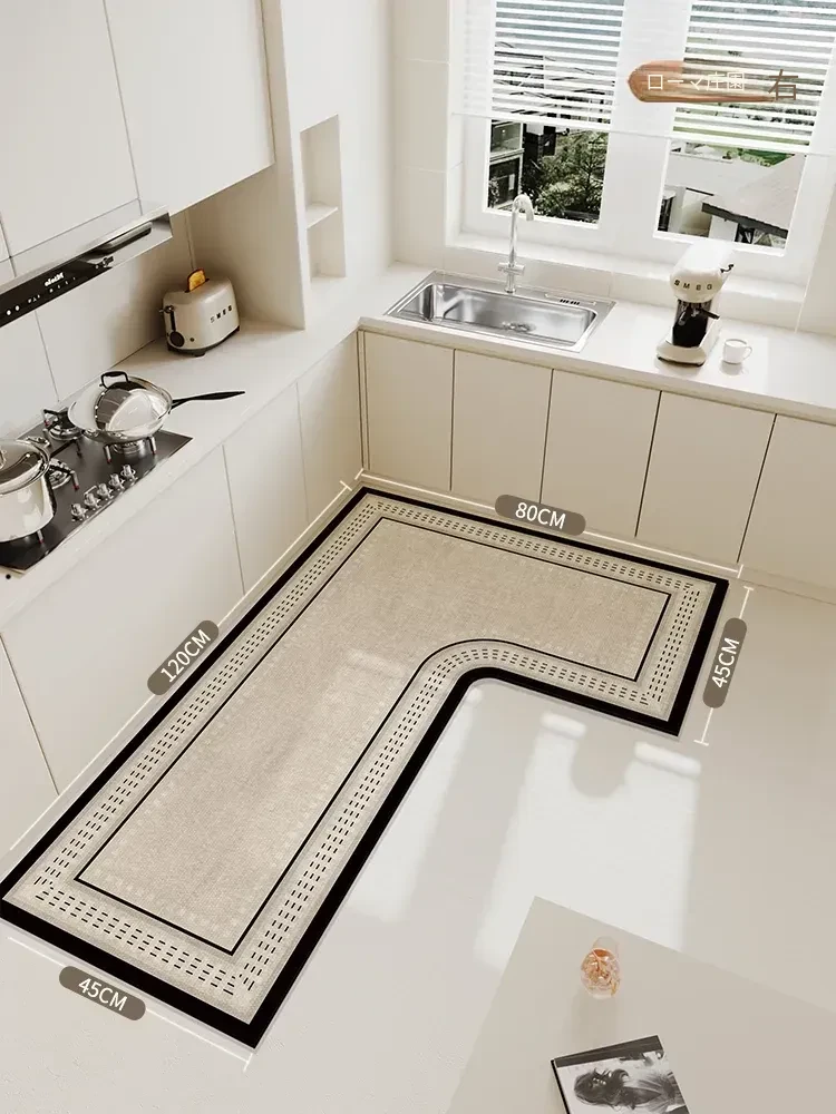 キッチン専用L型滑り止めシリカゲルマット!吸水性抜群で油汚れも防止。裁断可能な7字型コーナーで、あなたのキッチンにぴったりフィット!快適で安全なキッチンライフを実現します!