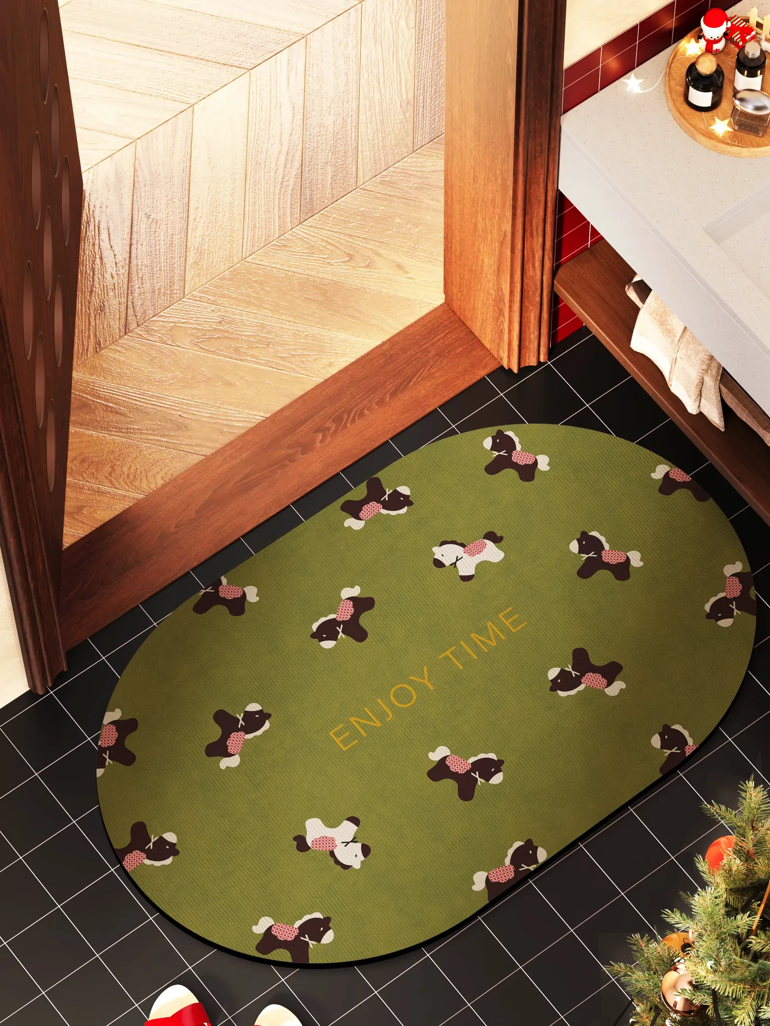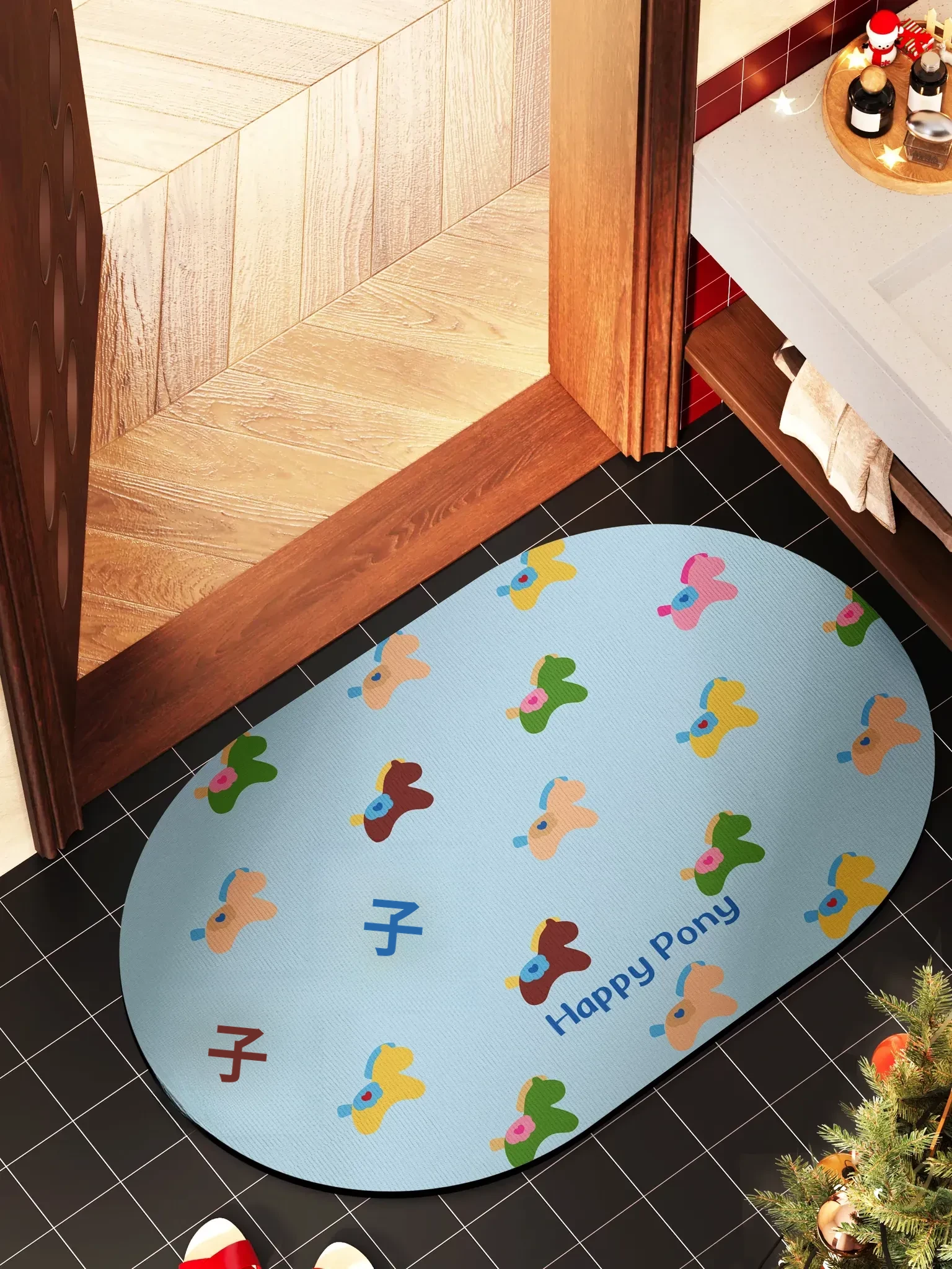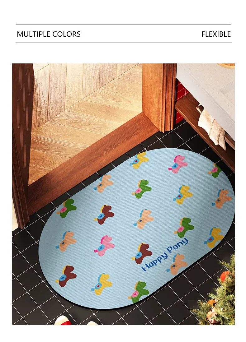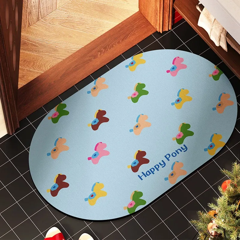 ソフトキャンディ小馬珪藻土バスマット-楕円形