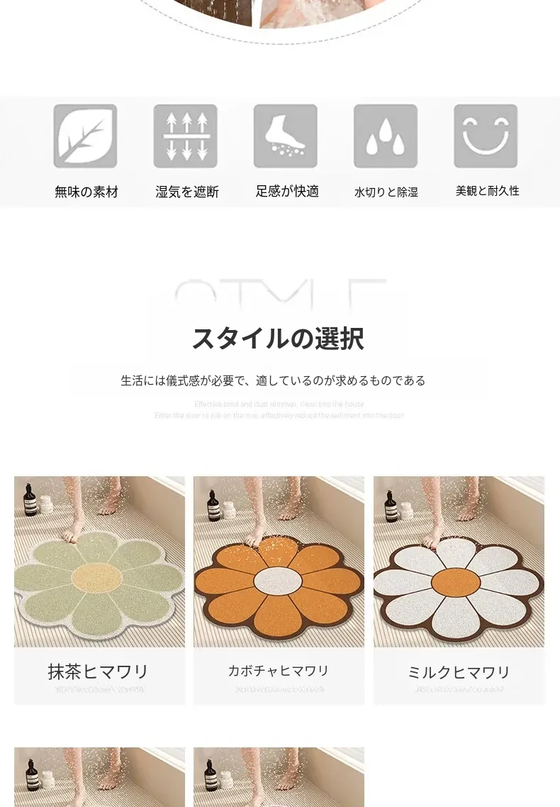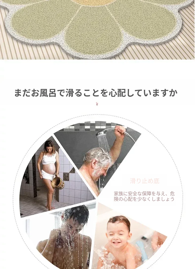 バスルーム用滑り止めマット - 洗面所・シャワールームに最適!PVC製で防滑性抜群、速乾性があり、汚れに強い。安心してバスタイムを楽しめる、快適な足元を実現するマットです。