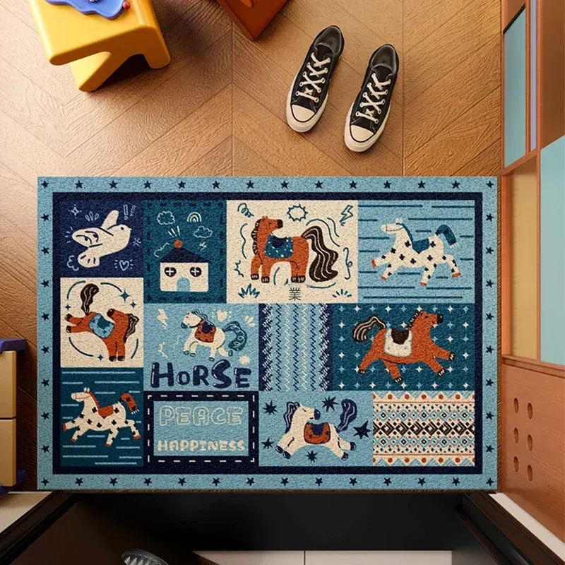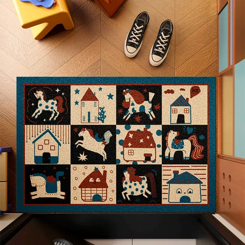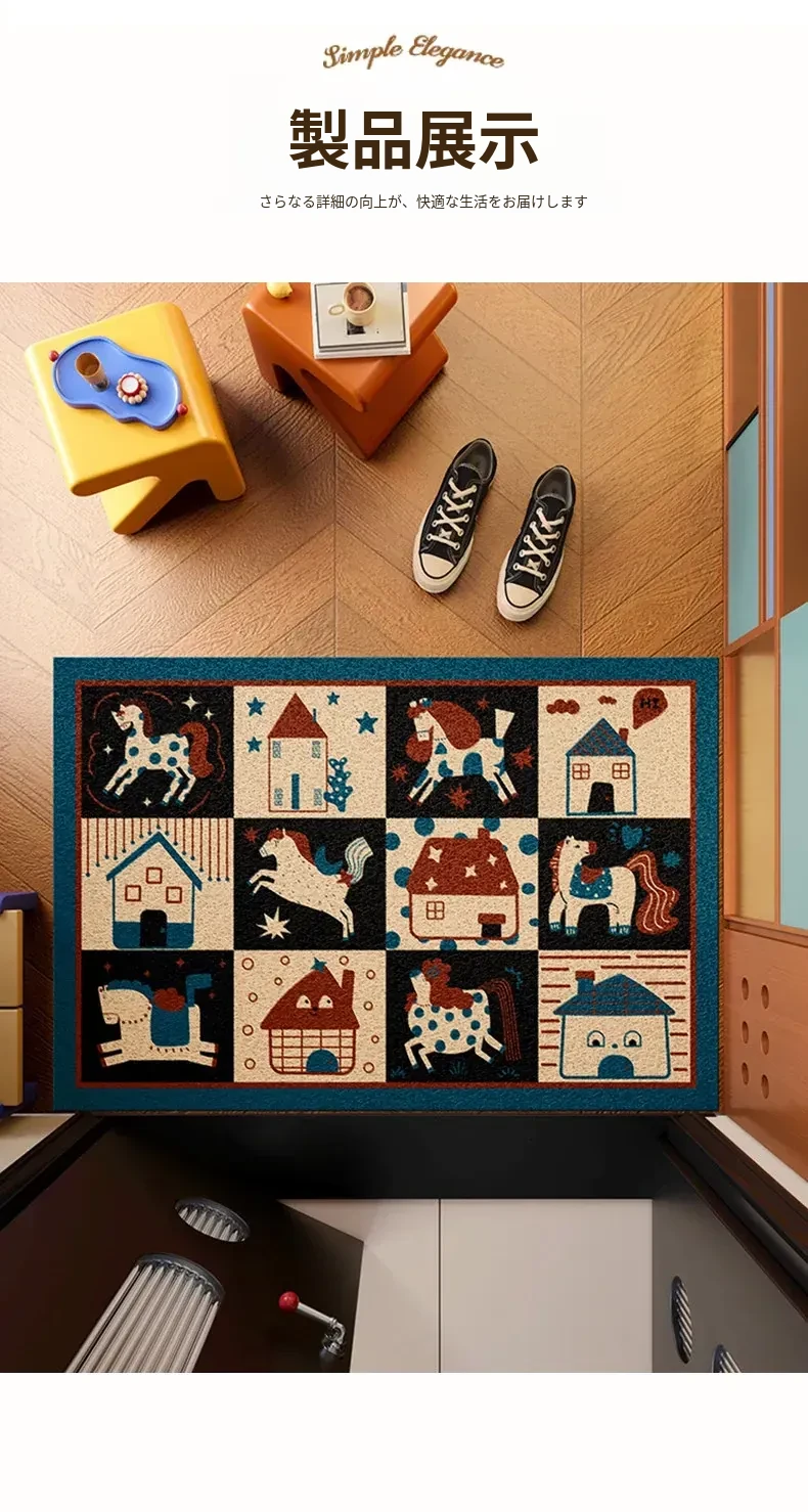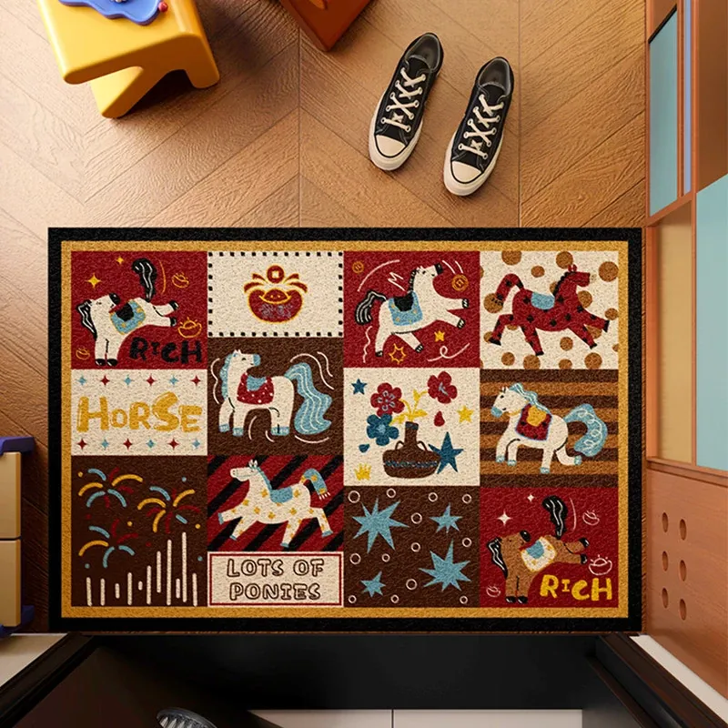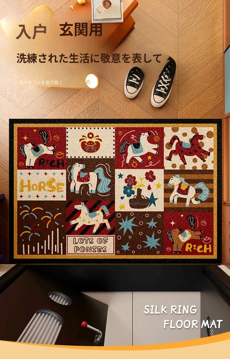 馬年の高級レトロシルクフロアマット - カスタマイズ可能な玄関用マットで新年を迎えよう!おしゃれで実用的な入室用マットで、あなたの家を華やかに演出します。