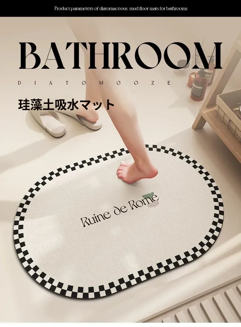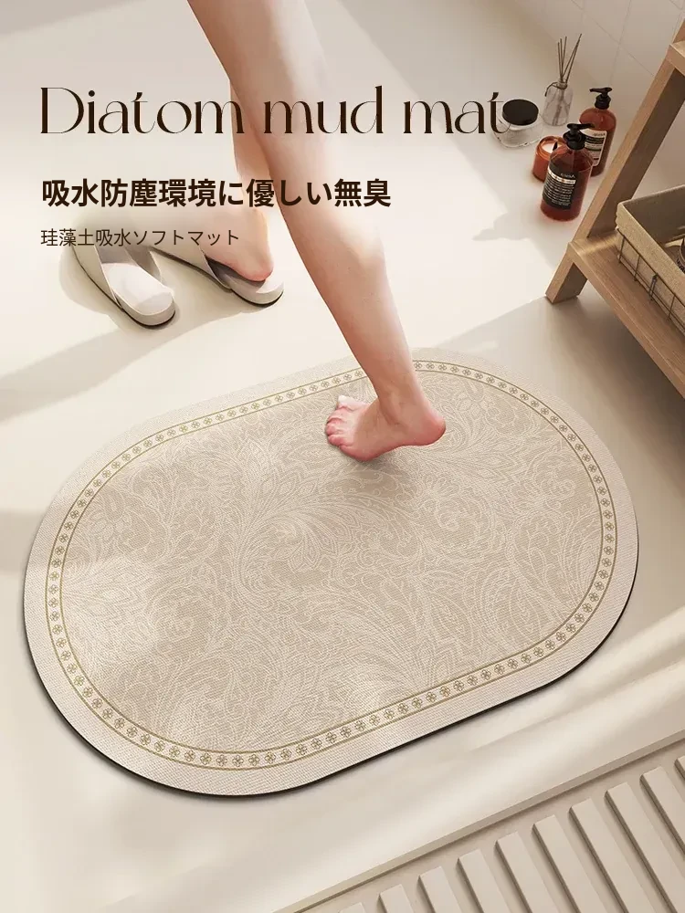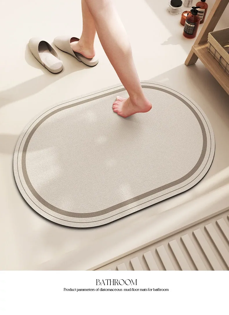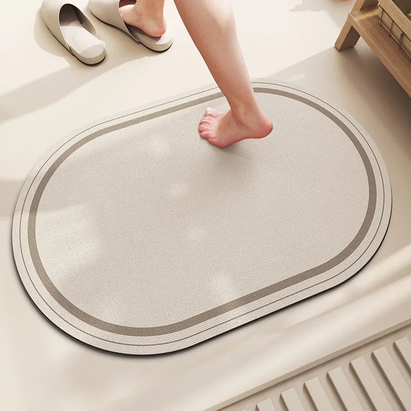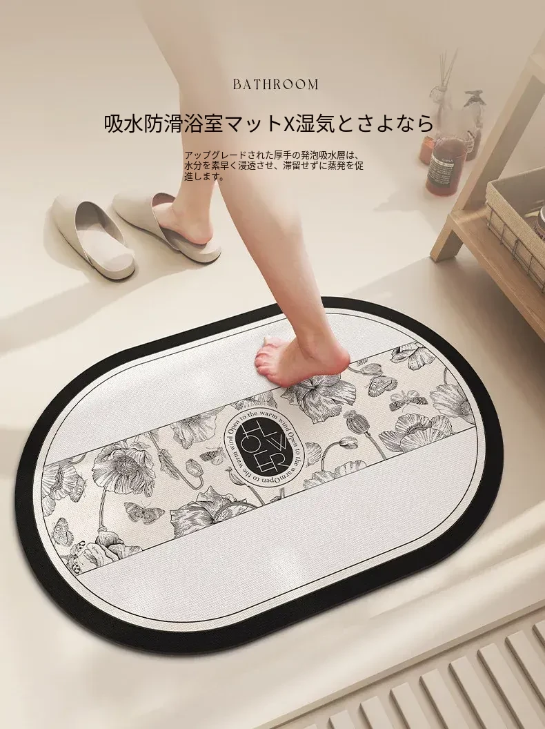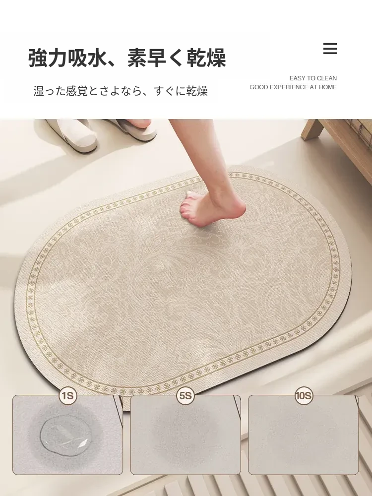バスルーム用滑り止めマット!デザイン性と機能性を兼ね備えたシリカゲル製の速乾マット。トイレの入り口に最適で、洗濯不要で手軽に使えます。水を素早く吸収し、清潔な空間を保ちます!