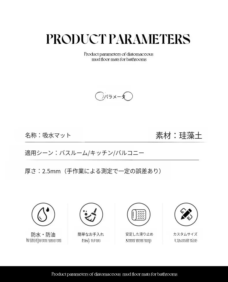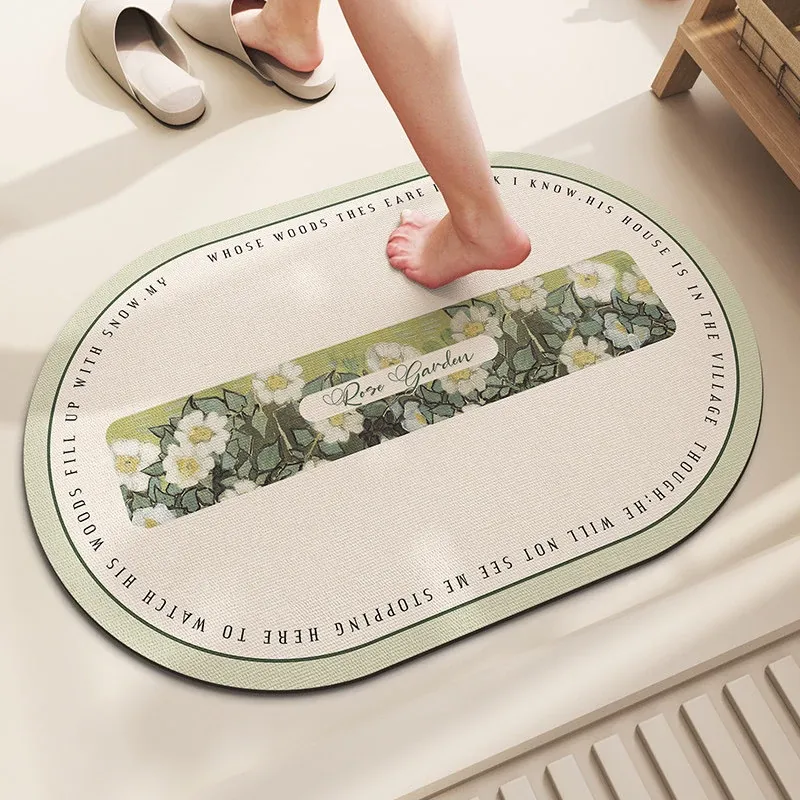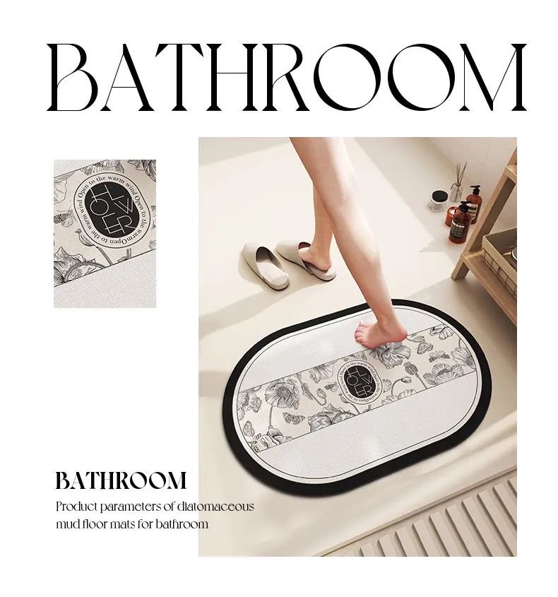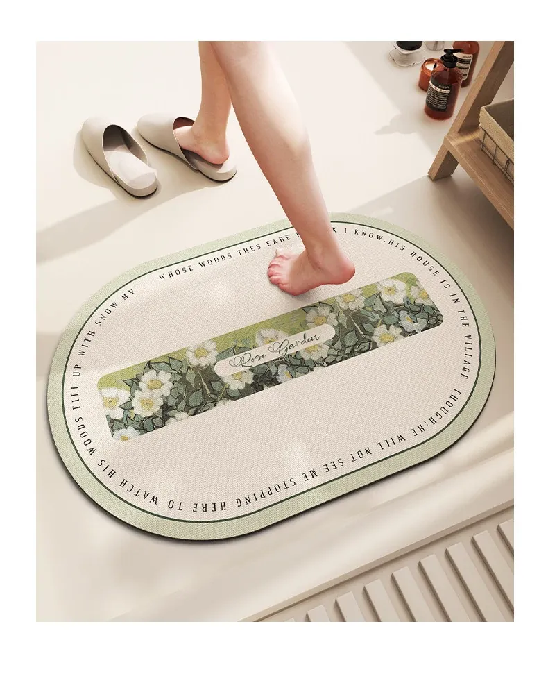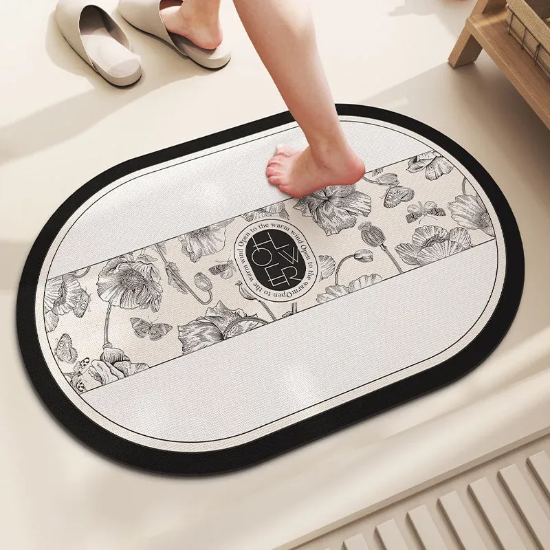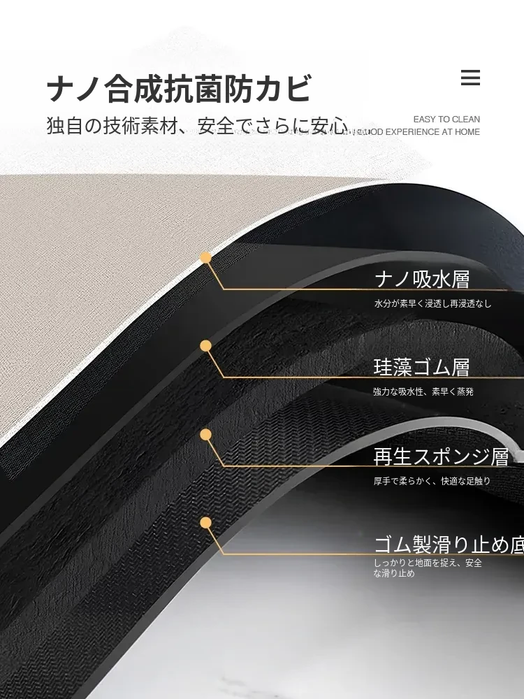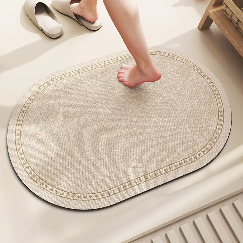 バスルーム用滑り止めマット!デザイン性と機能性を兼ね備えたシリカゲル製の速乾マット。トイレの入り口に最適で、洗濯不要で手軽に使えます。水を素早く吸収し、清潔な空間を保ちます!