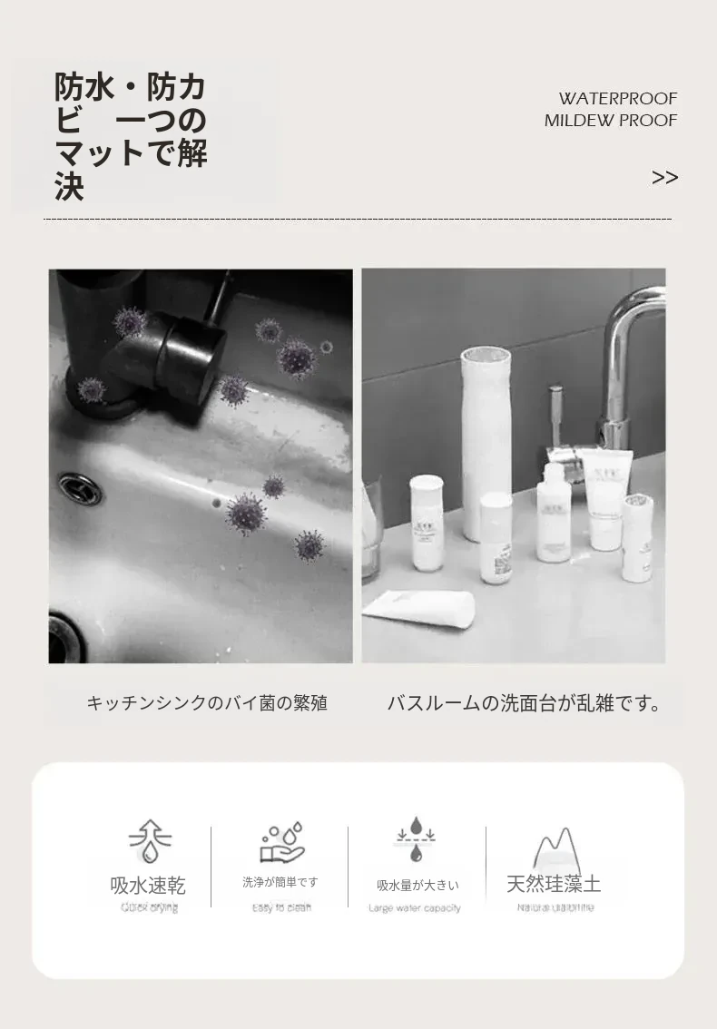 バスルーム用吸水マット|トイレの入り口に最適な滑り止めマット|速乾性で清潔感アップ|オシャレなデザインで玄関も彩るトイレマット