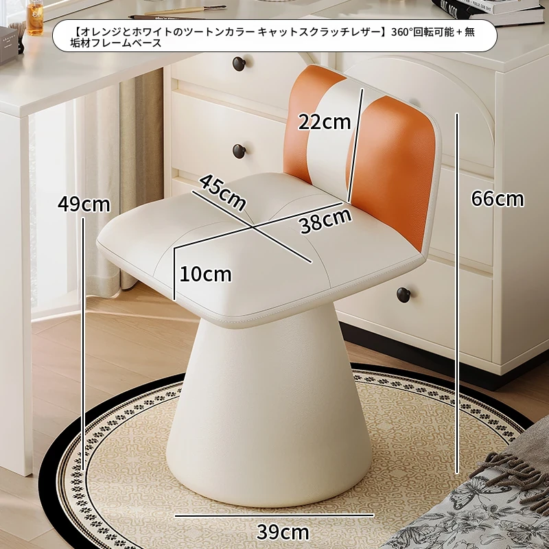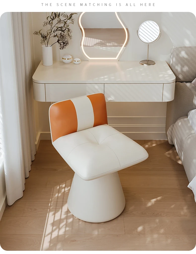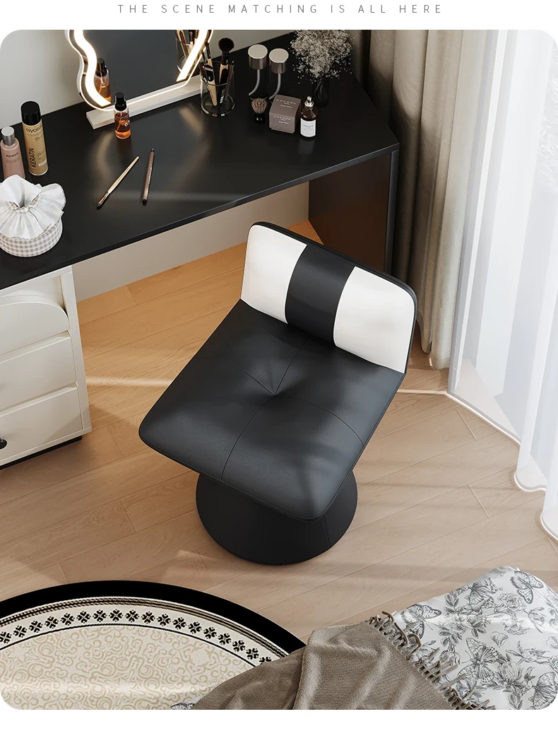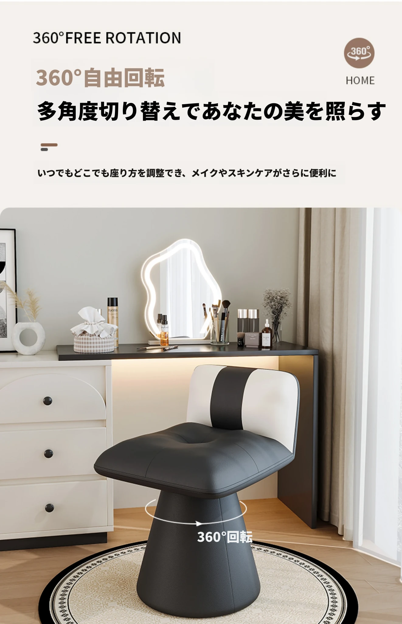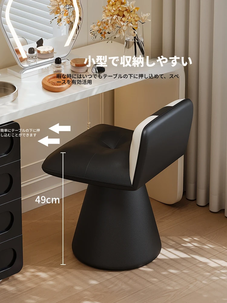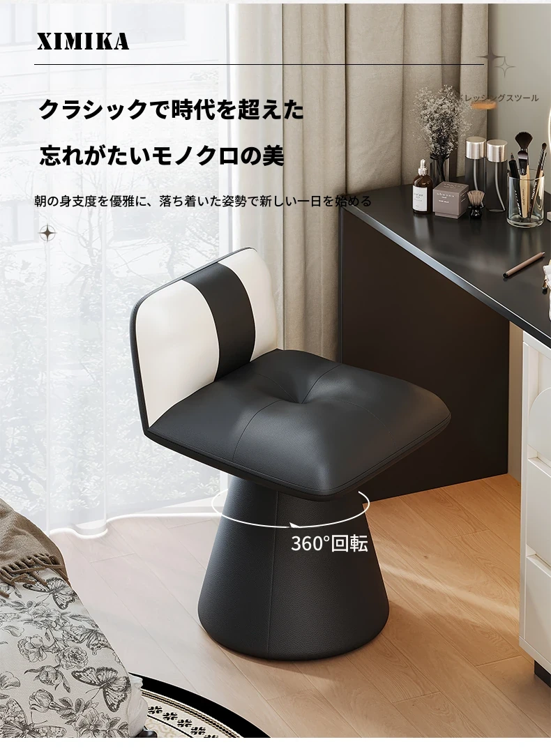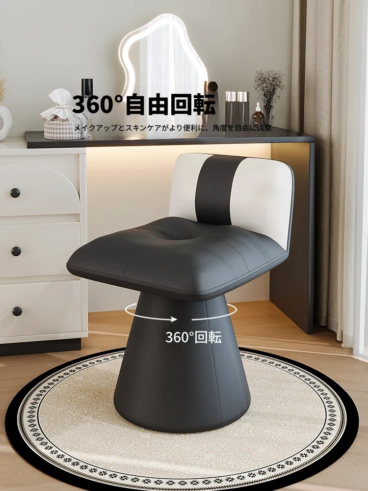 回転式メイクアップスツール - 女の子の寝室にぴったり!高級感漂う軽やかなデザインの2025年新作メイクチェア。自分だけの特別な時間を演出します!