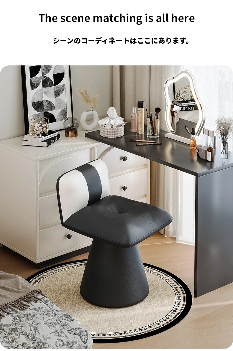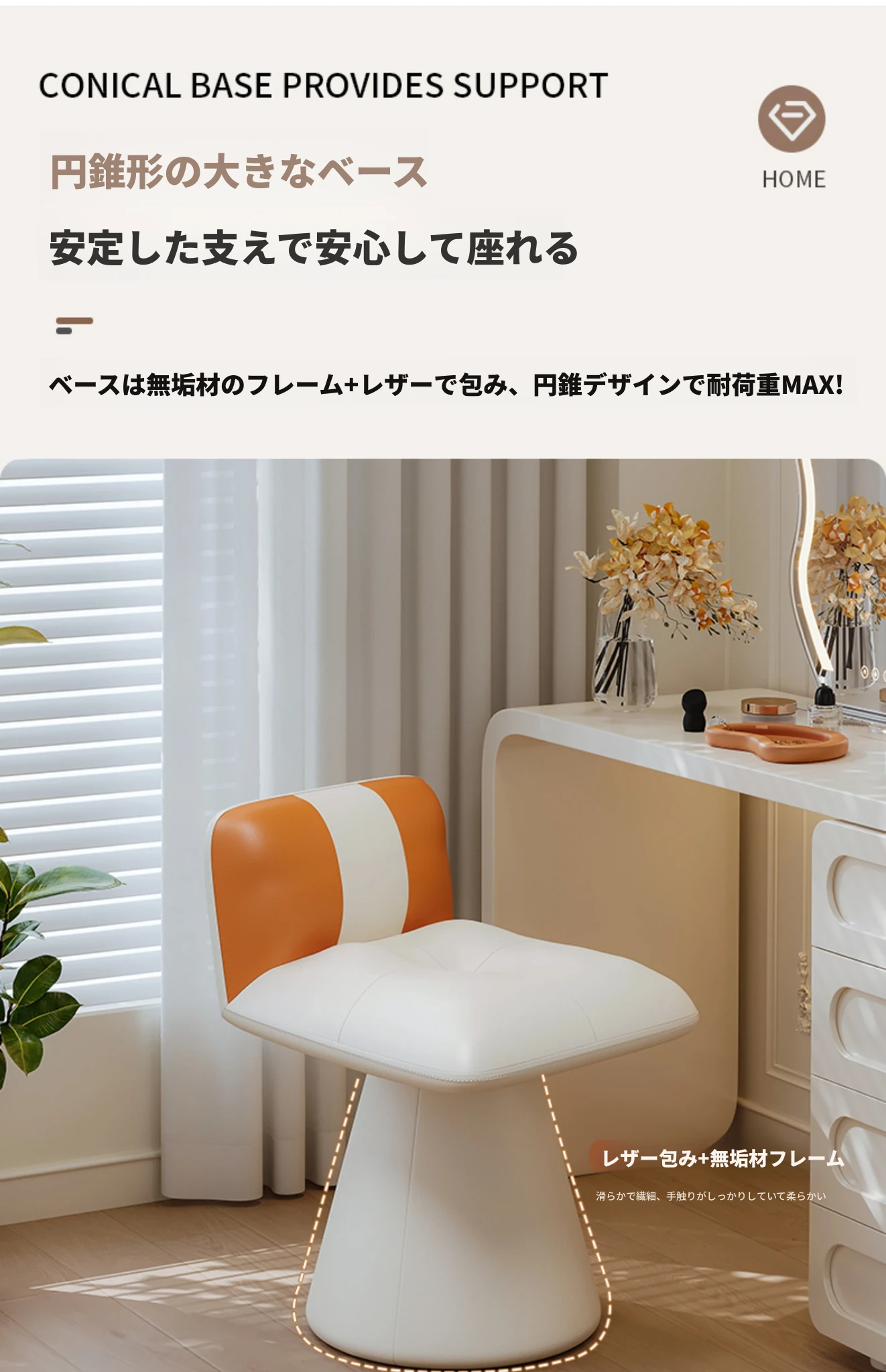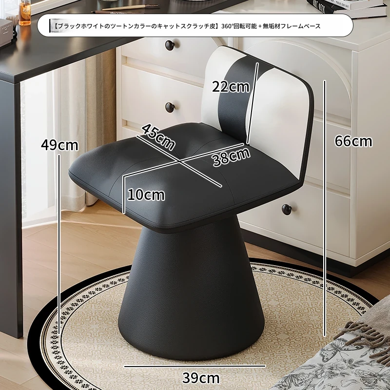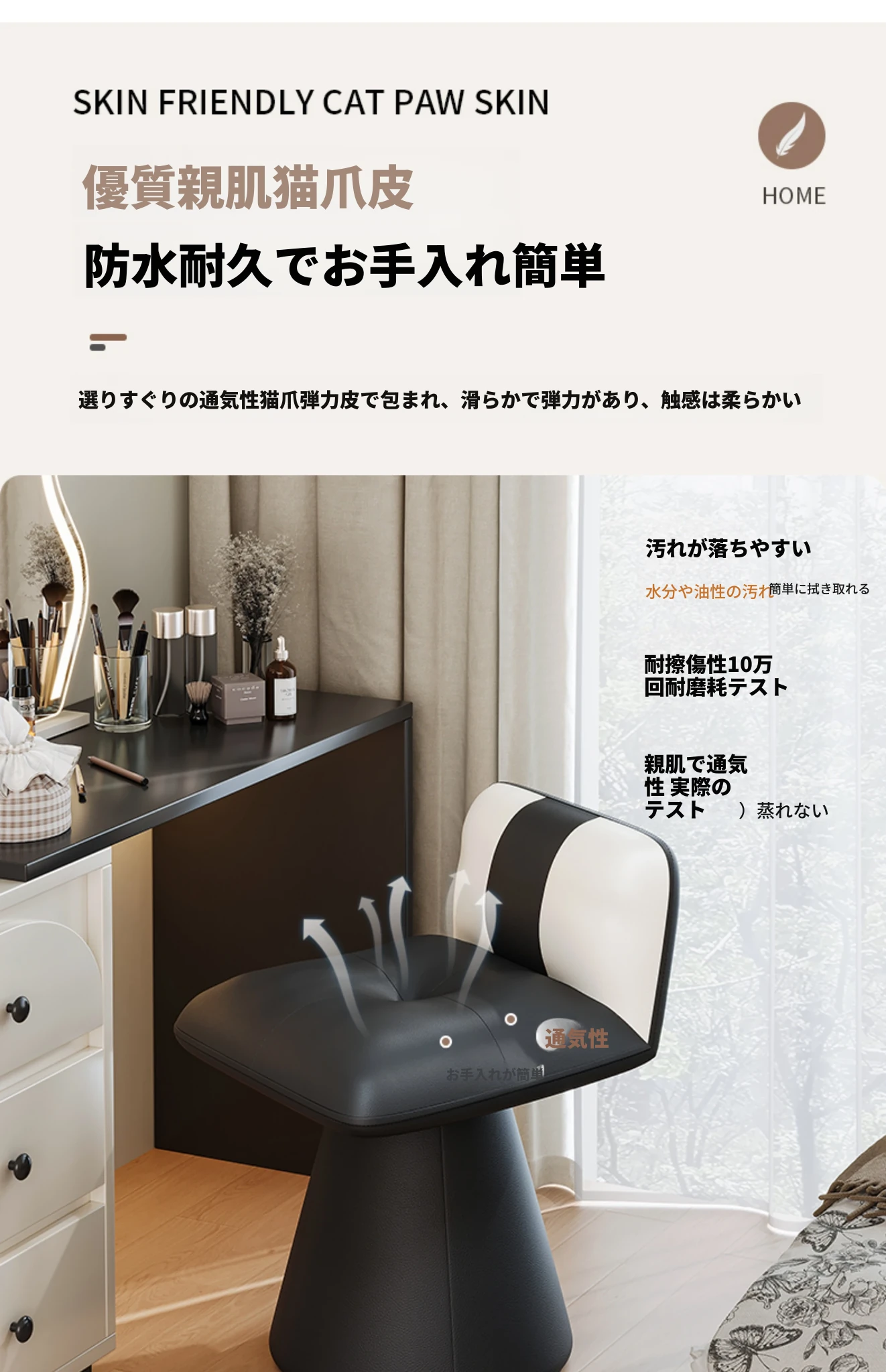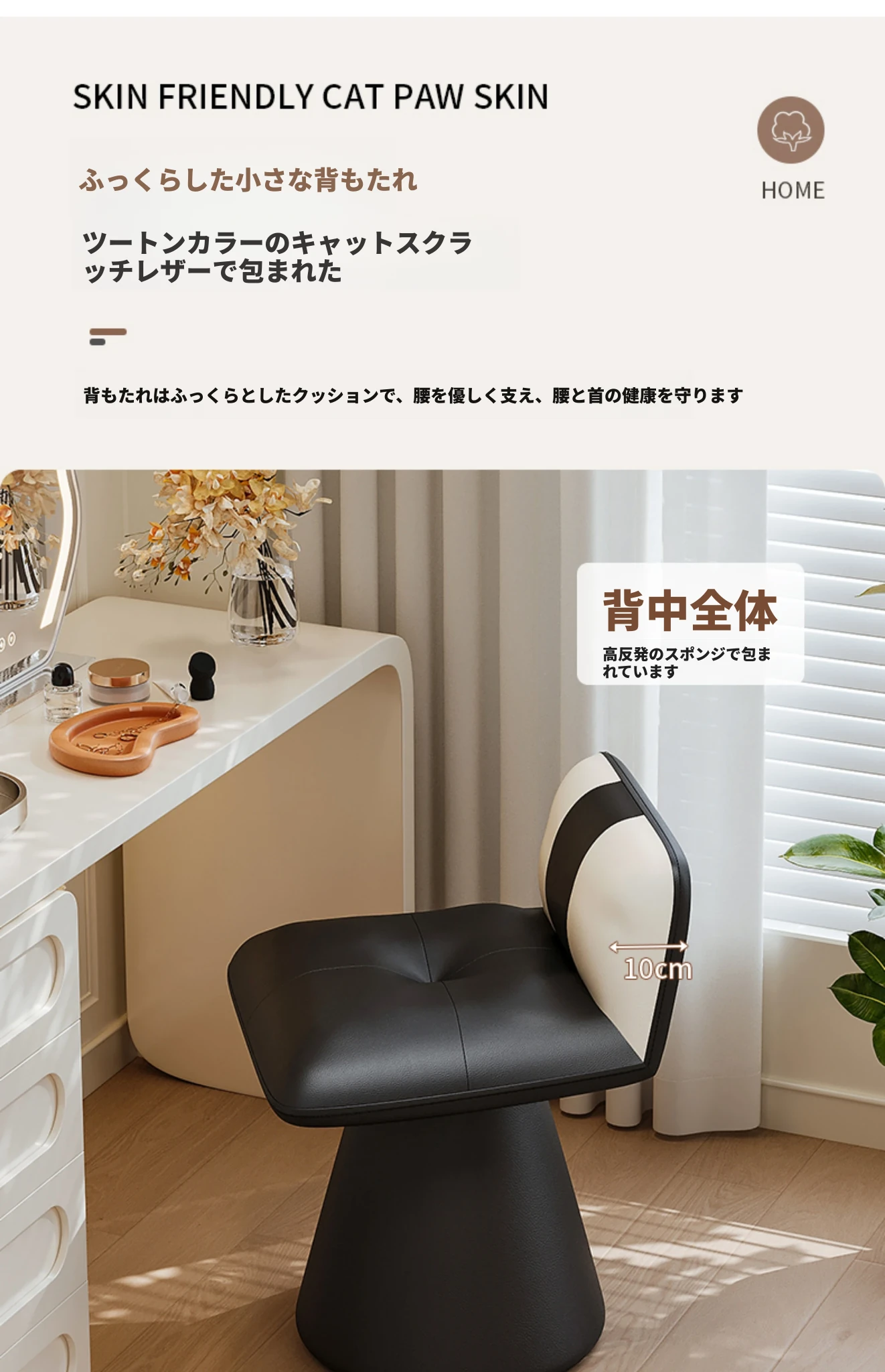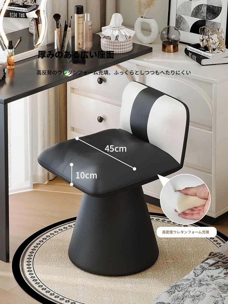 回転式メイクアップスツール - 女の子の寝室にぴったり!高級感漂う軽やかなデザインの2025年新作メイクチェア。自分だけの特別な時間を演出します!