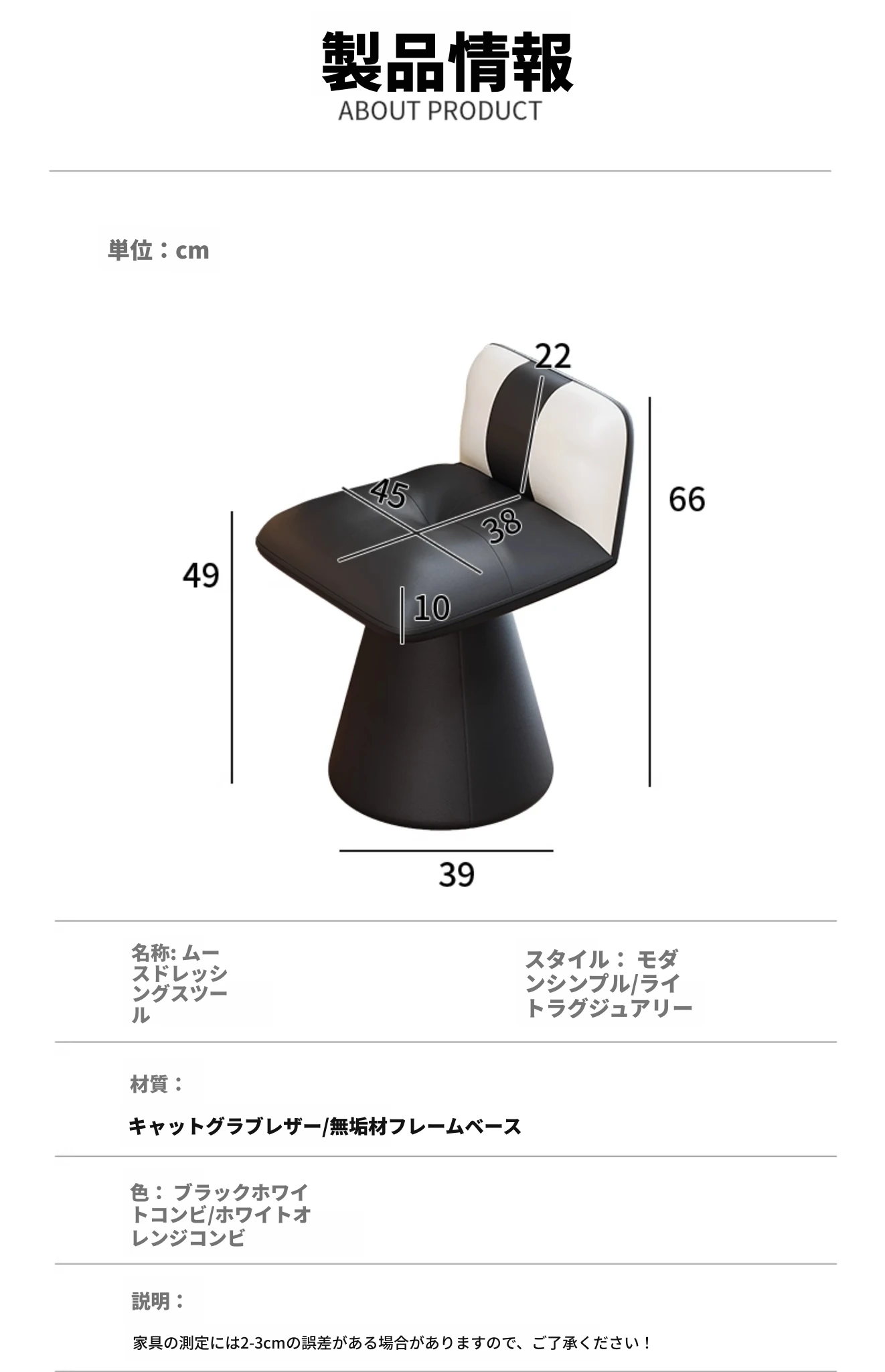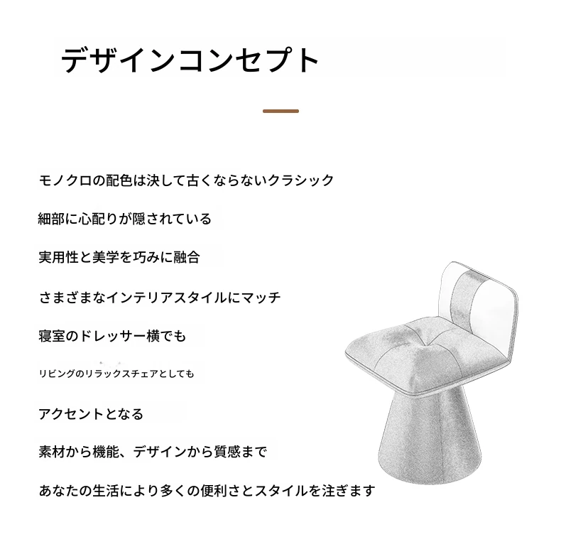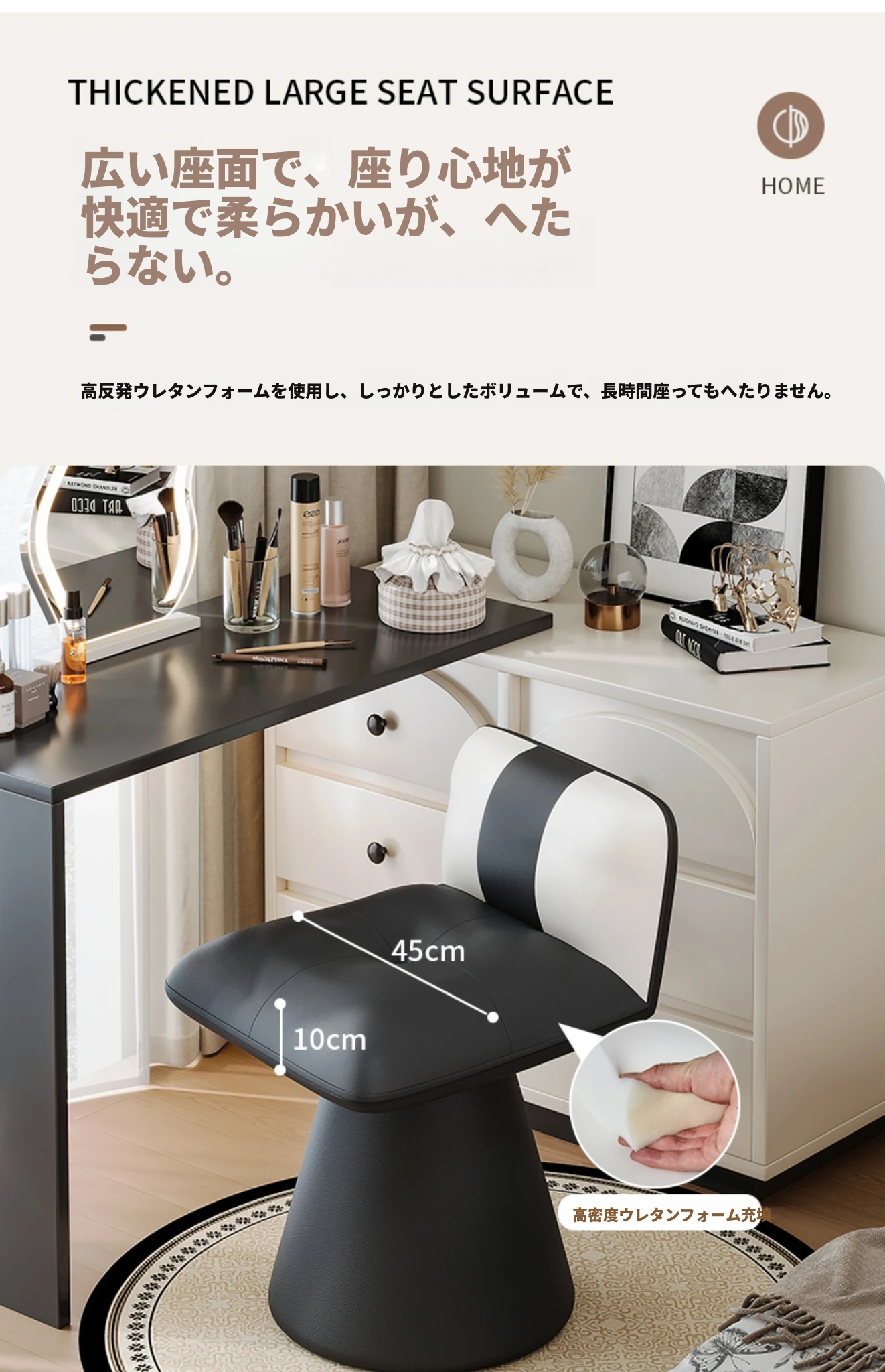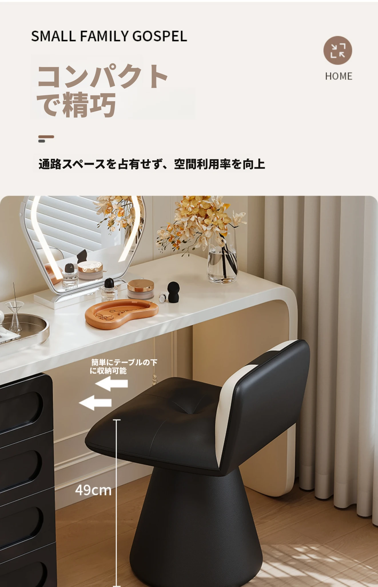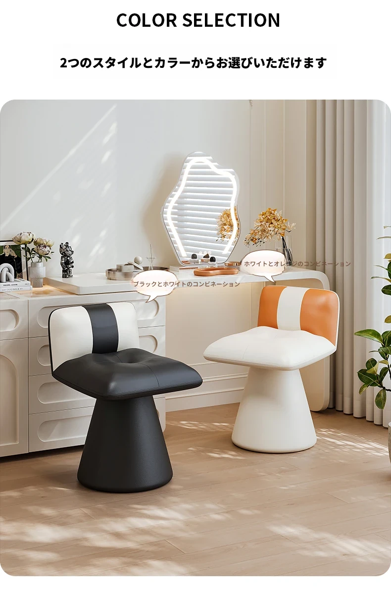 回転式メイクアップスツール - 女の子の寝室にぴったり!高級感漂う軽やかなデザインの2025年新作メイクチェア。自分だけの特別な時間を演出します!