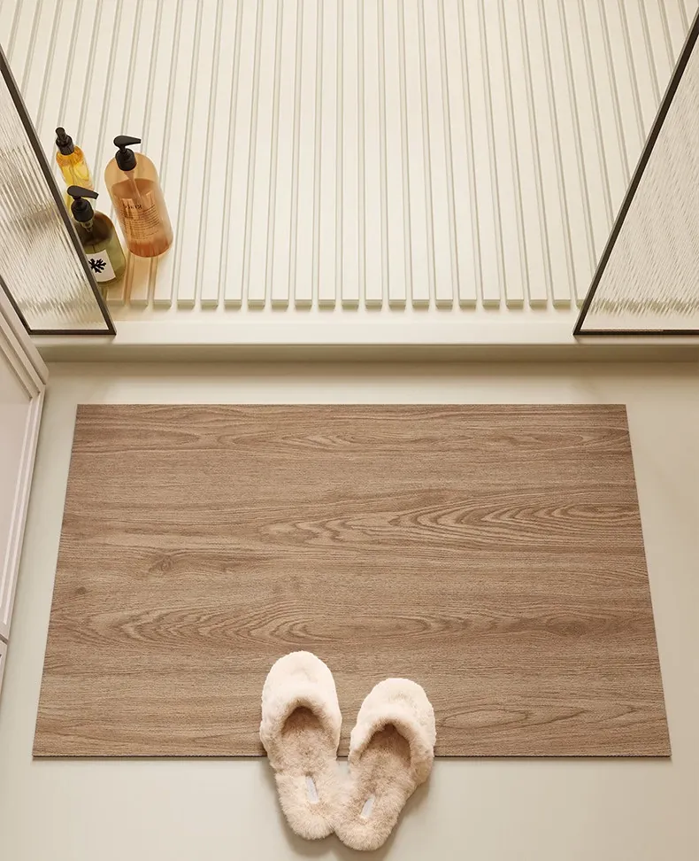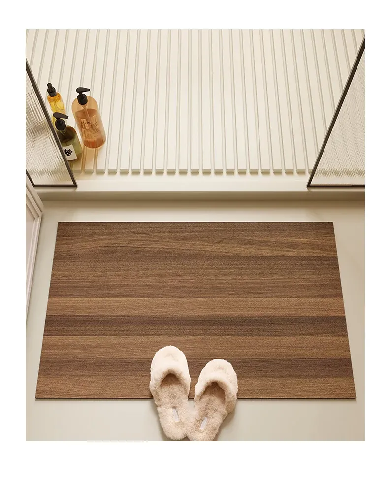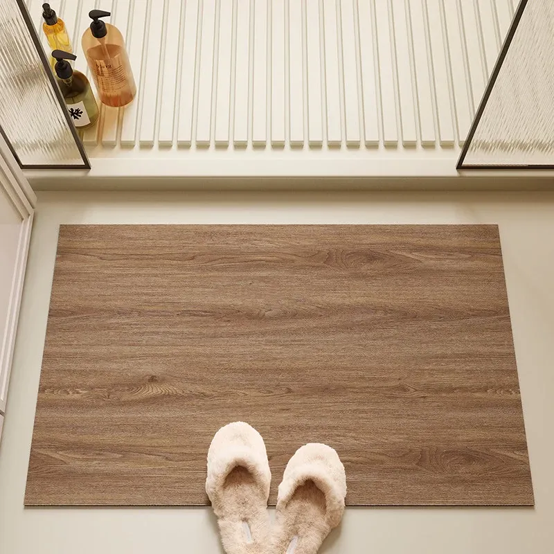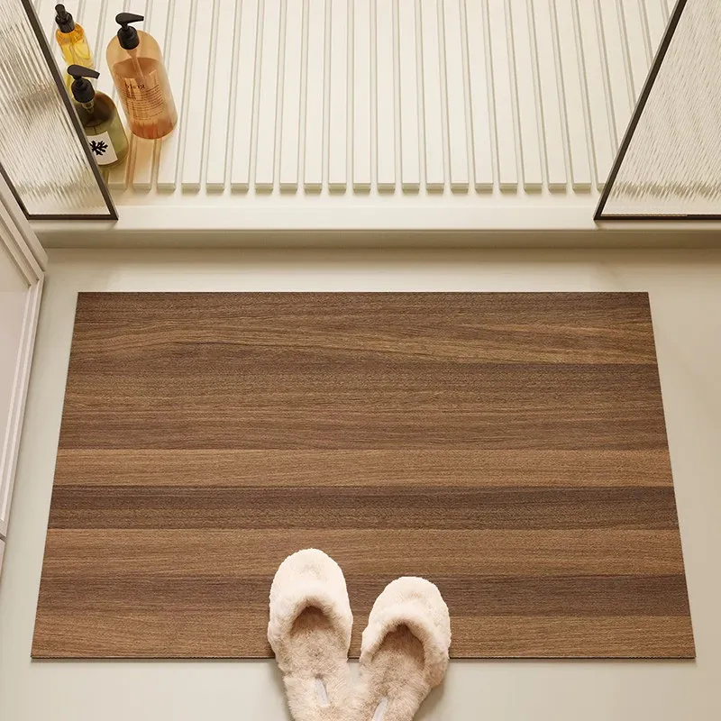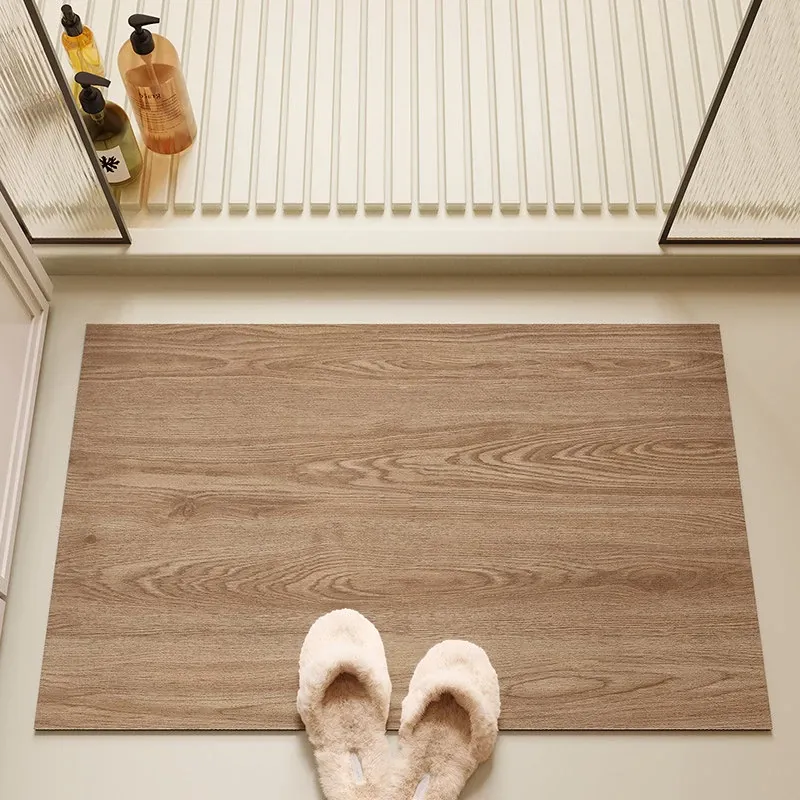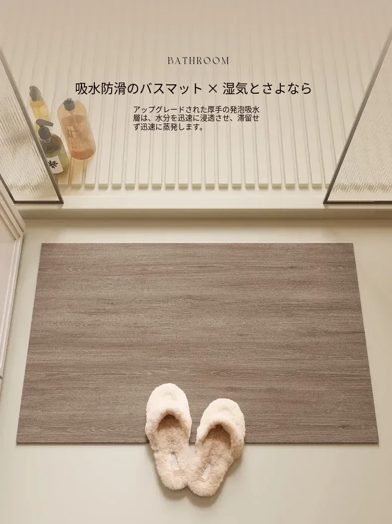 バスルーム用木目調マット|吸水性抜群&滑り止め付き|トイレや洗面所の玄関マットに最適|おしゃれで実用的な足元を演出!