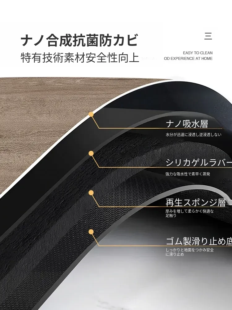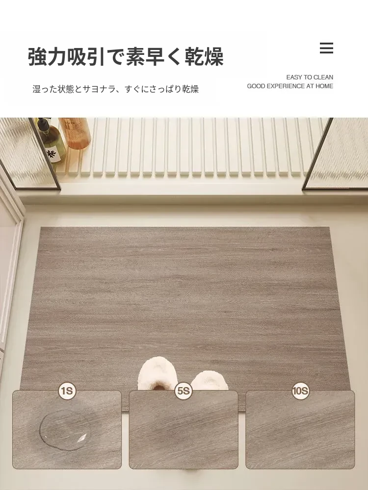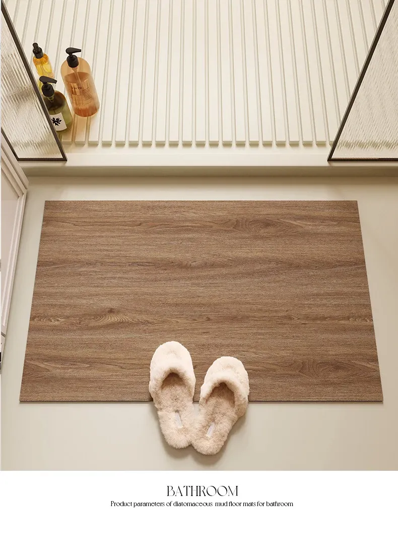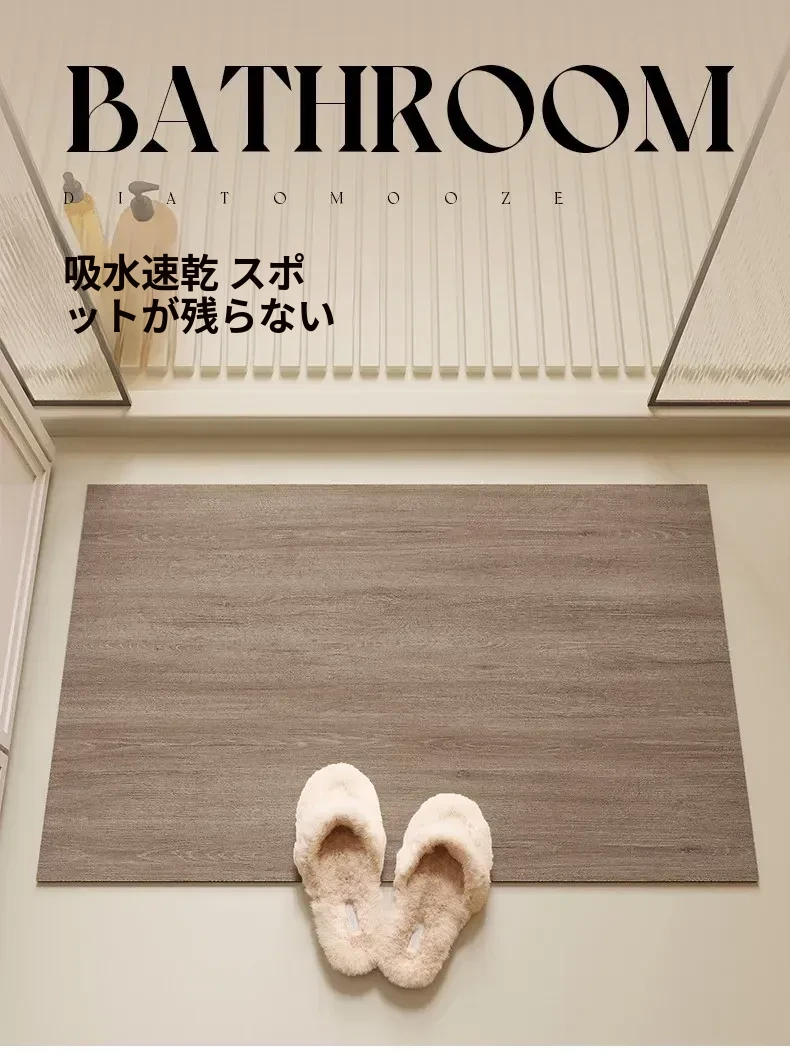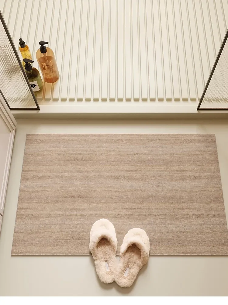 バスルーム用木目調マット|吸水性抜群&滑り止め付き|トイレや洗面所の玄関マットに最適|おしゃれで実用的な足元を演出!