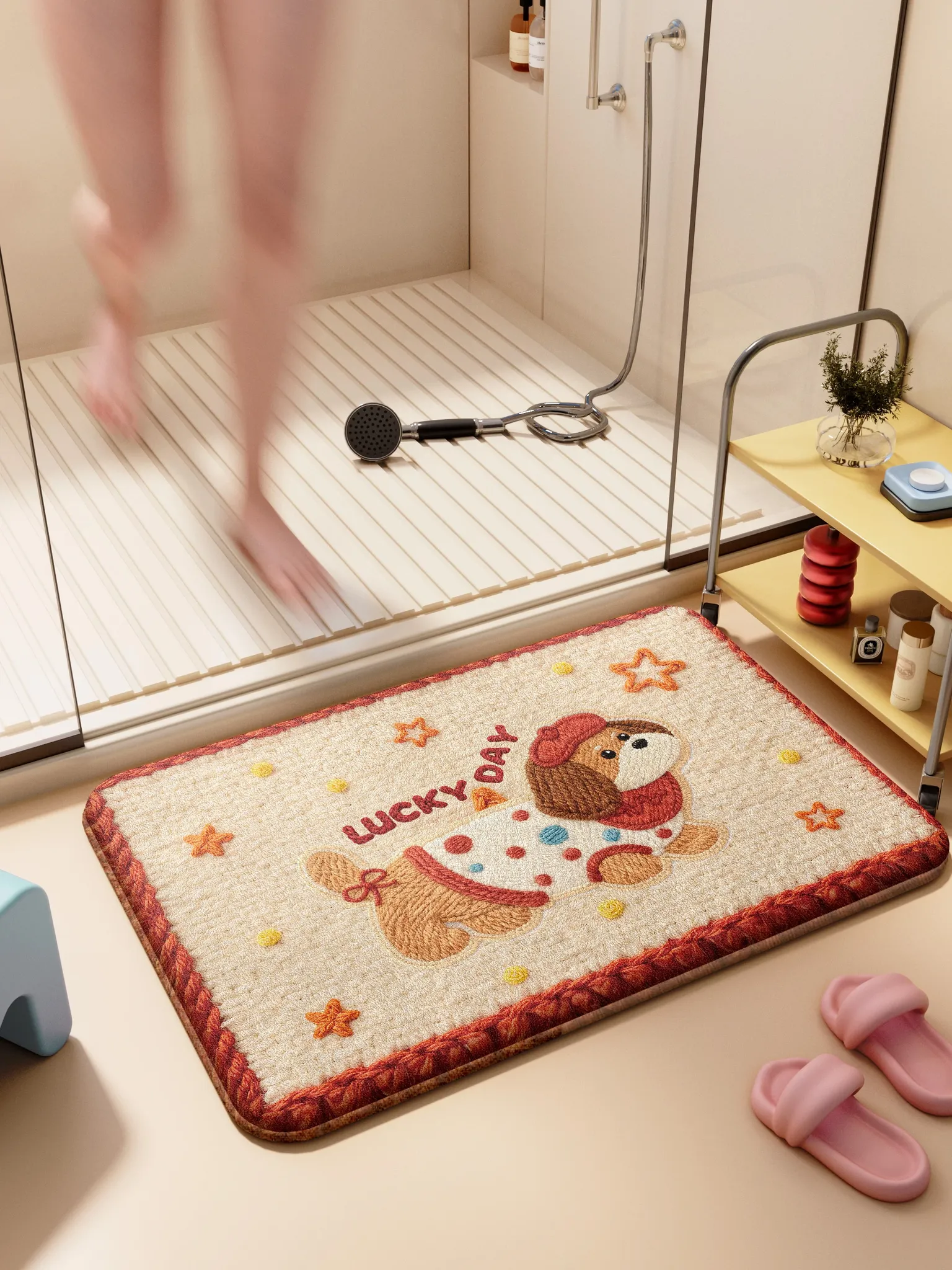 冬の特別仕様!吸水性抜群の厚手滑り止めバスマット - 脚元を優しく包む記憶フォーム使用、トイレやバスルームに最適な衛生的なドアマット。快適さと安全性を兼ね備えた、おしゃれな足元のアクセント!