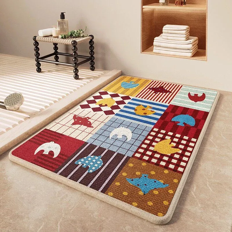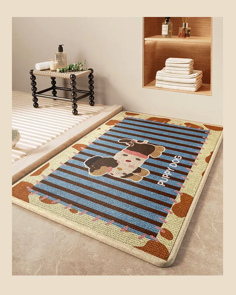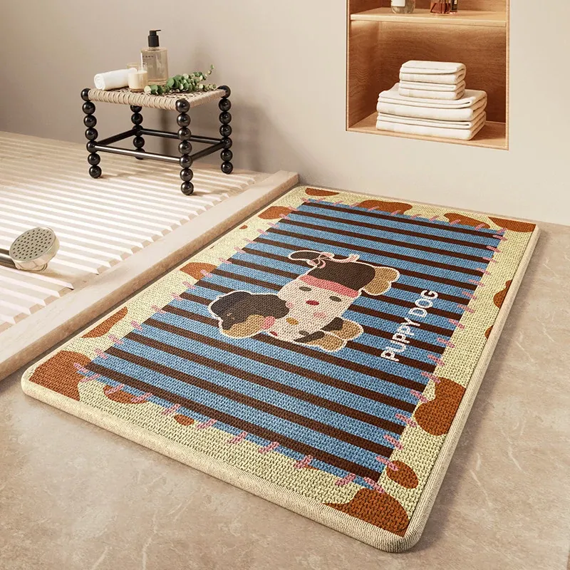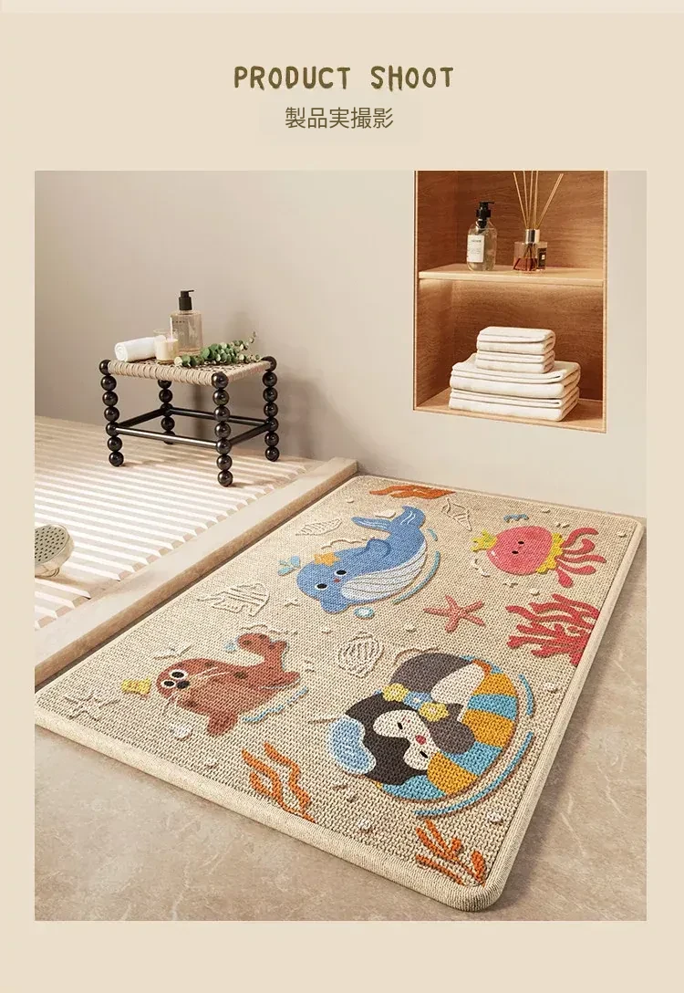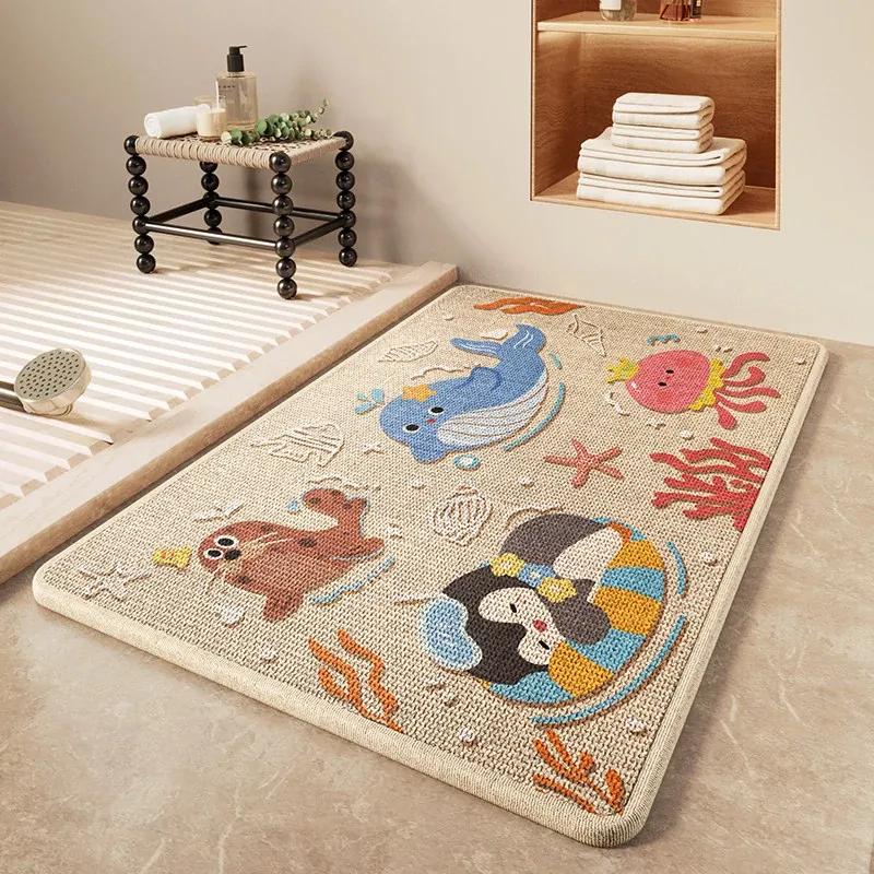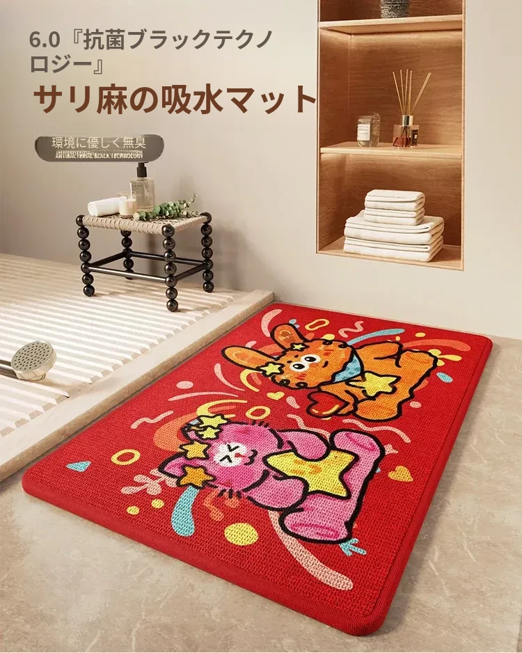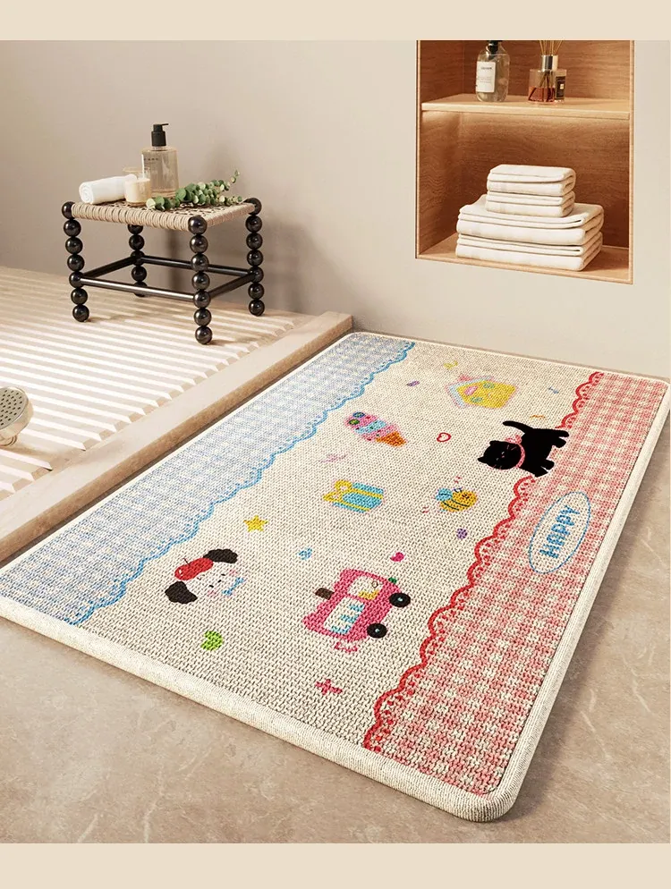 冬のバスルームに最適!吸水性抜群の厚手リネン編み滑り止めマット - トイレの入口にぴったりな暖かい足元を実現!