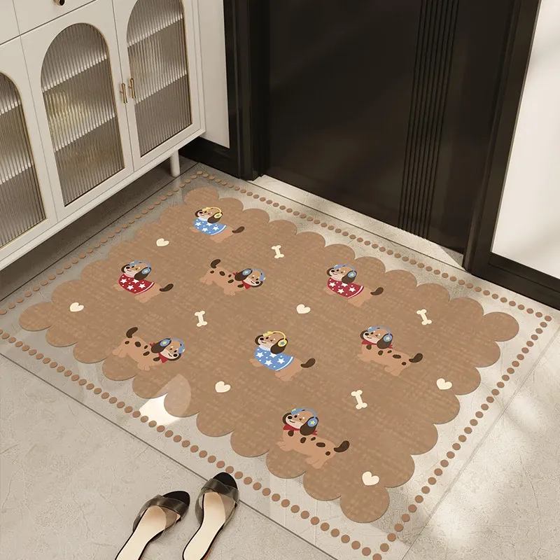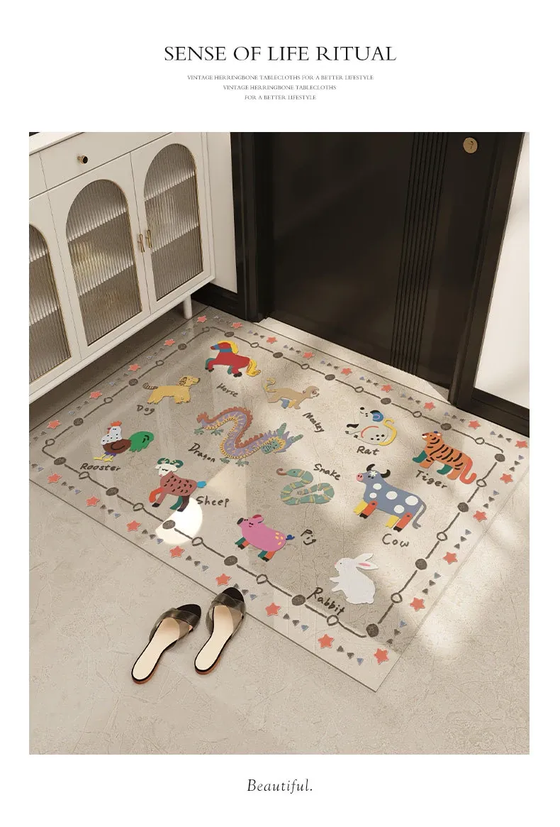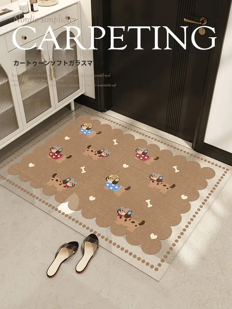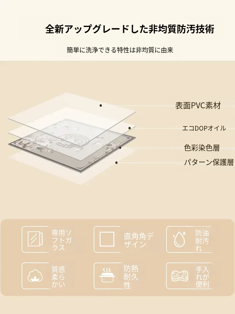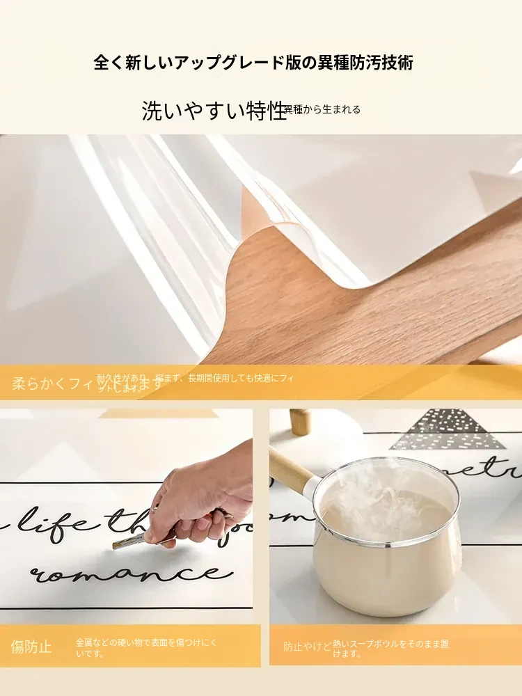 超薄透明ソフトガラスマット - PVC製で汚れに強く、洗浄不要!可愛いデザインの玄関マットで、おしゃれなエントランスを演出!