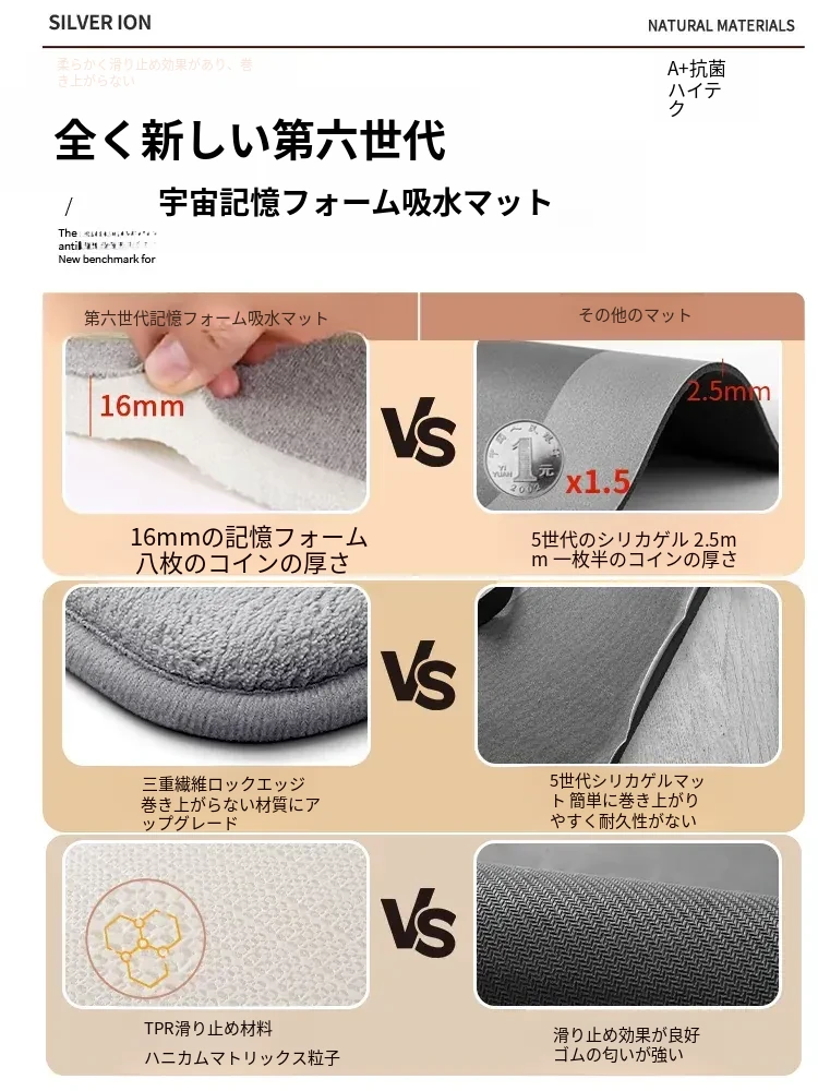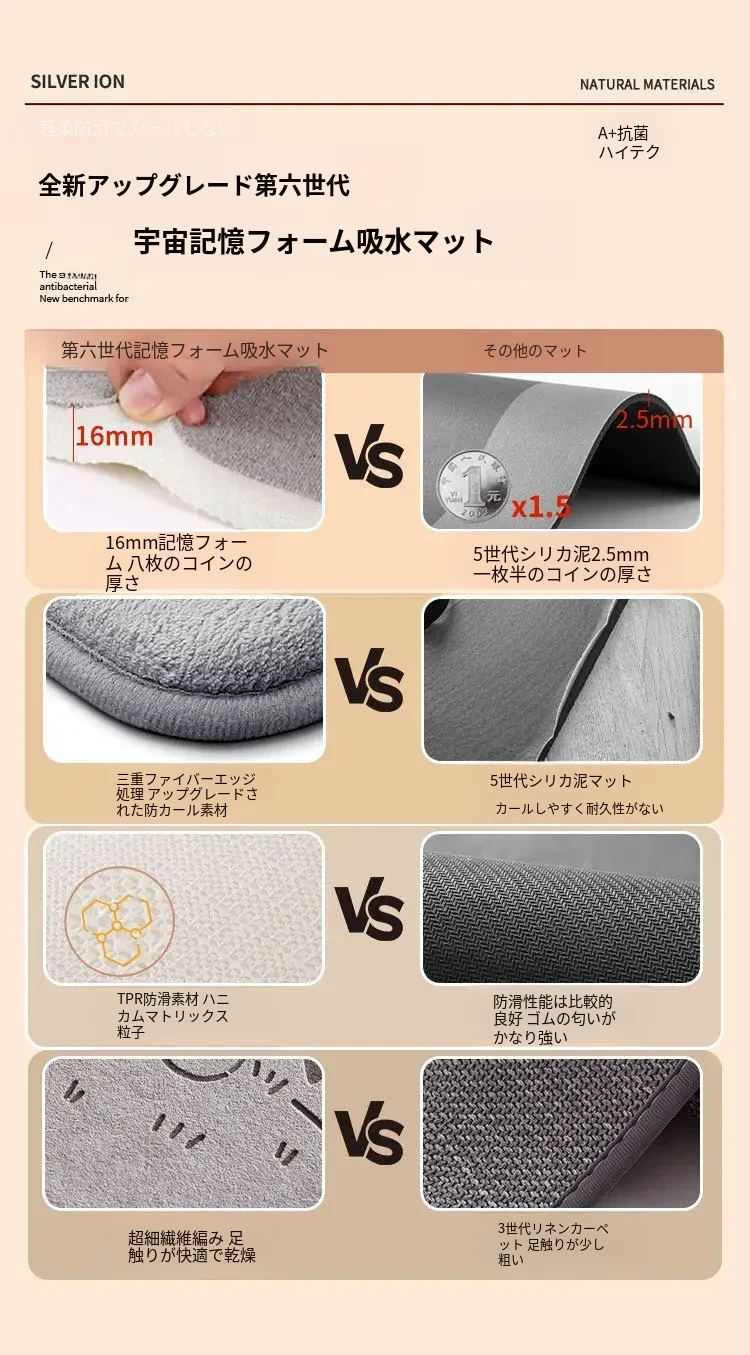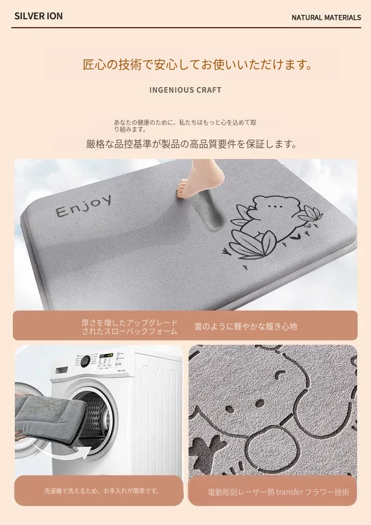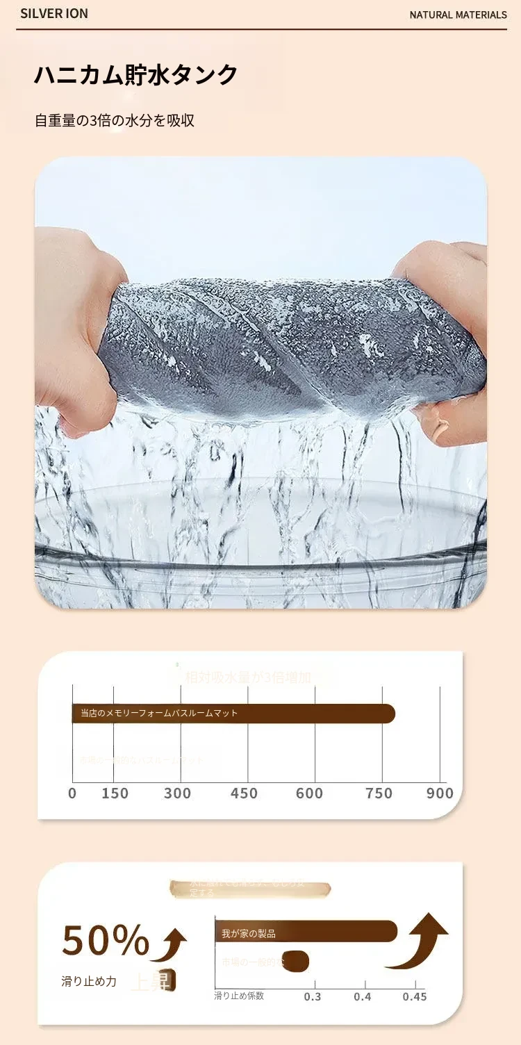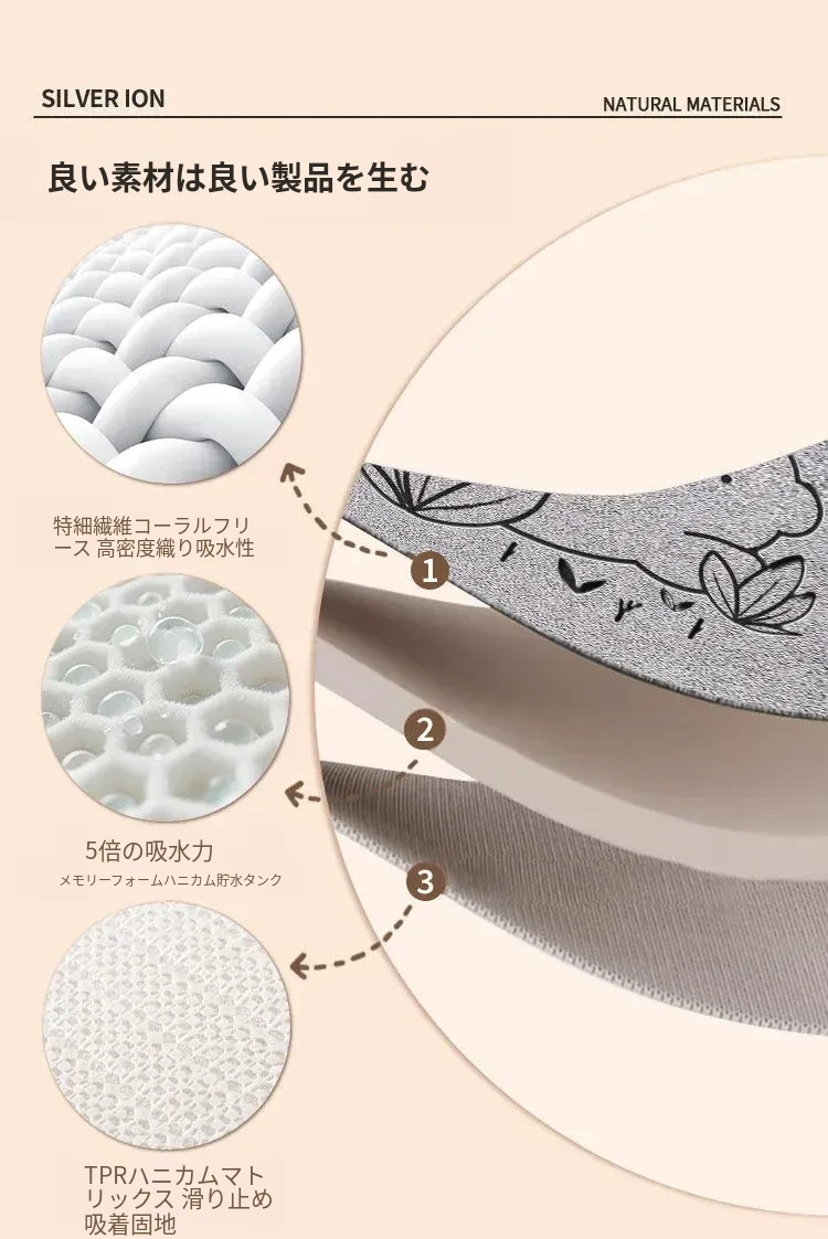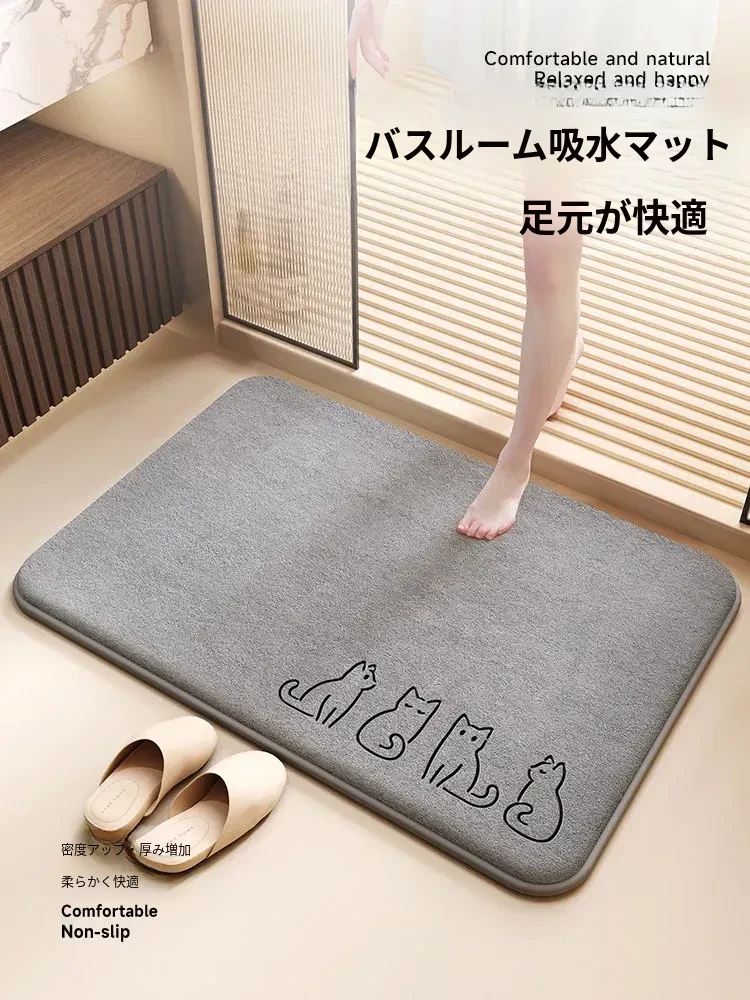 バスルーム用吸水マット|厚手で滑り止め効果抜群!トイレや洗面所に最適なデザイン|快適な入浴体験をサポートするドアマット