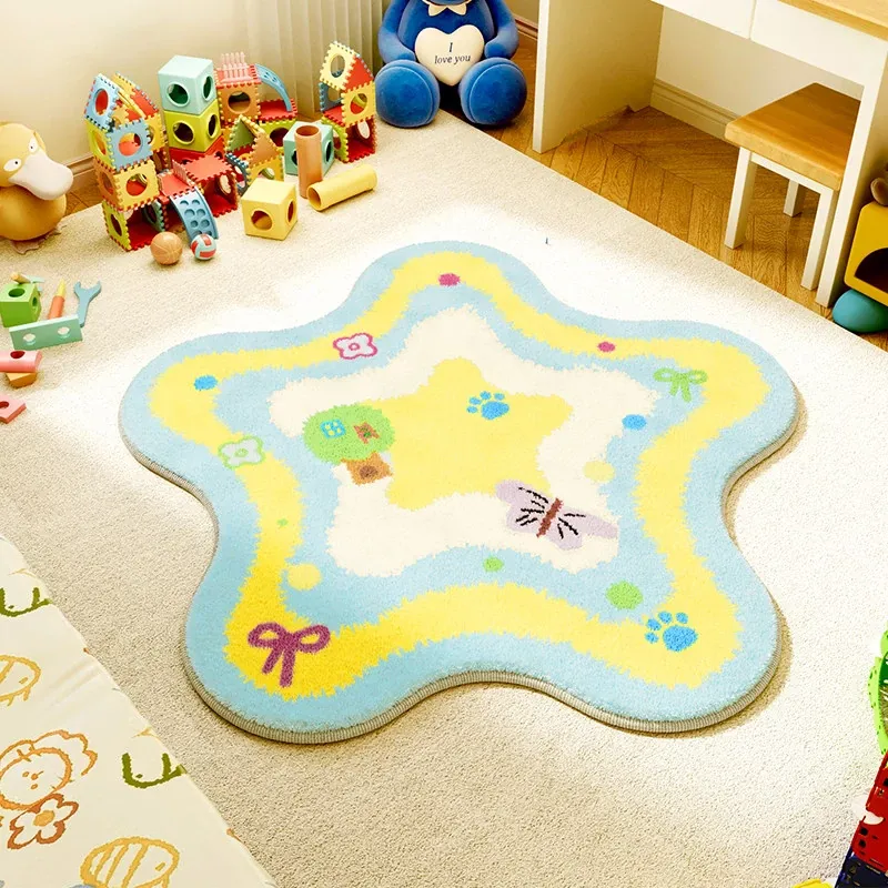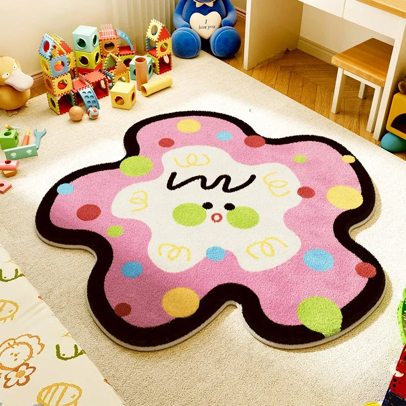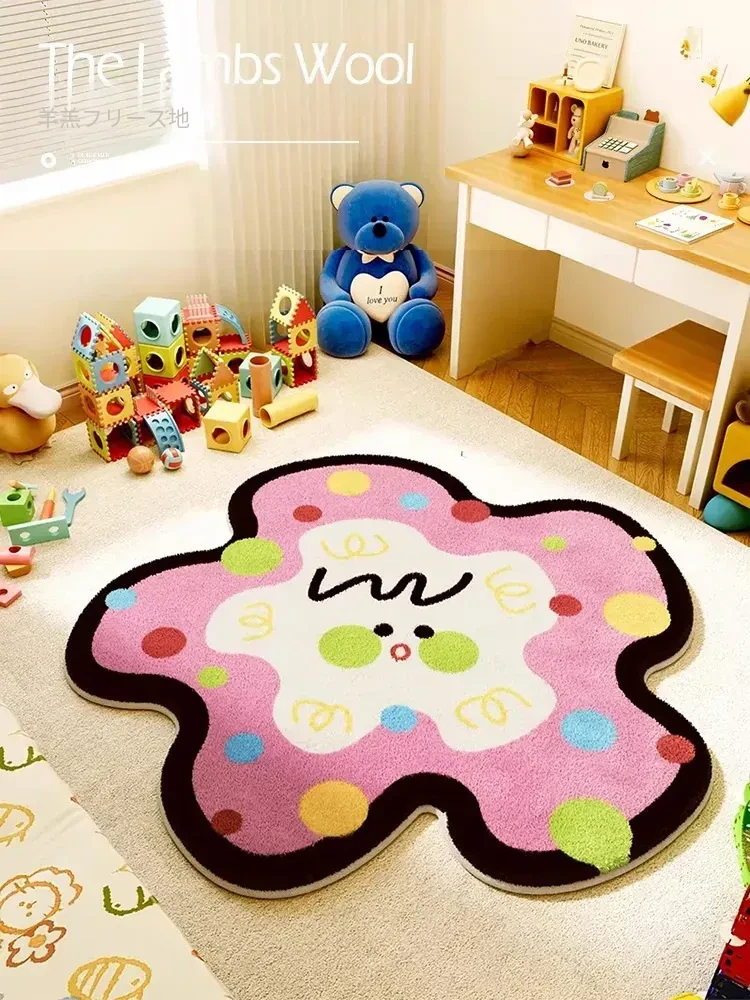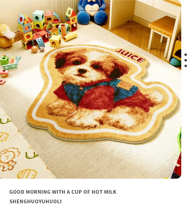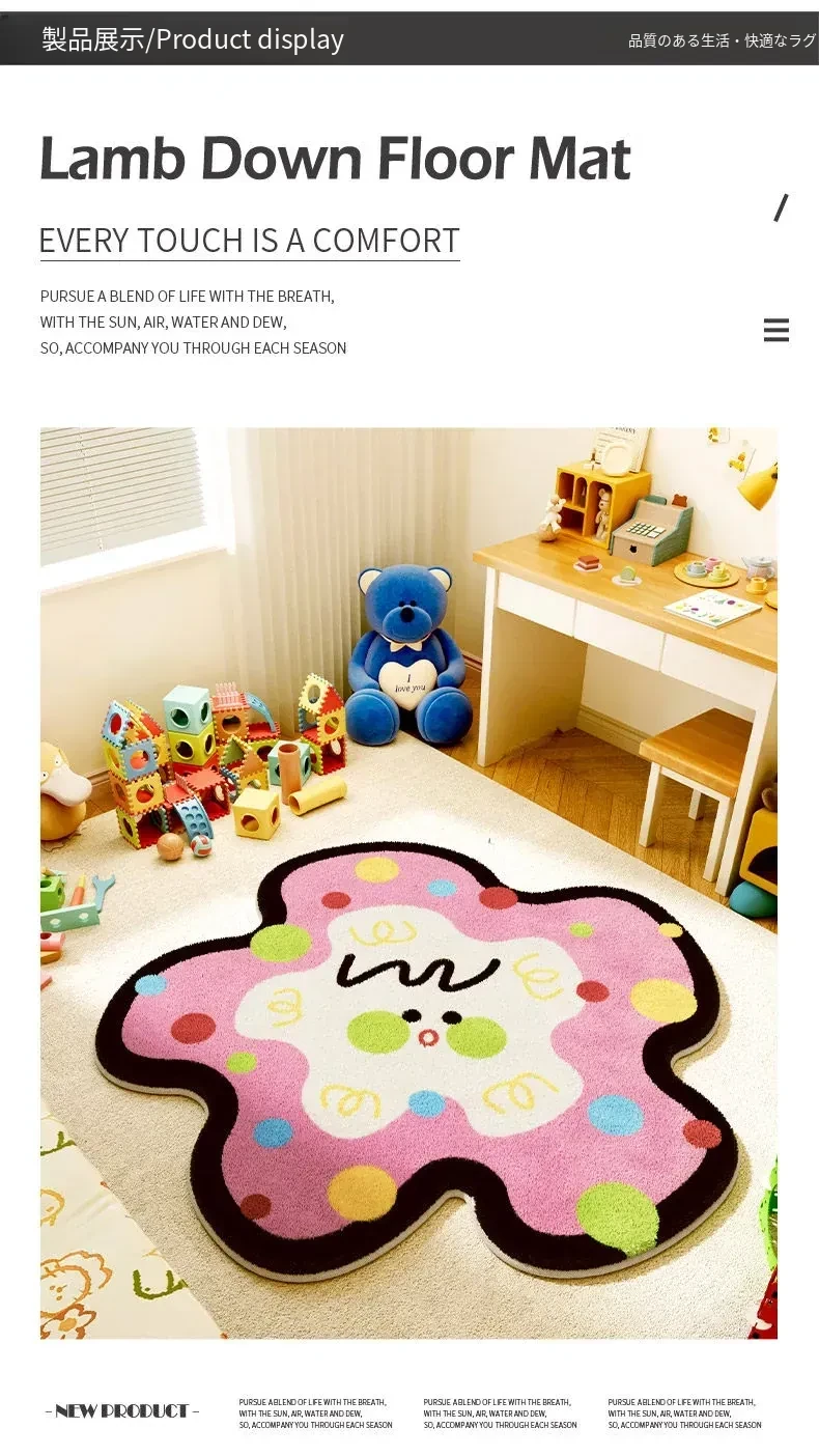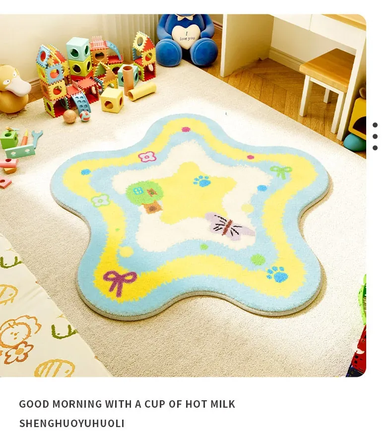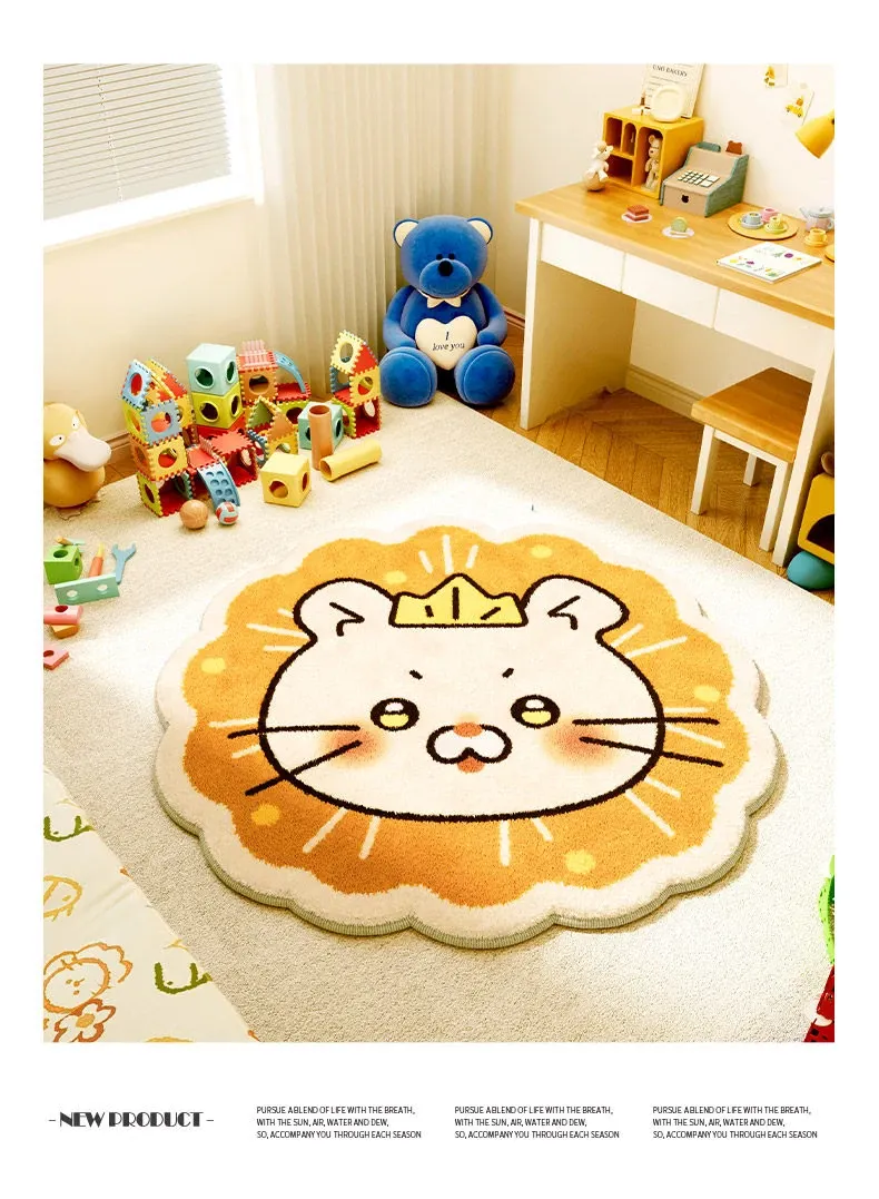 ユニークな子供部屋用ラグマット - ふわふわのベッドサイドマット、温かみのあるお部屋作りにぴったり!読書コーナーやカートゥーンデザインで、楽しい空間を演出します。