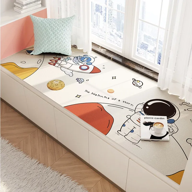 レザー製の窓台マット - 四季を通じて使える汎用デザイン!お手入れ簡単、カット可能で、寝室にぴったりの防水・滑り止め付きのカーペット。快適な座り心地を提供します!